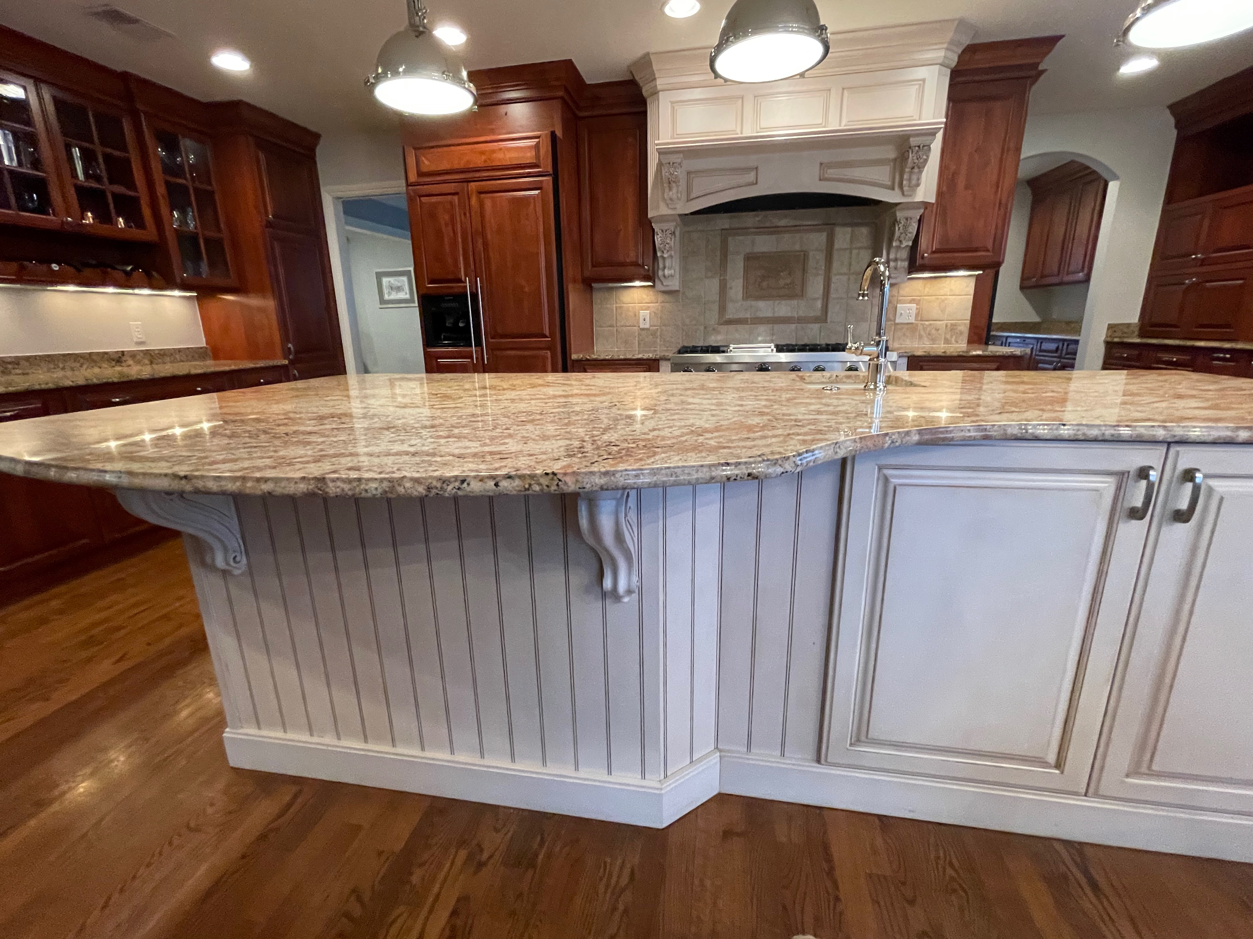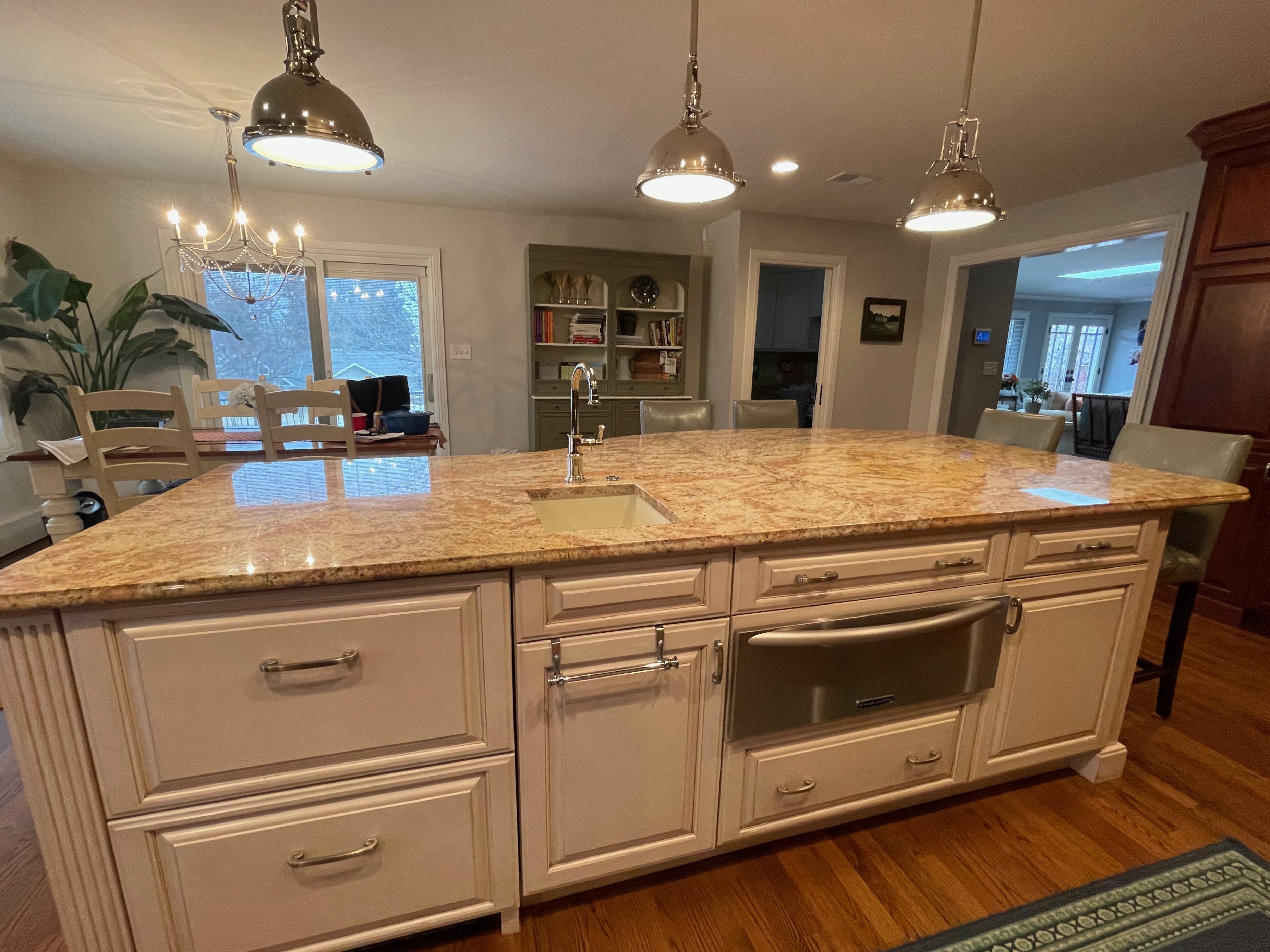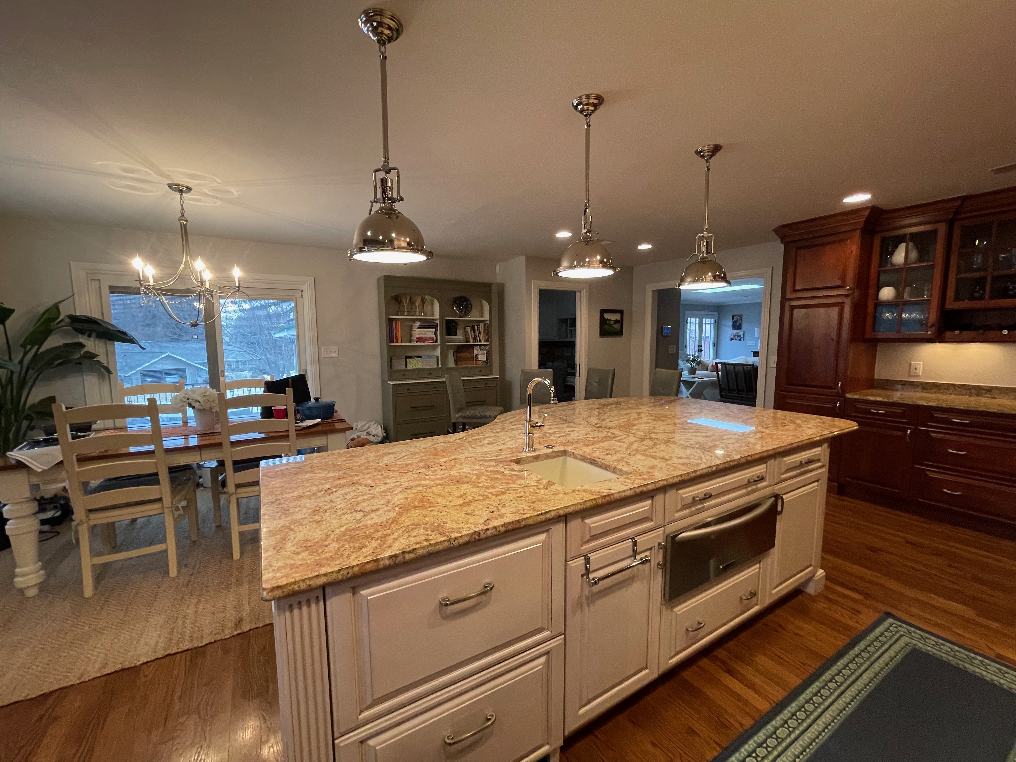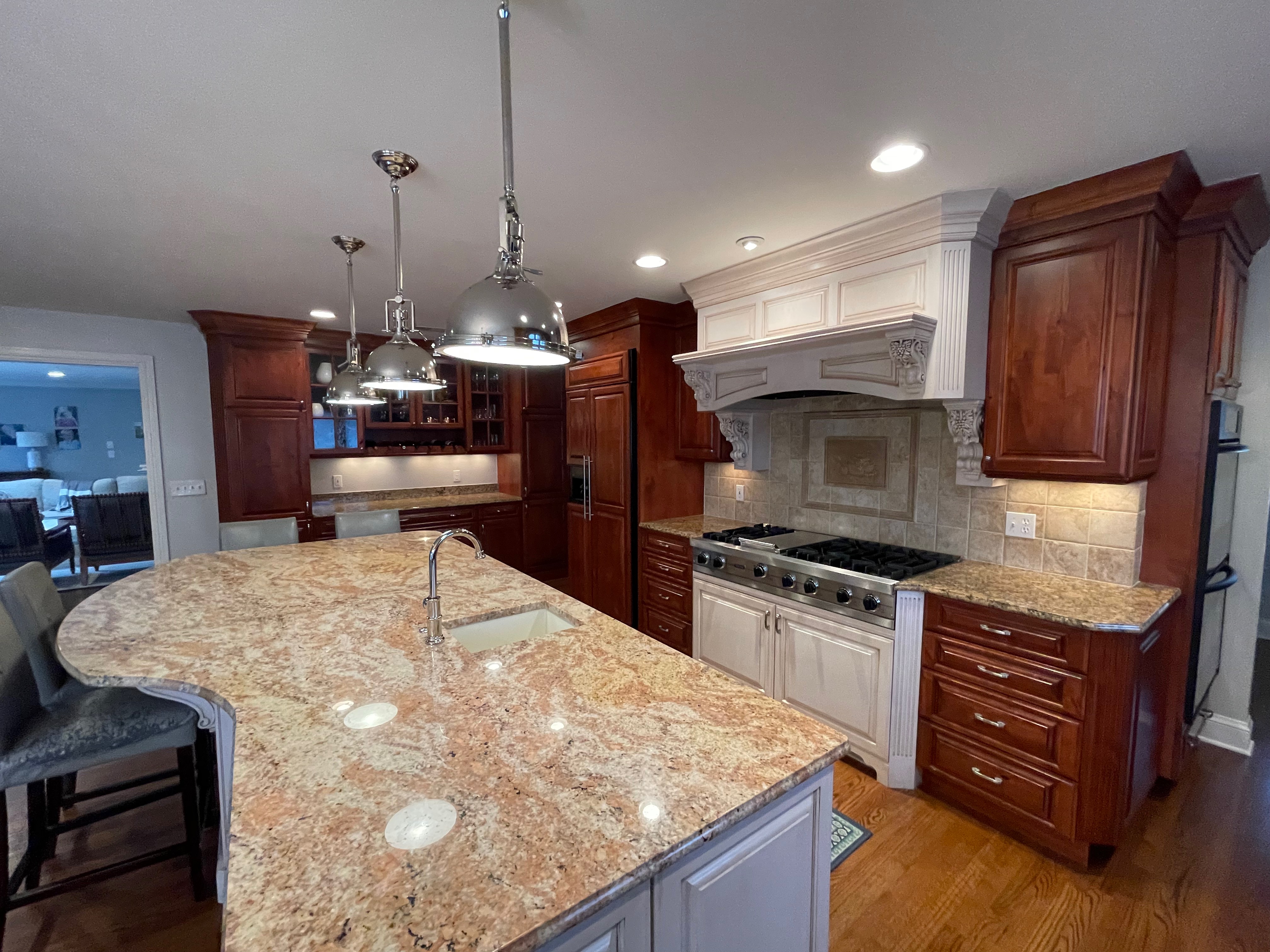 Nice “Crystal Cabinet Works” kitchen cabinets in a knotty cherry wood with contrasting cream island and wall cabinetry. The cabinets have dovetail joinery and the soft close feature. All of the appliances are included with a nice stainless steel Viking range top! To complete the package are slab granite counter tops, sinks, faucet sets and a disposal. The kitchen will fit in a kitchen with 8’ceilings. The set will be available to be removed by a qualified buyer early April or sub-contractors can be hired for the removal. Price for the package below.