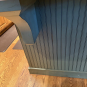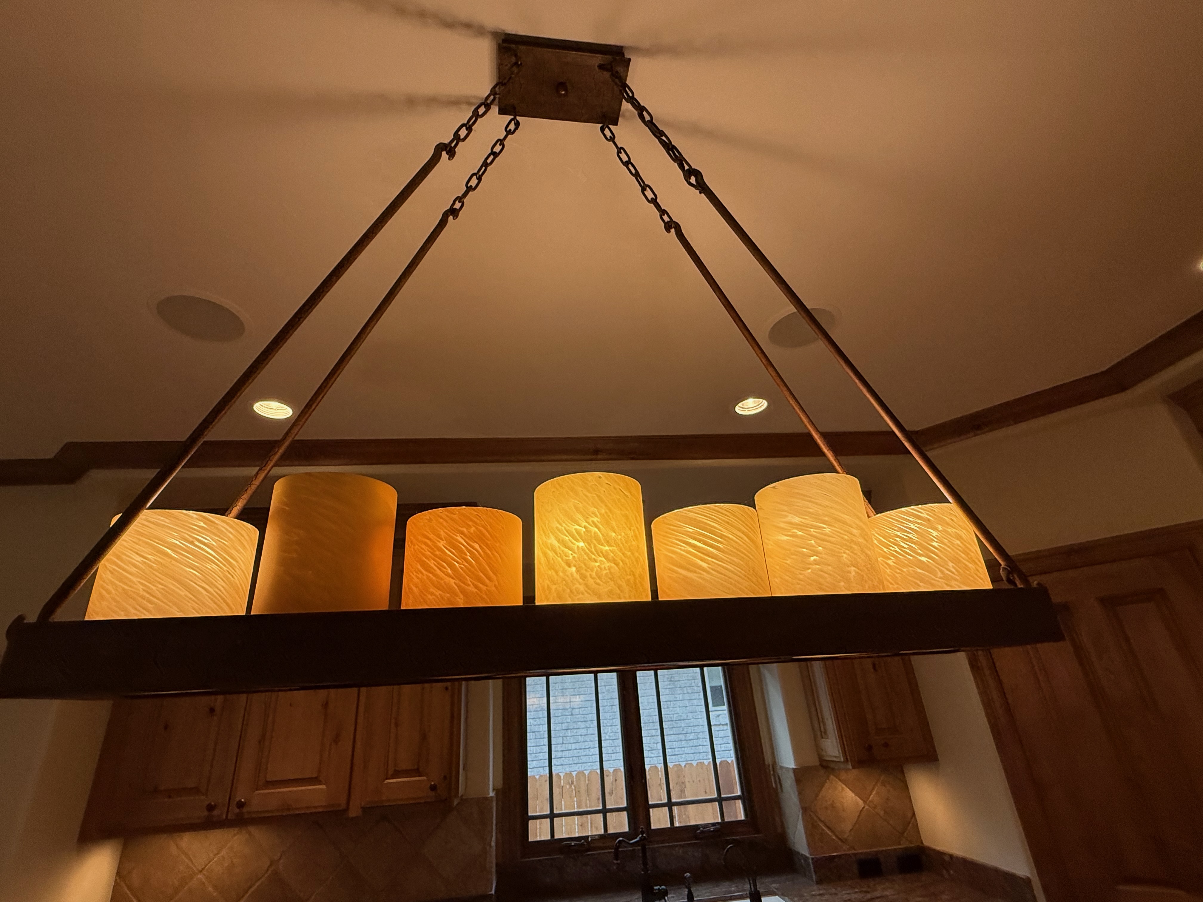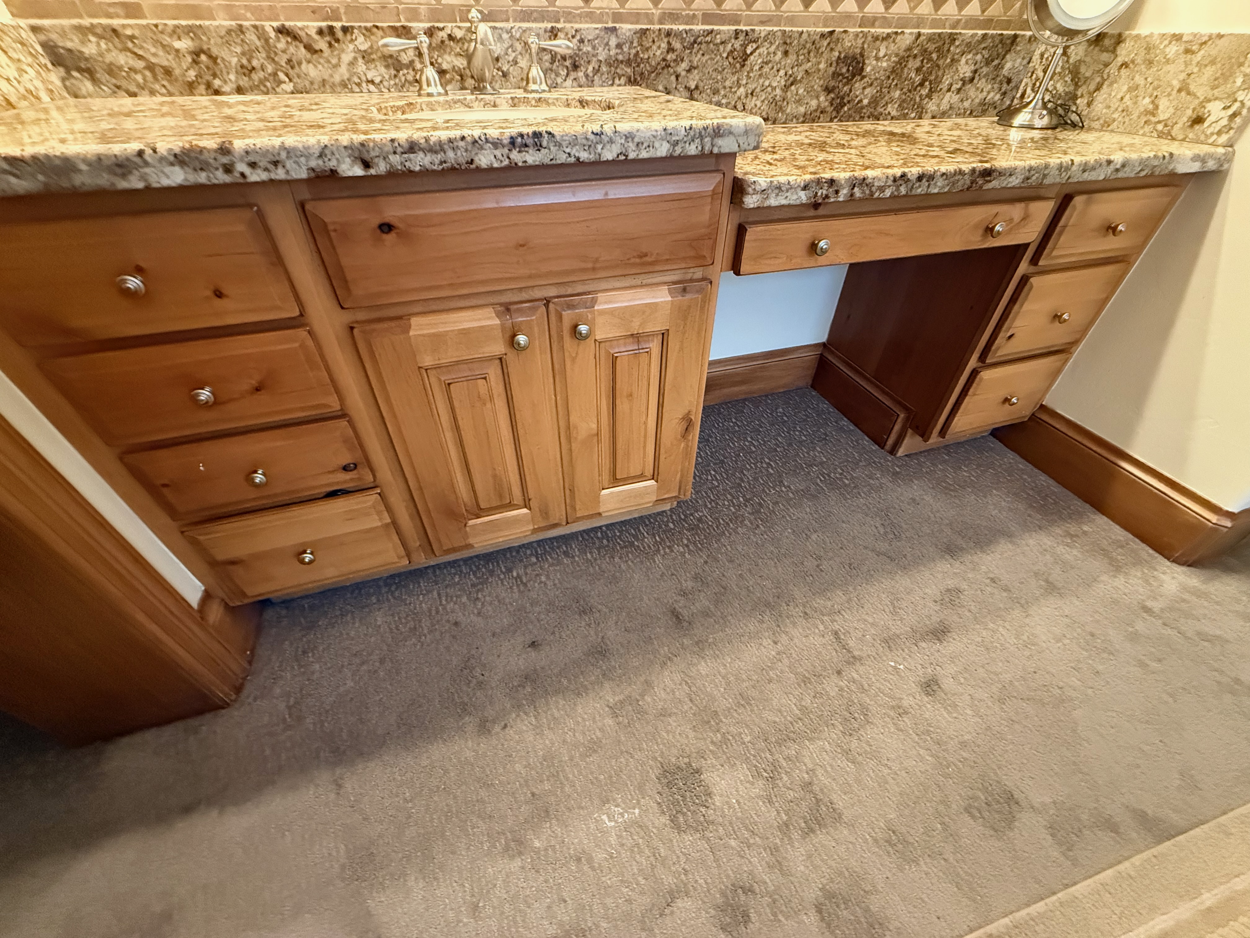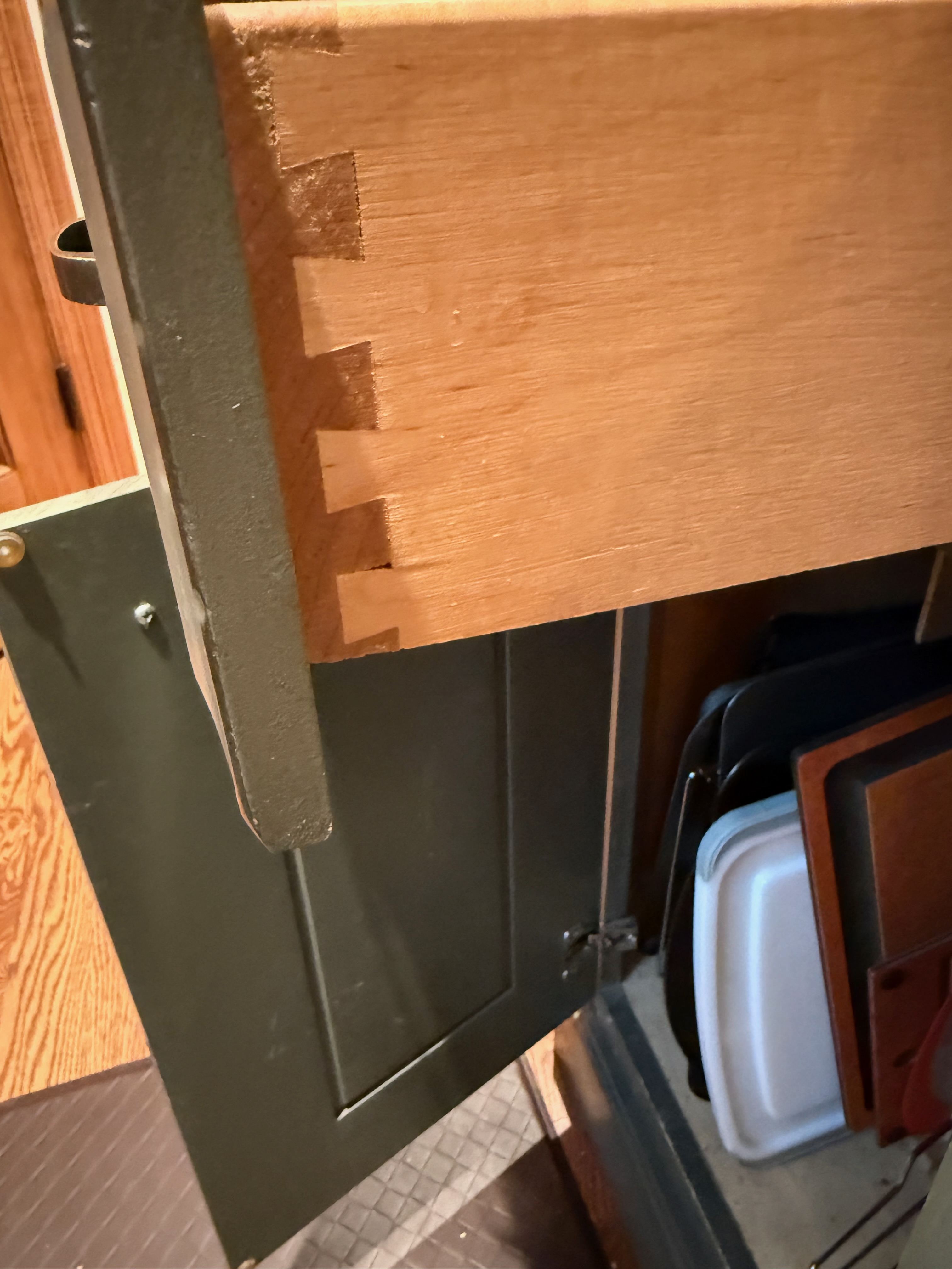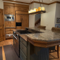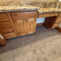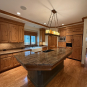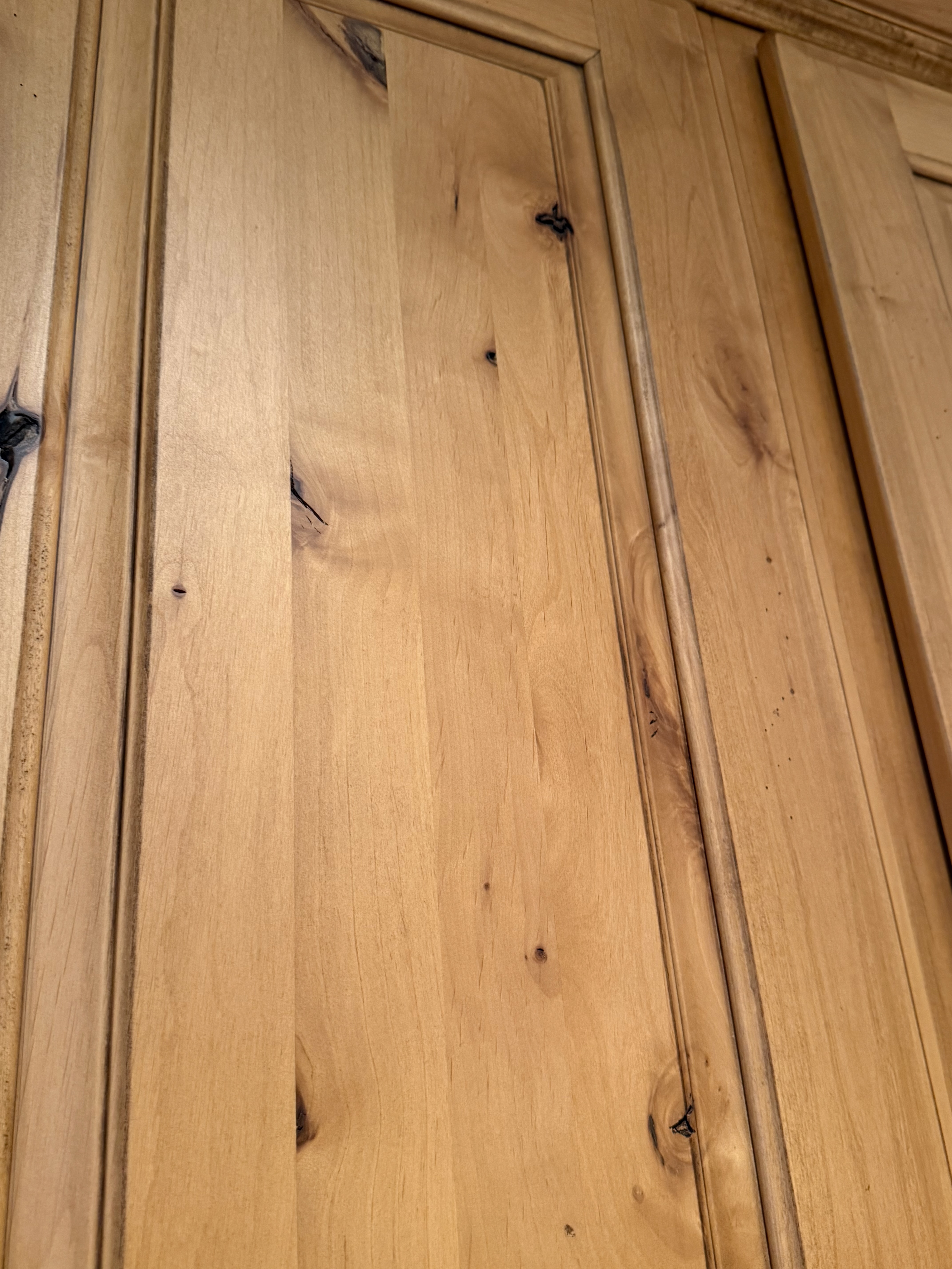 Natural Knotty Alder wood Craftsman style Kitchen cabinets made by Custom Cupboards makers of fine custom cabinetry. In excellent shape with dovetail joinery drawers. KitchenAid stainless steel appliance package with granite countertops. The island is in a contrasting earth-tone sage green finish with a beautiful wood rope molding detail and bead board surround on the back. The is a matching bathroom vanity cabinet in the natural Alder wood. The Kitchen package is available to be removed, tbd January 2026, by a licensed contractor or we have licensed contractors available to hire to remove the kitchen and move it to your home. Pricing below.