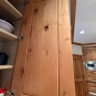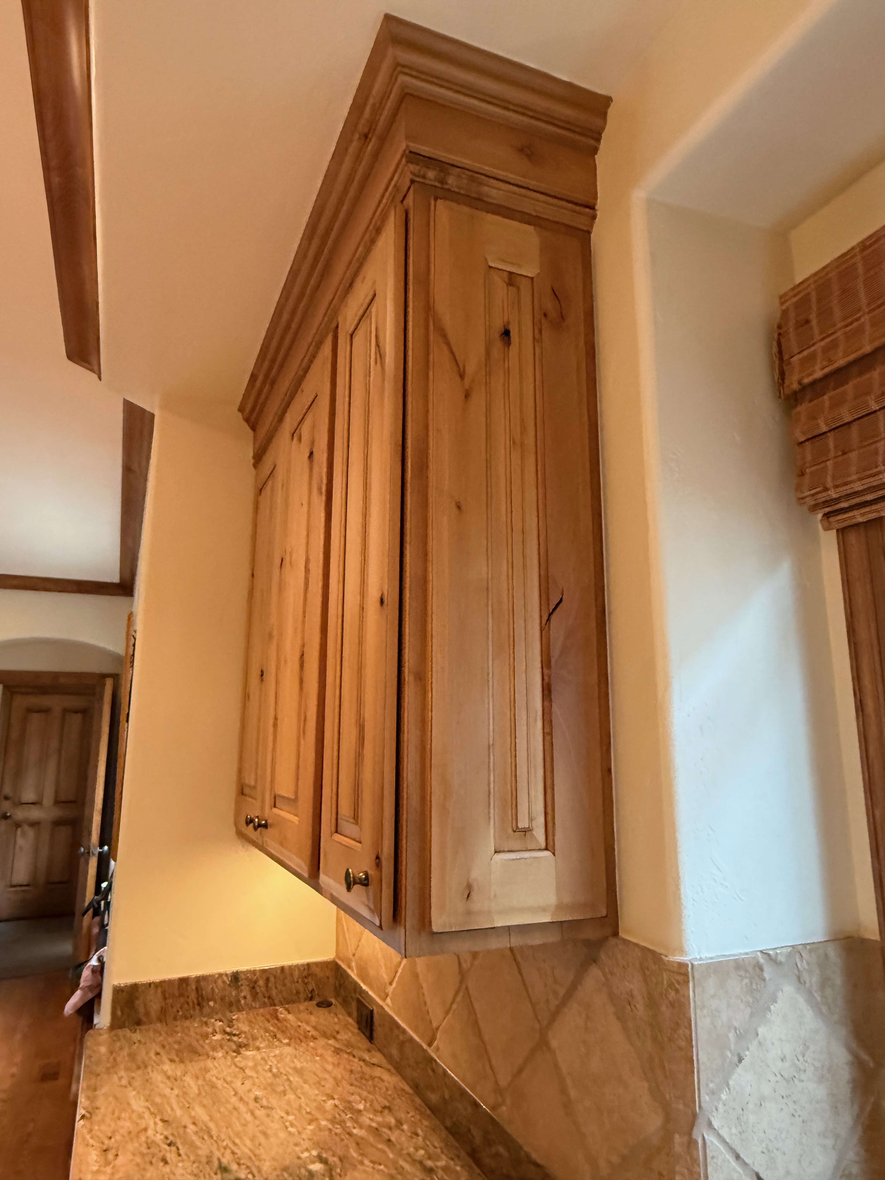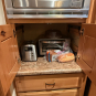 1-Two door counter wall cabinet w/ two door appliance garage below Dim.: 29 ½” w x 60”h cabinet only/ mid crown 64 ¾”h/67”h with crown x 21”d