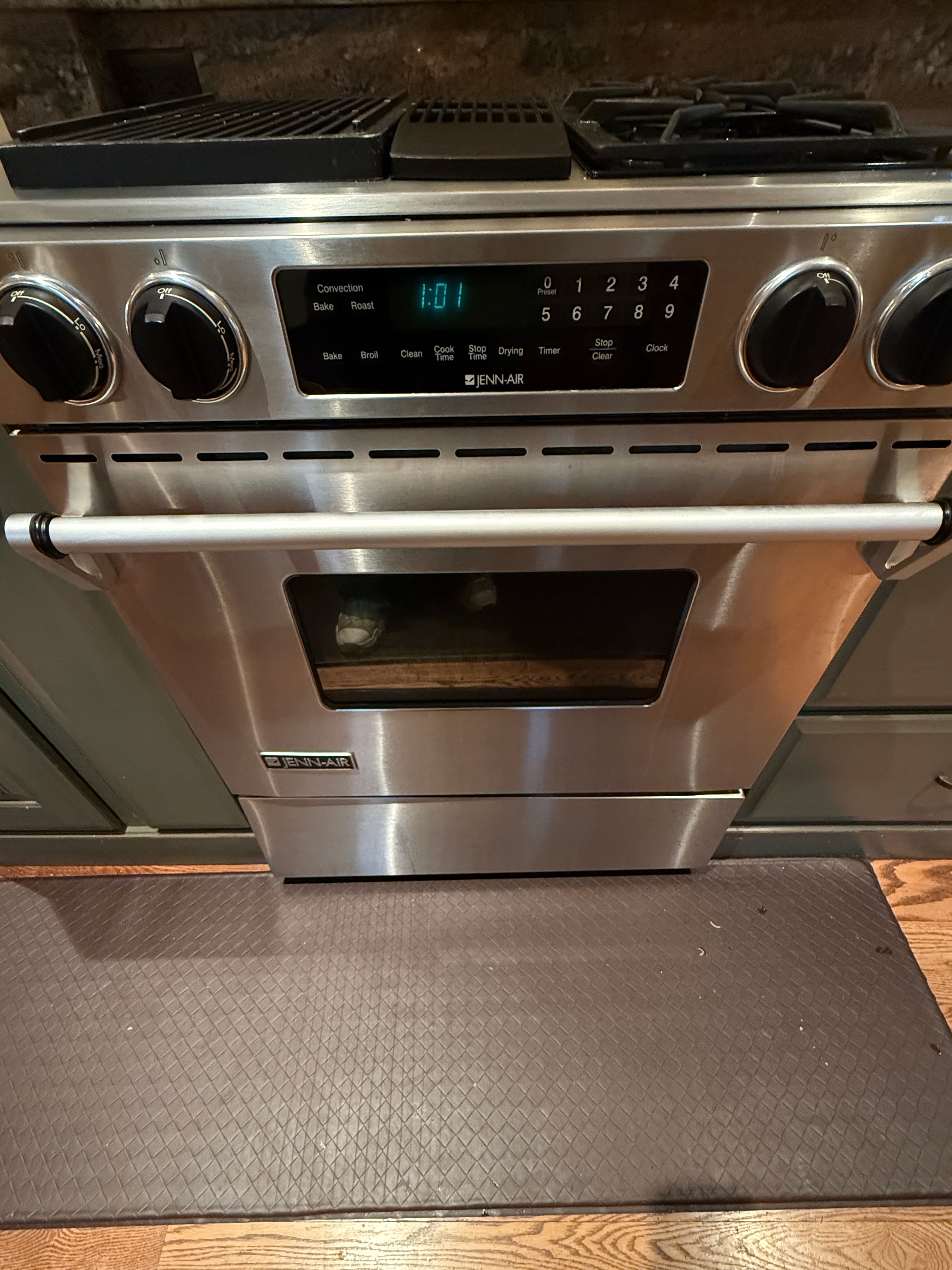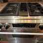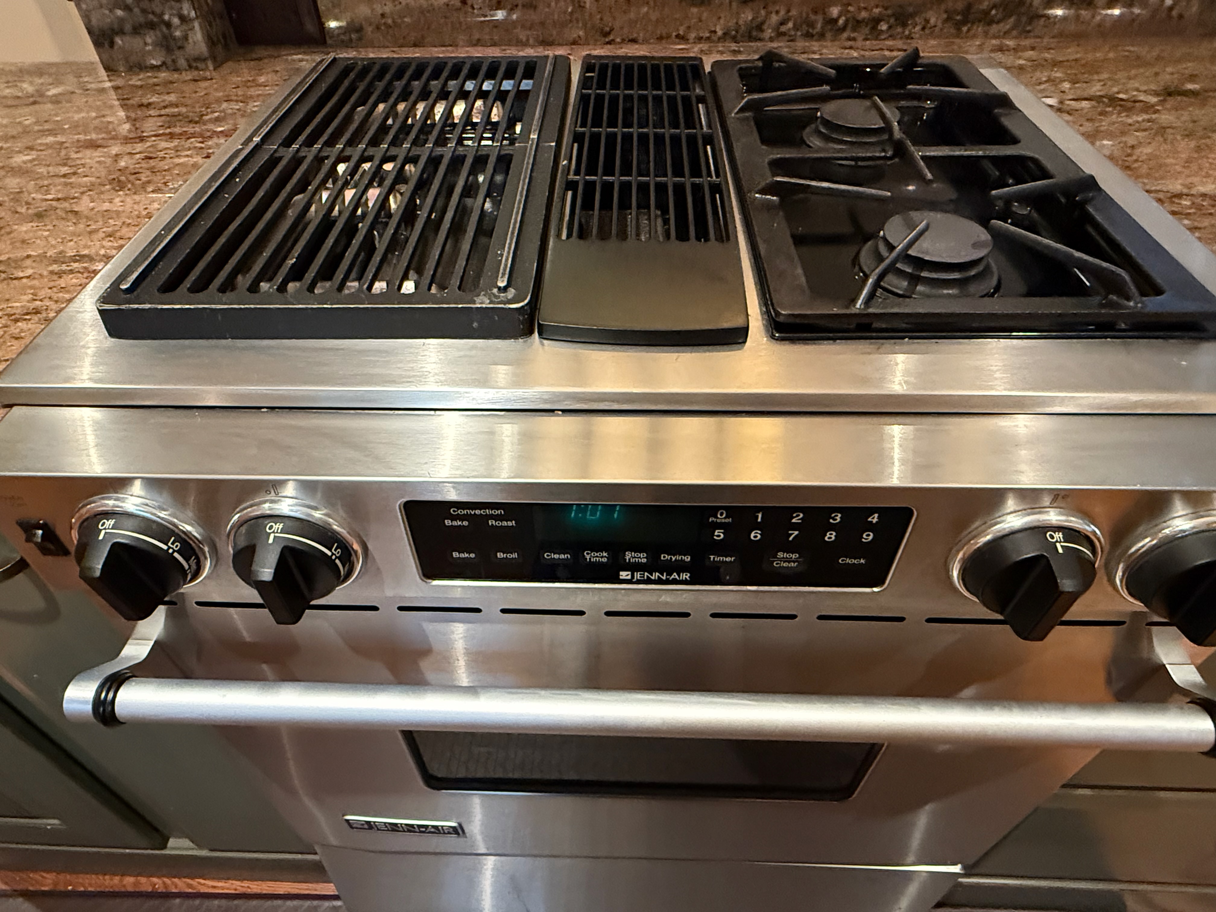 30”Jenn-Air stainless steel two gas Range with griddle and vent in the center