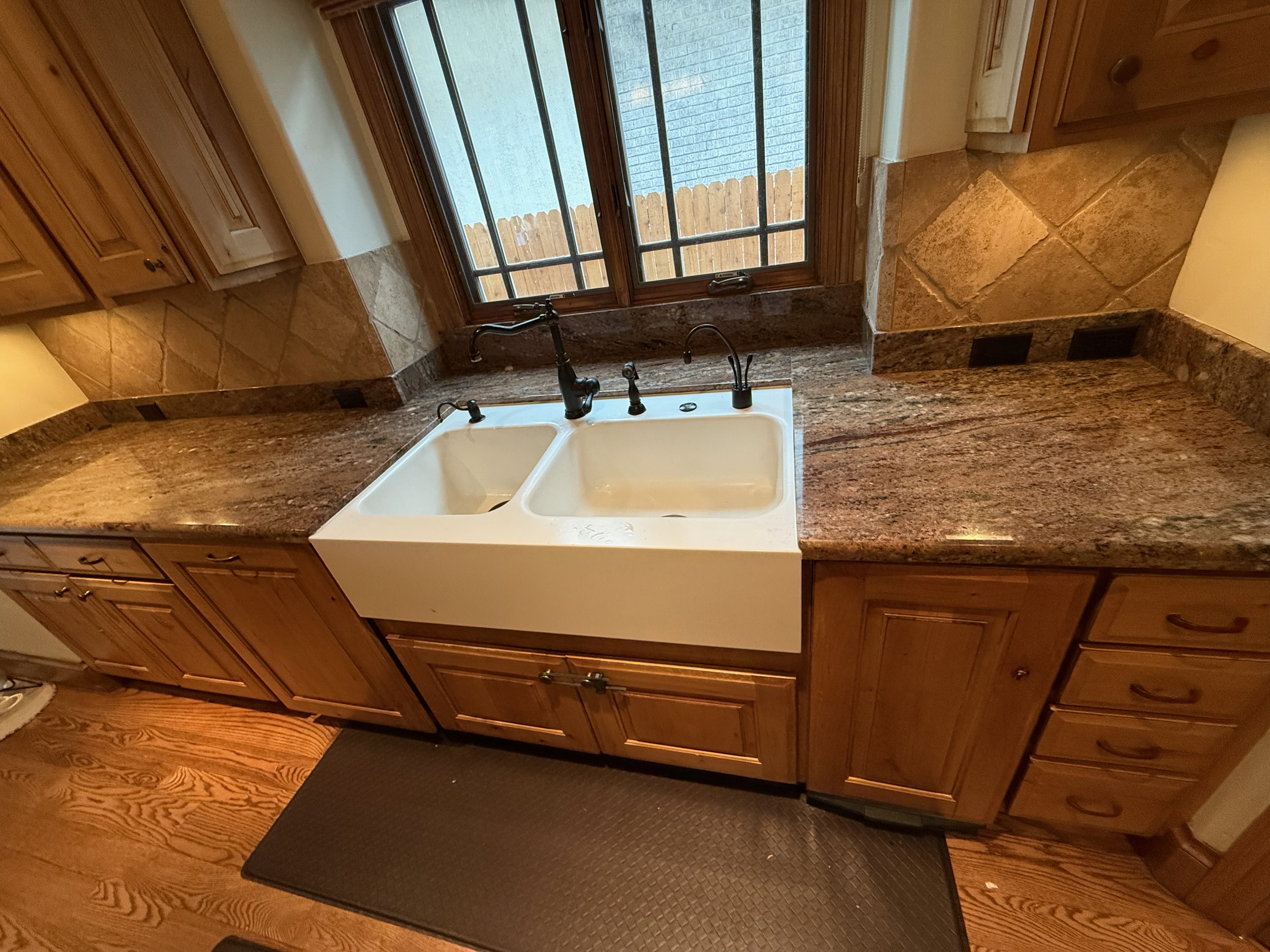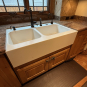 1-Two door sink base cabinet with an apron sink base Dim.: 40”w x 36”h x 24”d, sink 40” w x 25”d x 10”h