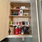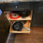 1-One drawer, One door base cabinet, with two trash cans Dim.: 18”w x 36”h x 24”d