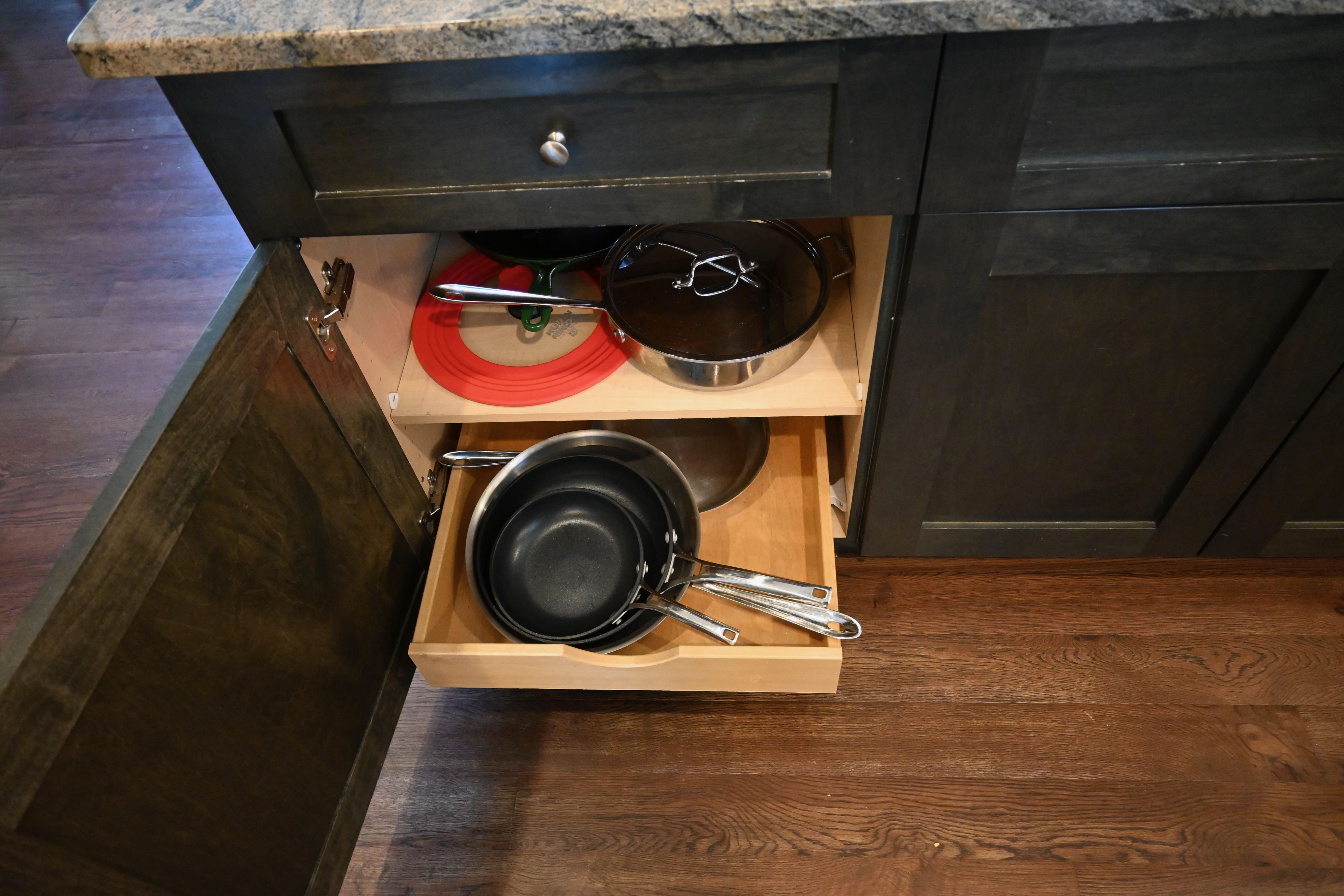 2-One drawer, One door base cabinet, pull-out drawer insert Dim.: 24”w x 36”h x 24”d