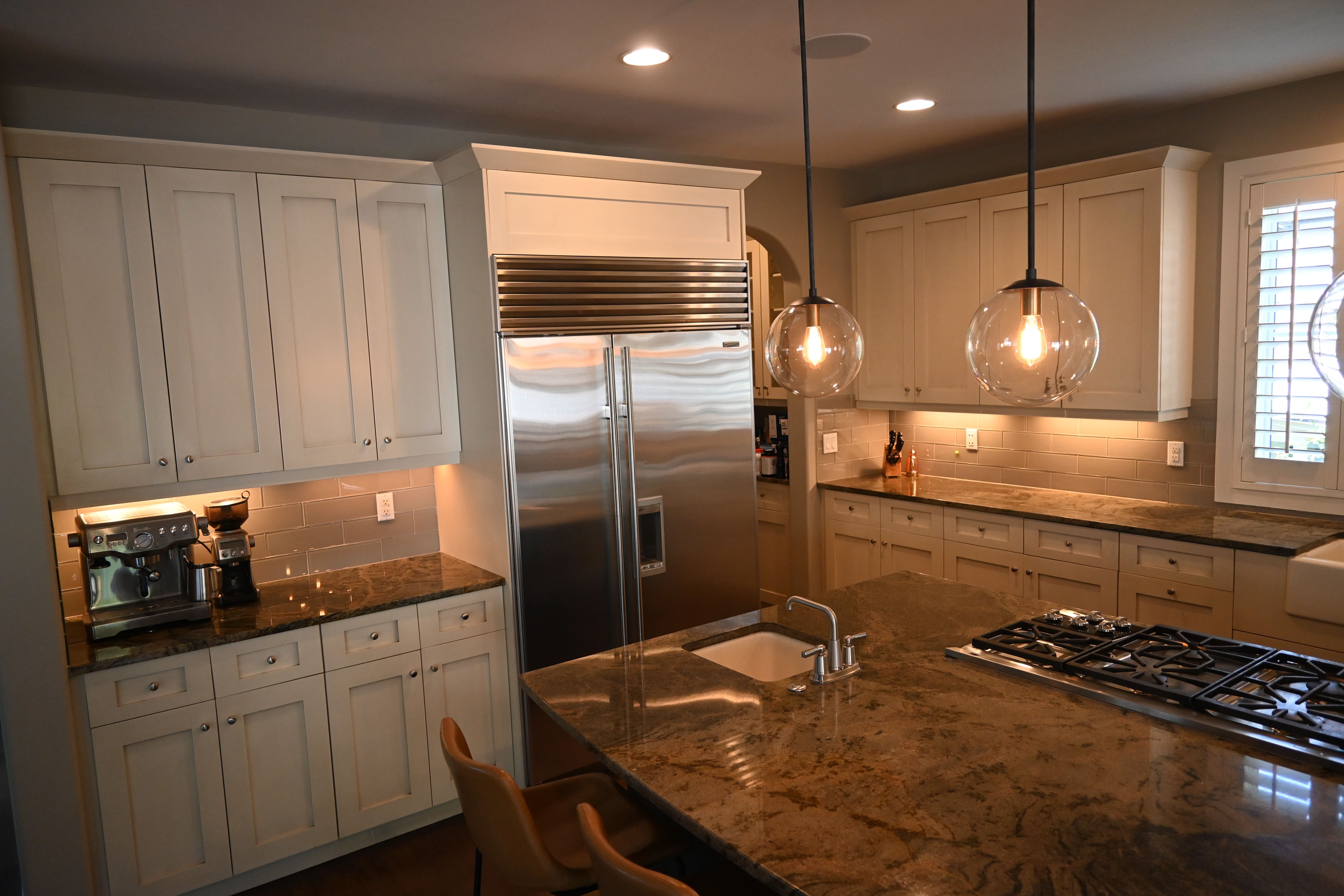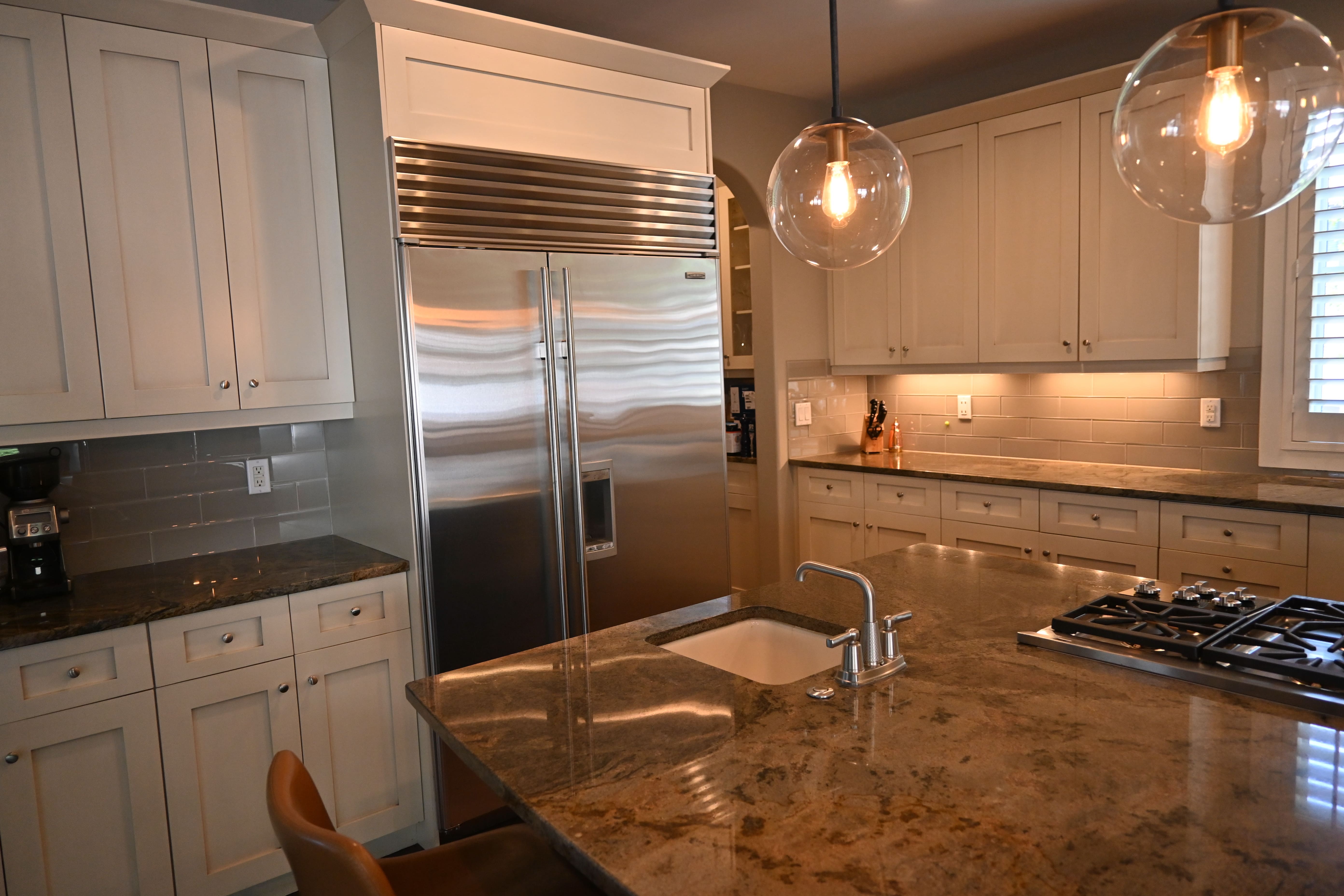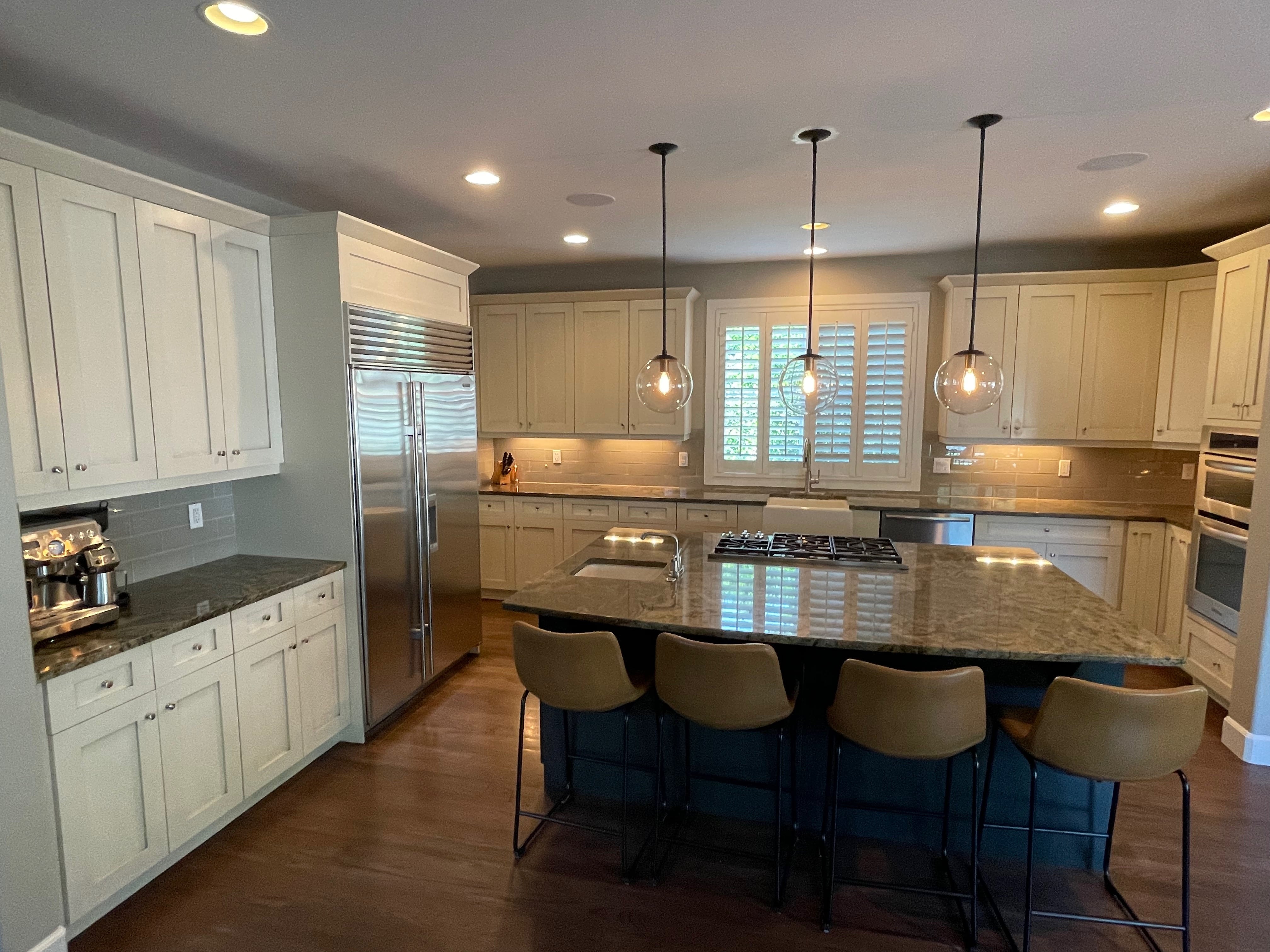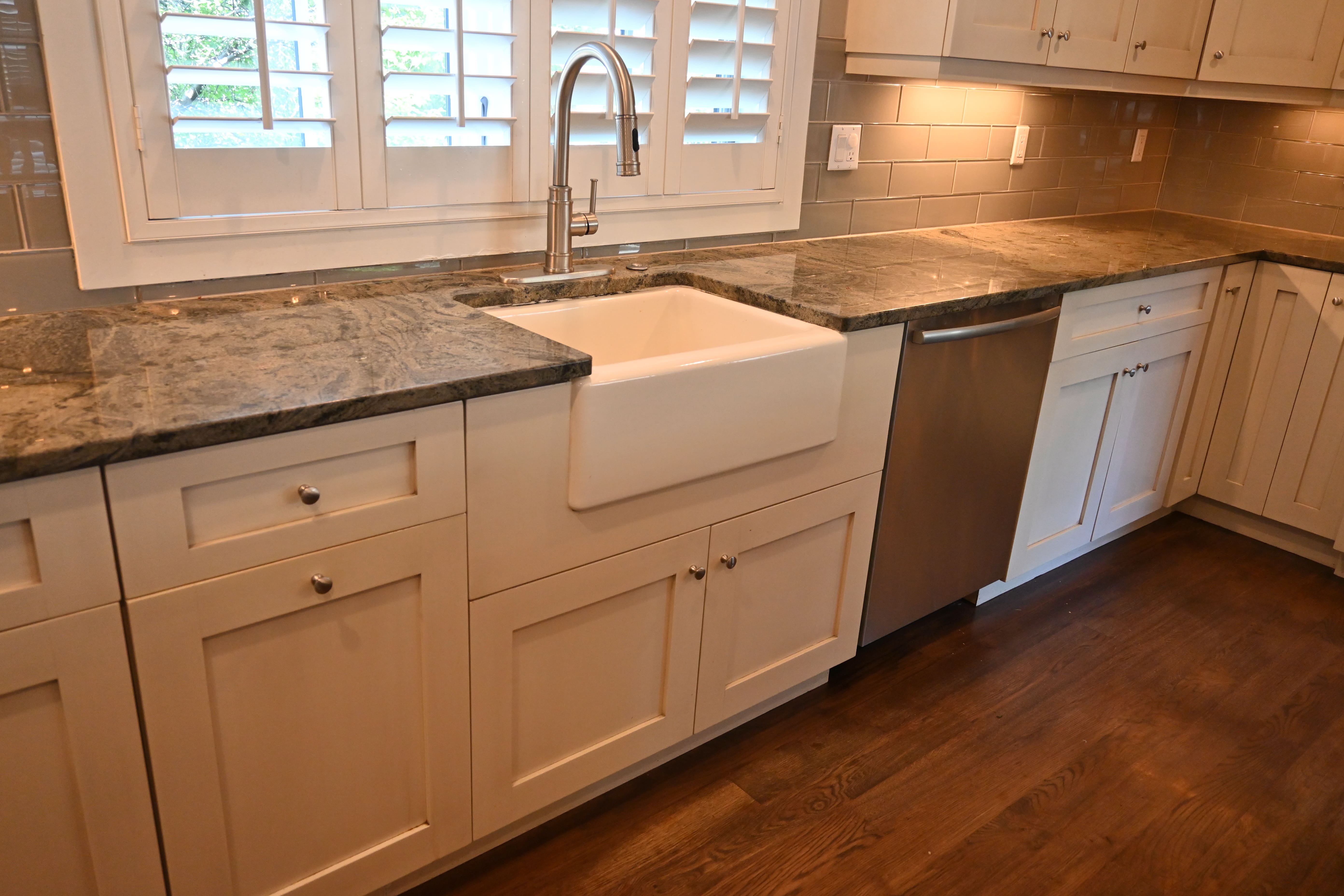 Beautiful kitchen cabinets in an off-white with a contrasting green island. This timeless Shaker kitchen package includes a very nice stainless steel Sub-Zero refrigerator, Wolf cooktop and other appliances. Included are nice complementary slab granite counter tops along with a Farmhouse apron sink. There is matching cabinetry included with the kitchen. The kitchen has been carefully removed by licensed contractors. The kitchen is available to be picked up anytime. Price for the package below.