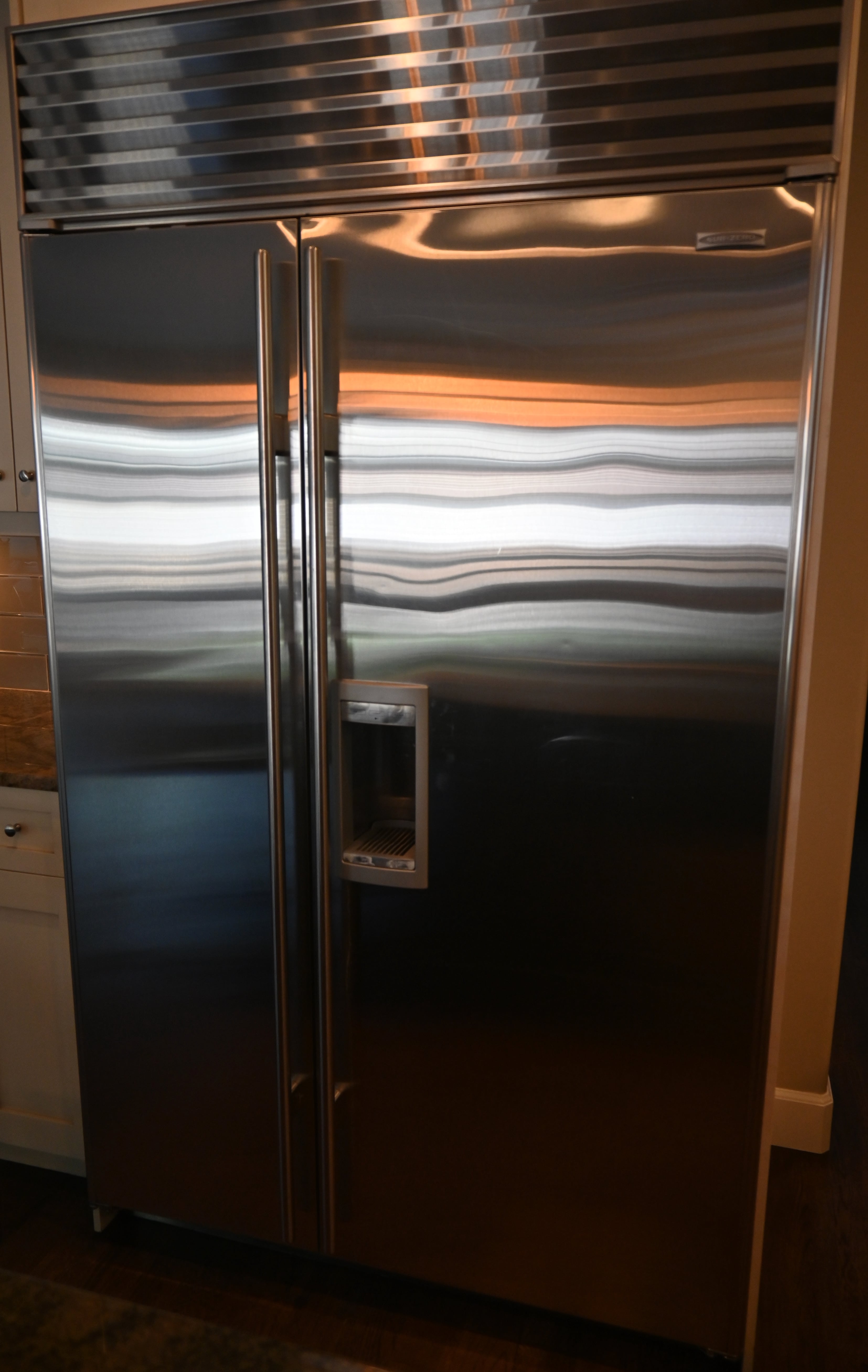 48” Sub-Zero stainless steel side x side Refrigerator w/ ice and water on the door. Model# 695/S 3 Serial# P2754535 09/07, Listing Price $11,300