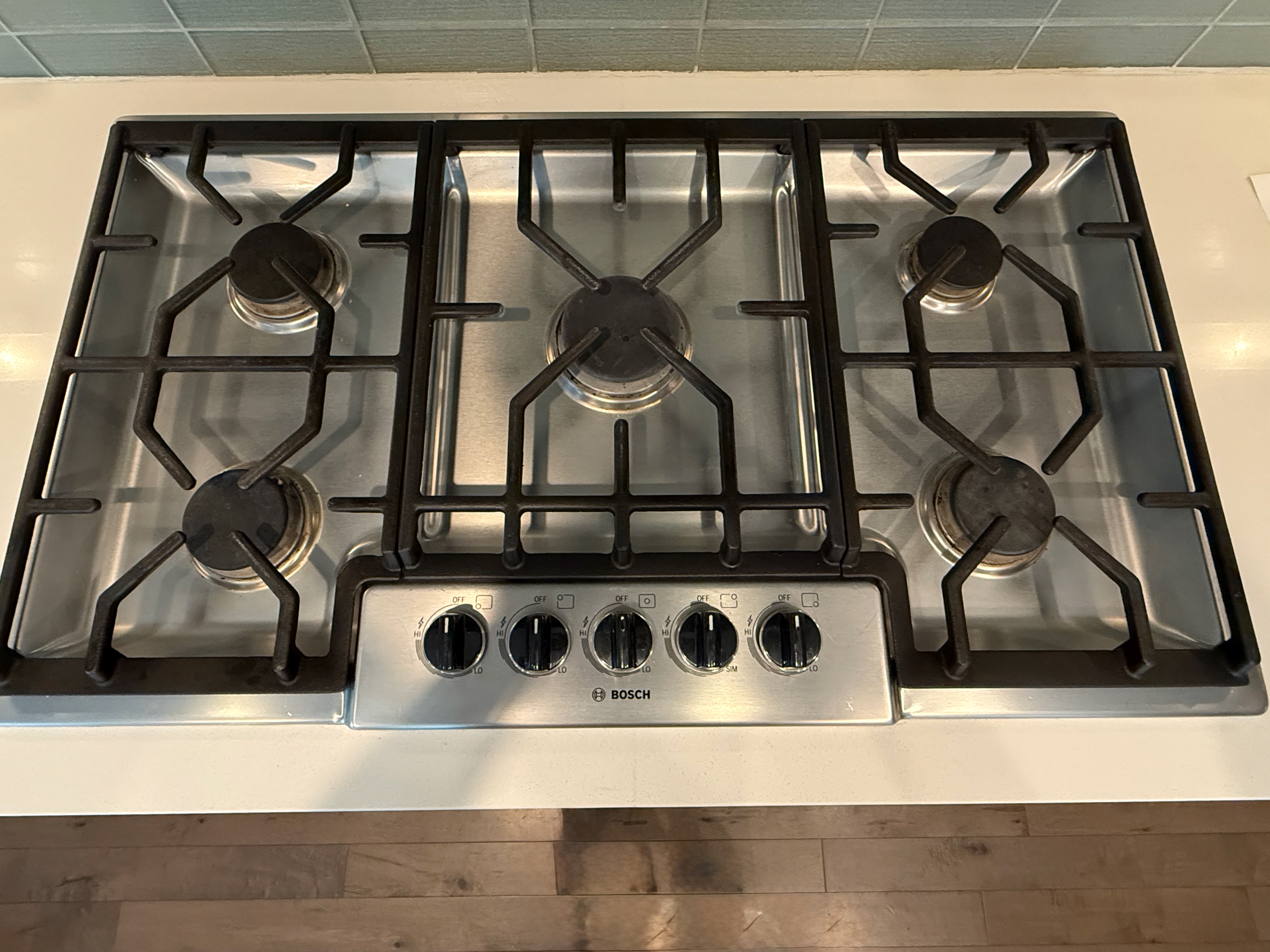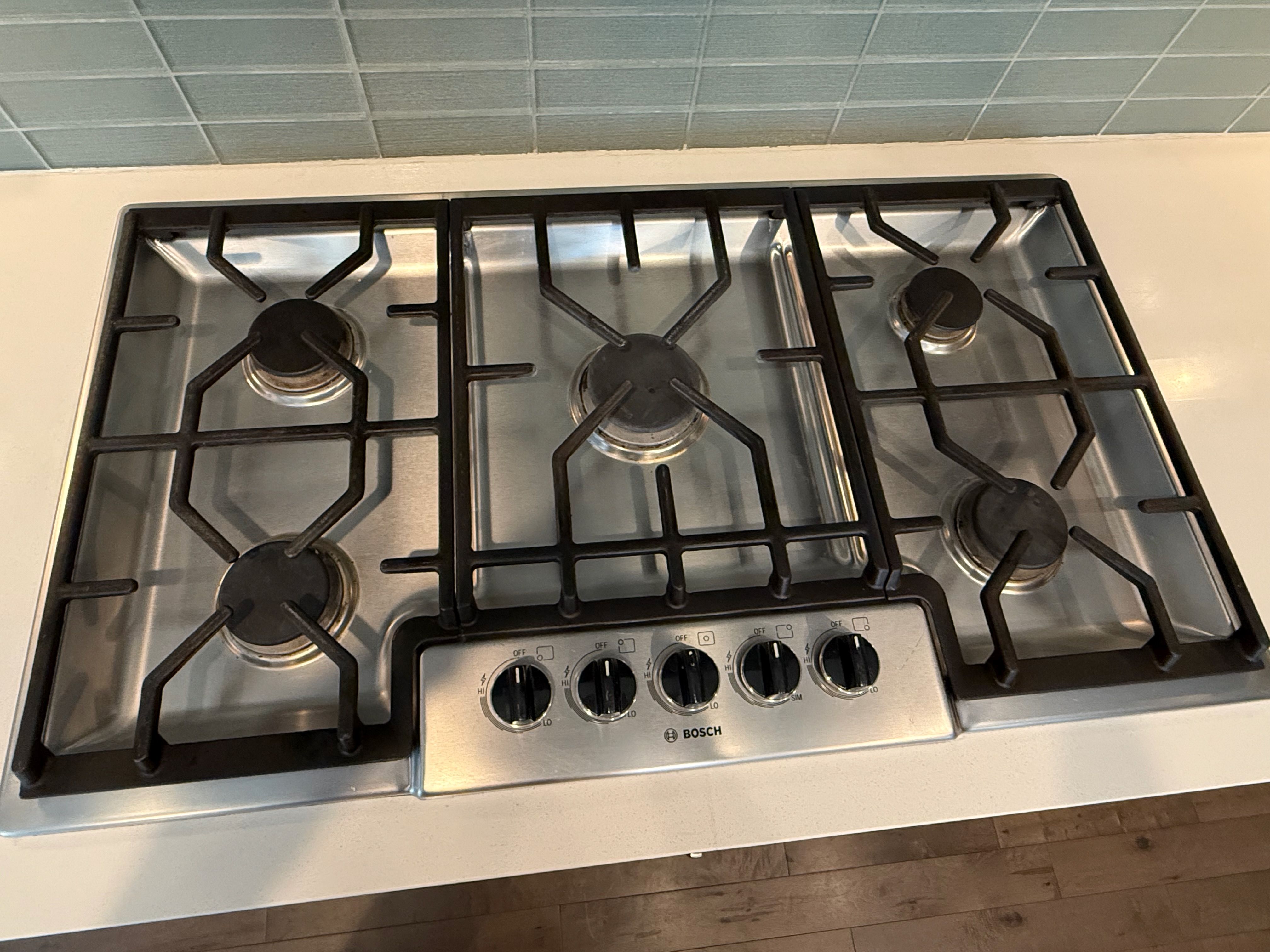 36” Bosch Stainless Steel 5 burner gas cooktop Dim.: 36” w x 21”d