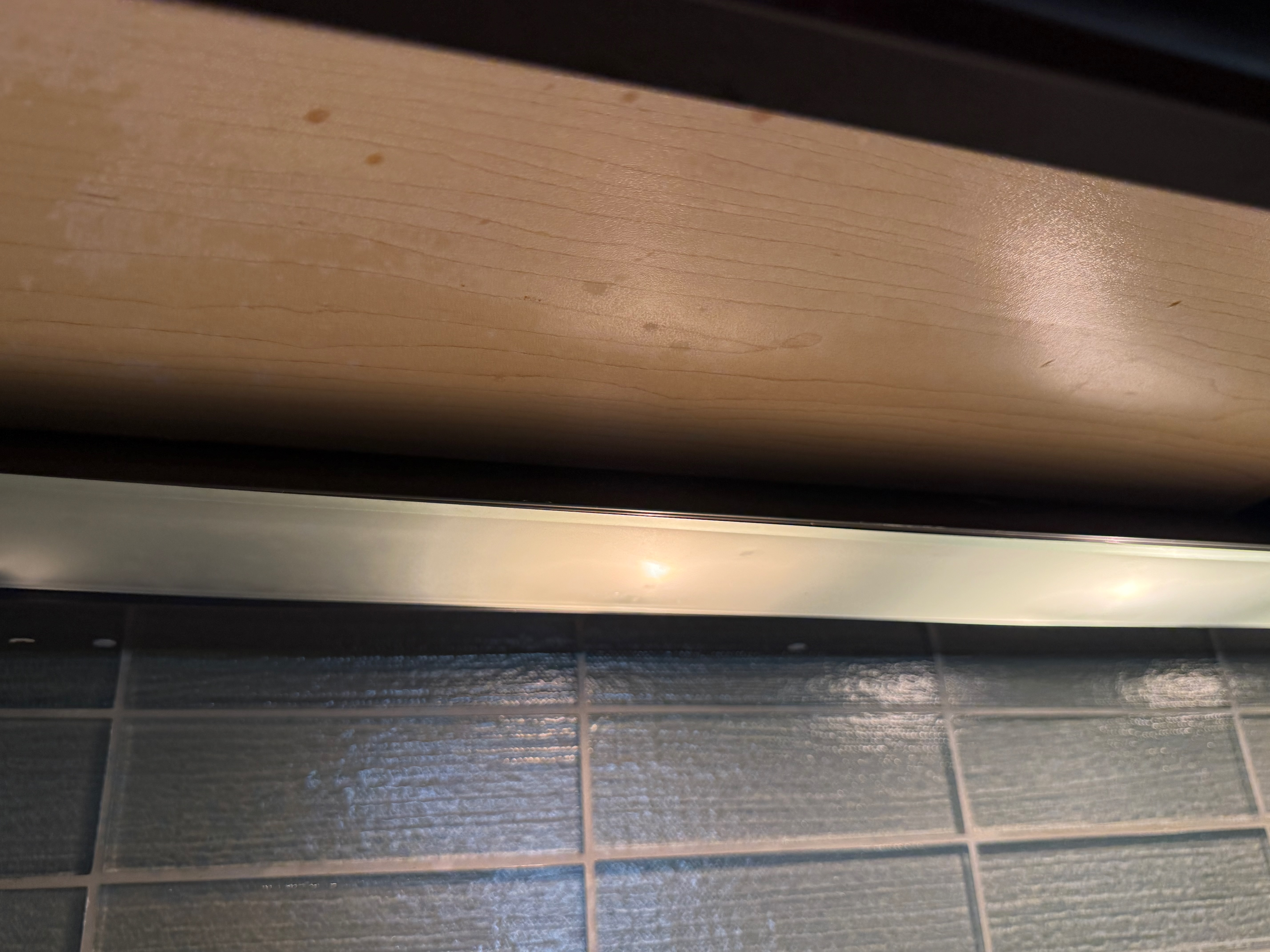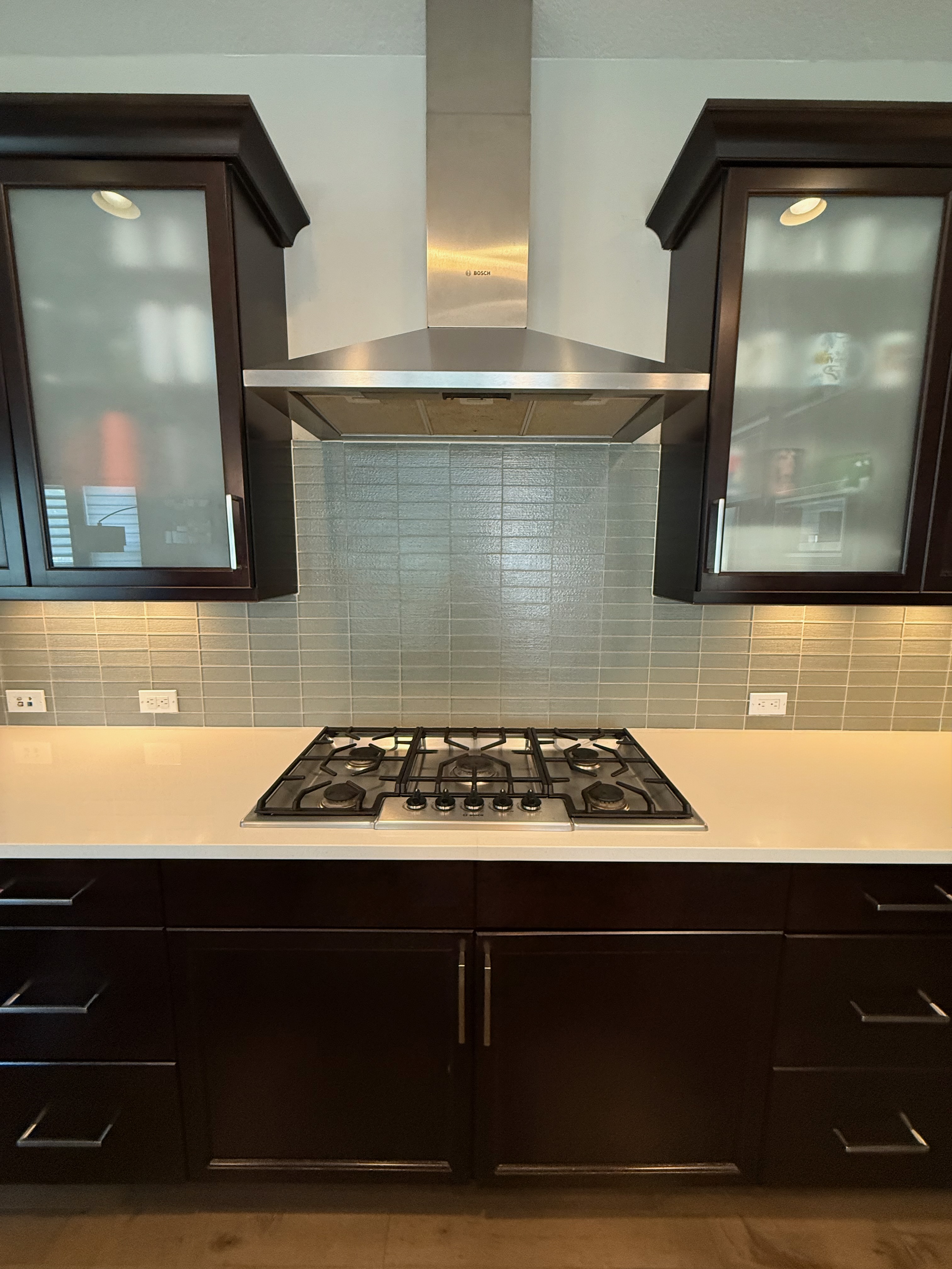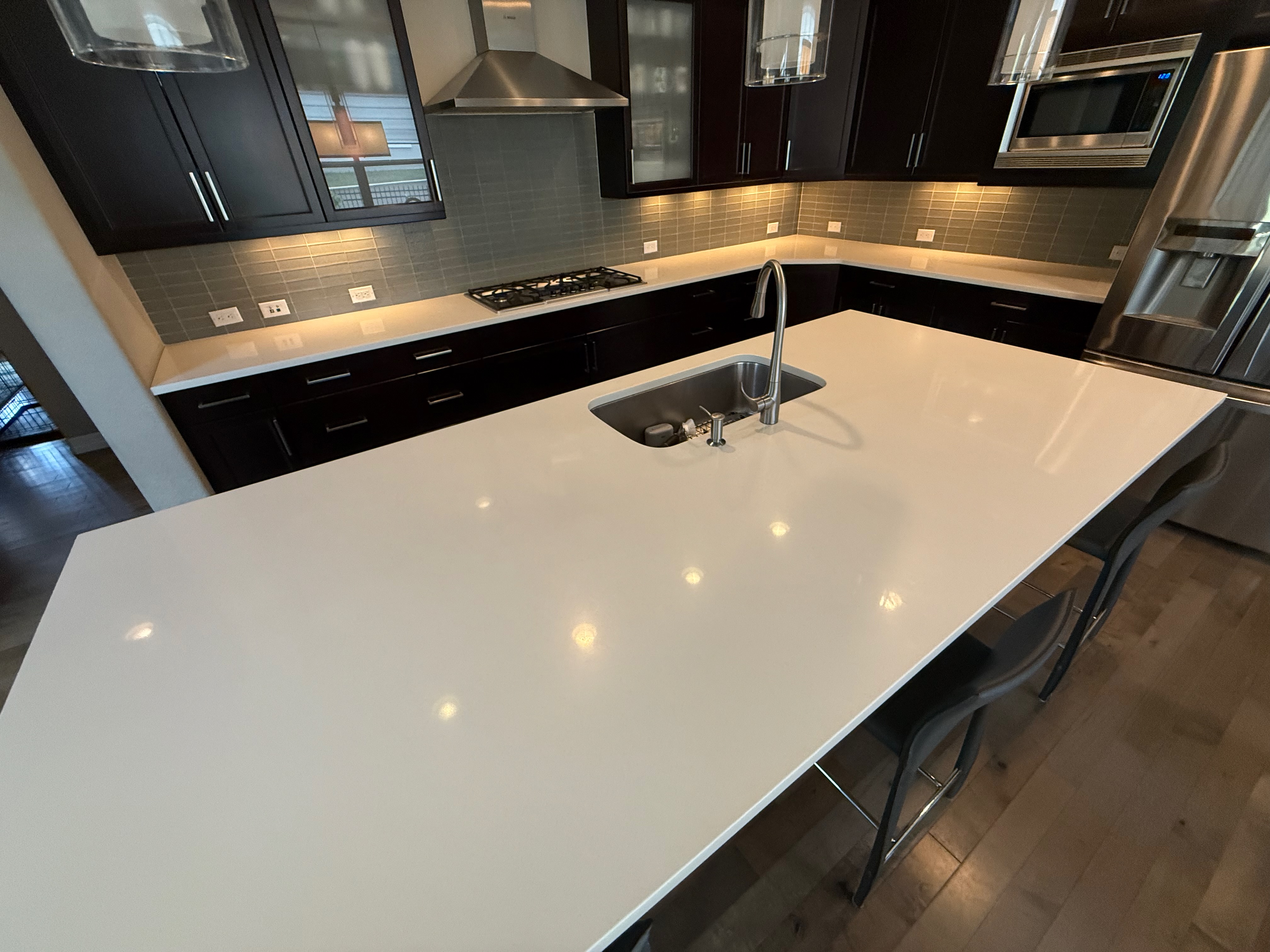 Cooktop wall 170”w x 25 ½” d, seam in the middle of the cooktop 74”w to the seam from the left wall