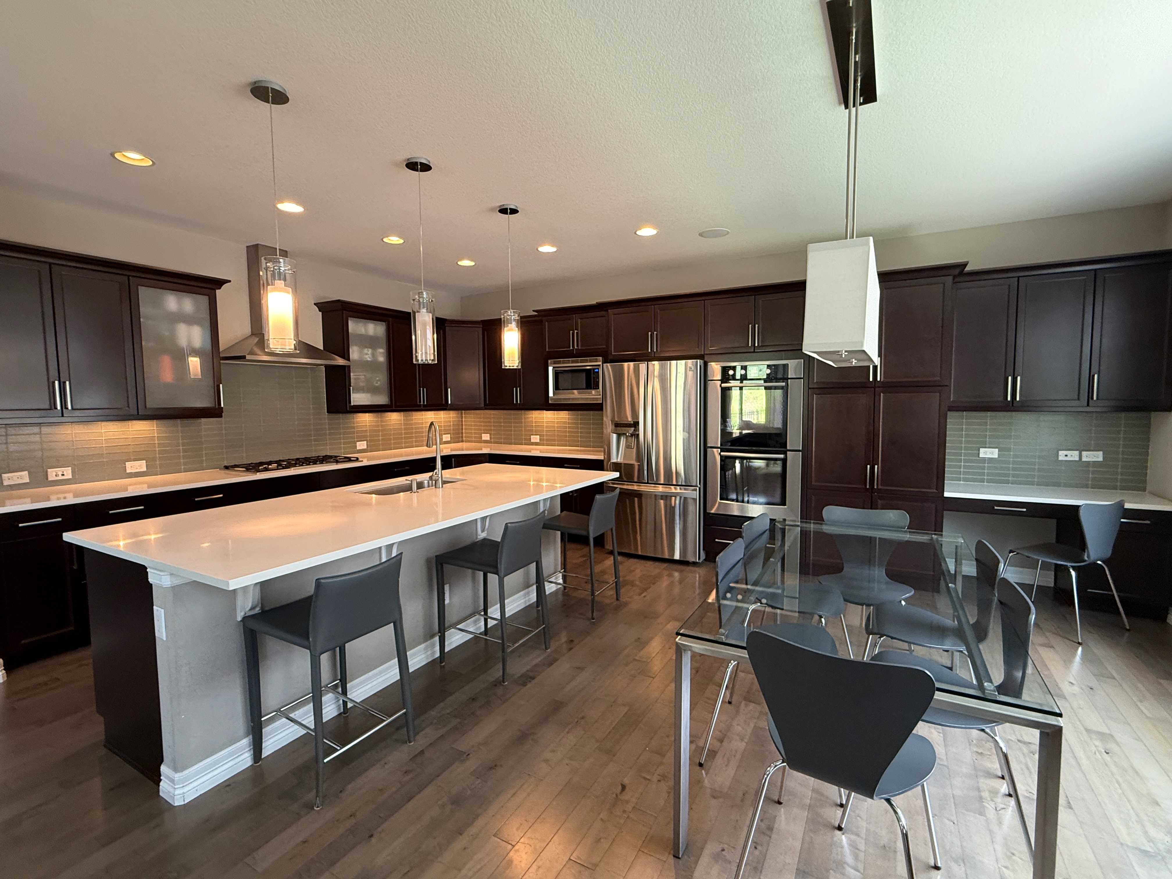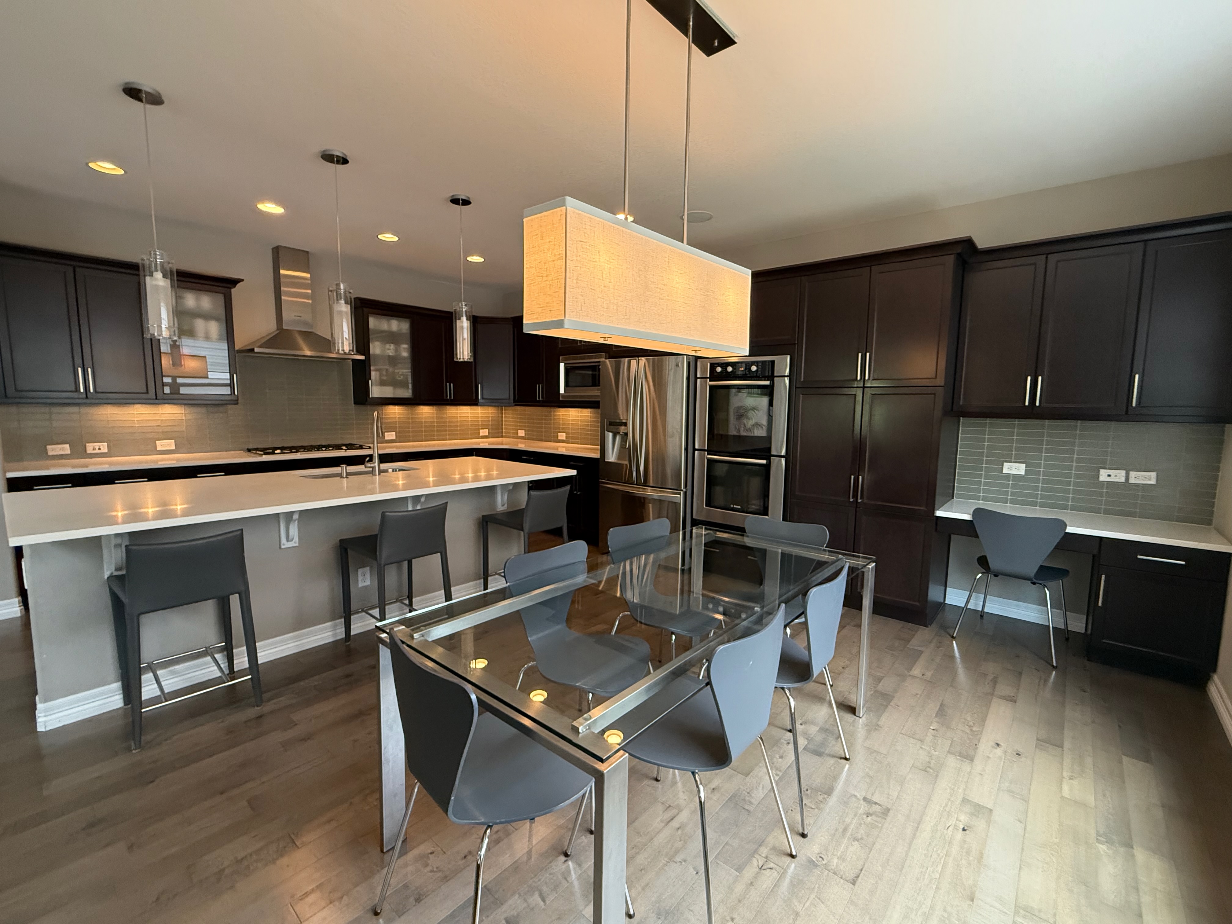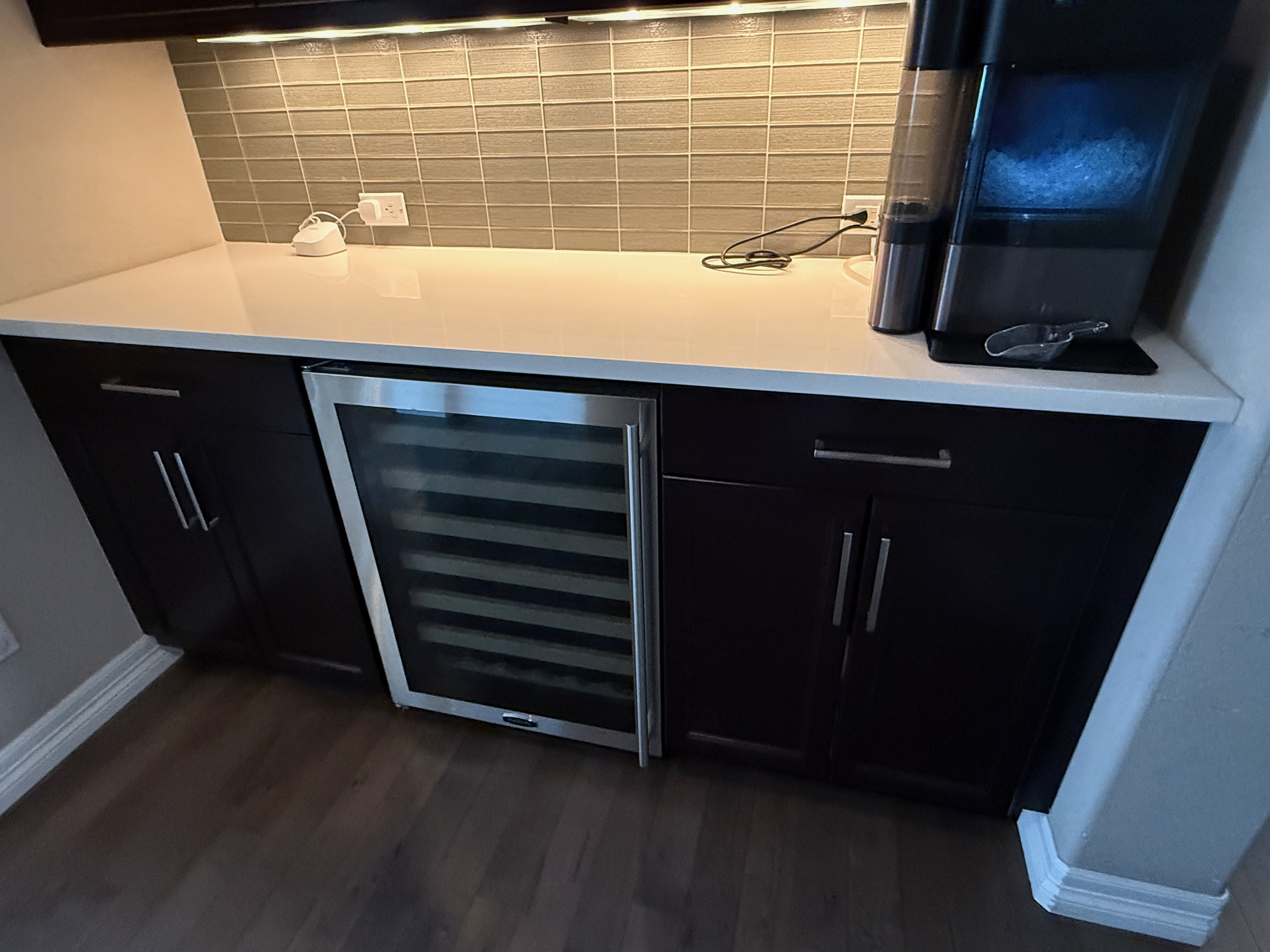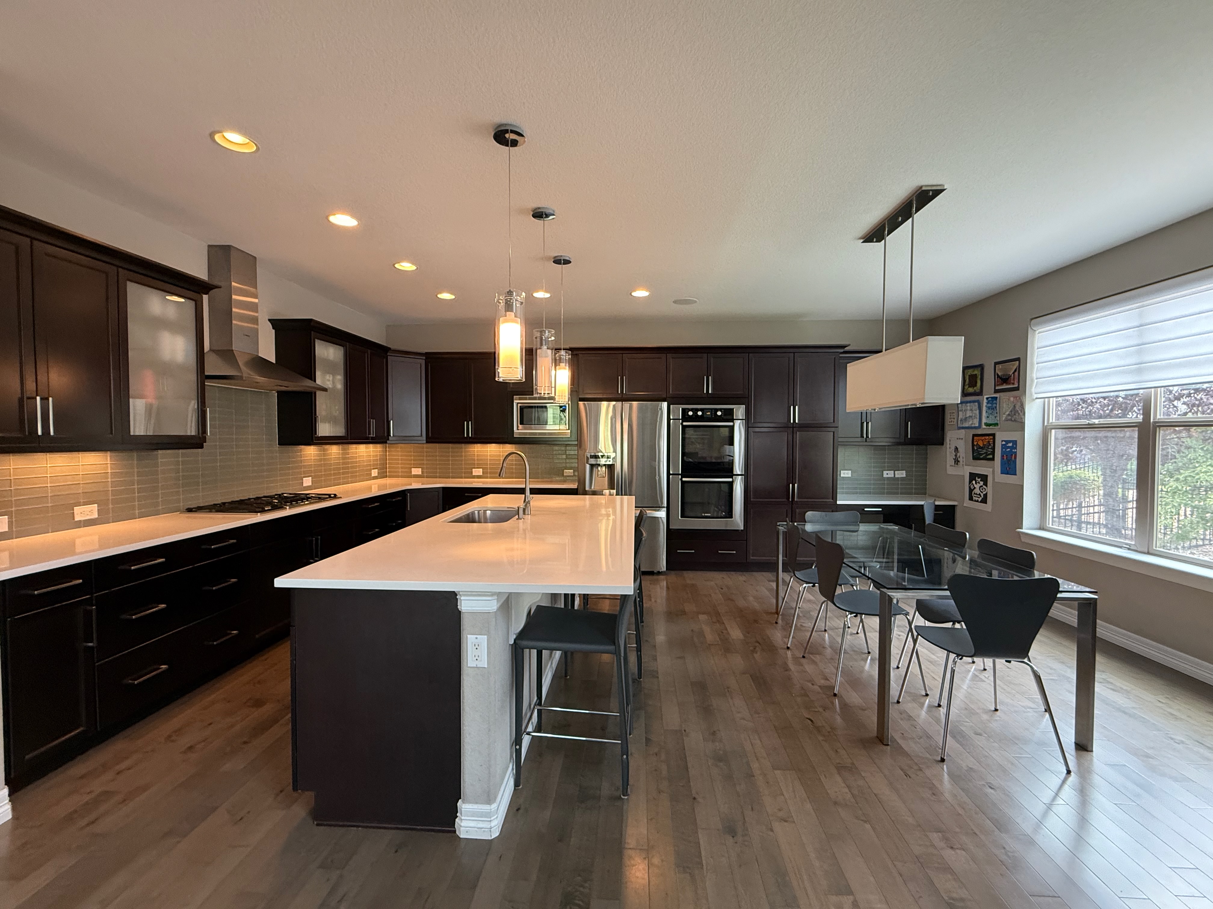Nice Kitchen Craft Kitchen cabinets in an Espresso finish. The package includes nice Bosch Stainless steel appliances along with beautiful quartz slab countertops. The cabinets have dovetailed drawers. there is also a matching coffee/wine bar area included in the set. Available mid-end of July. Qualified buyers can remove the kitchen or licensed contractors and movers are available for hire. Price for the package below.