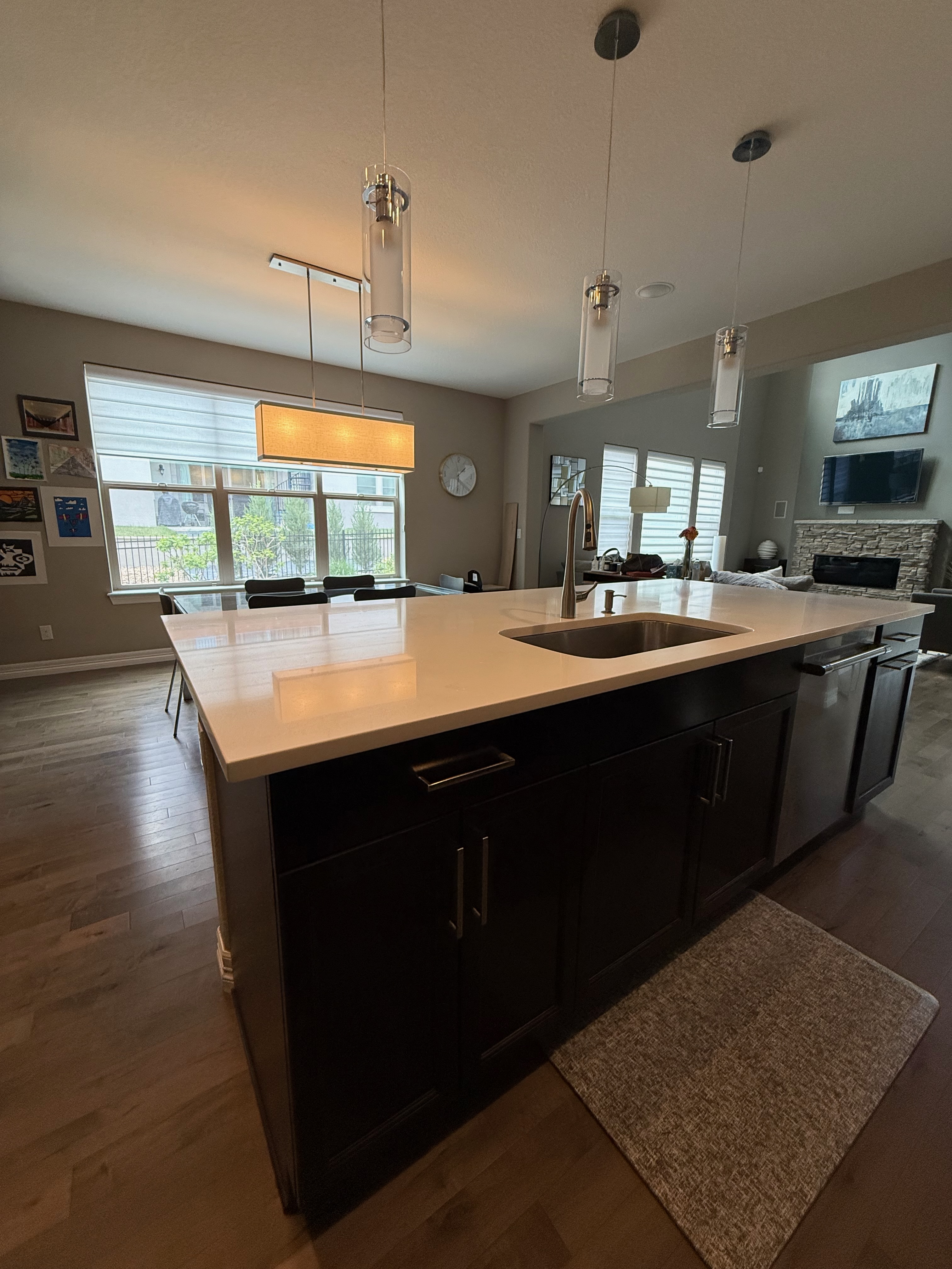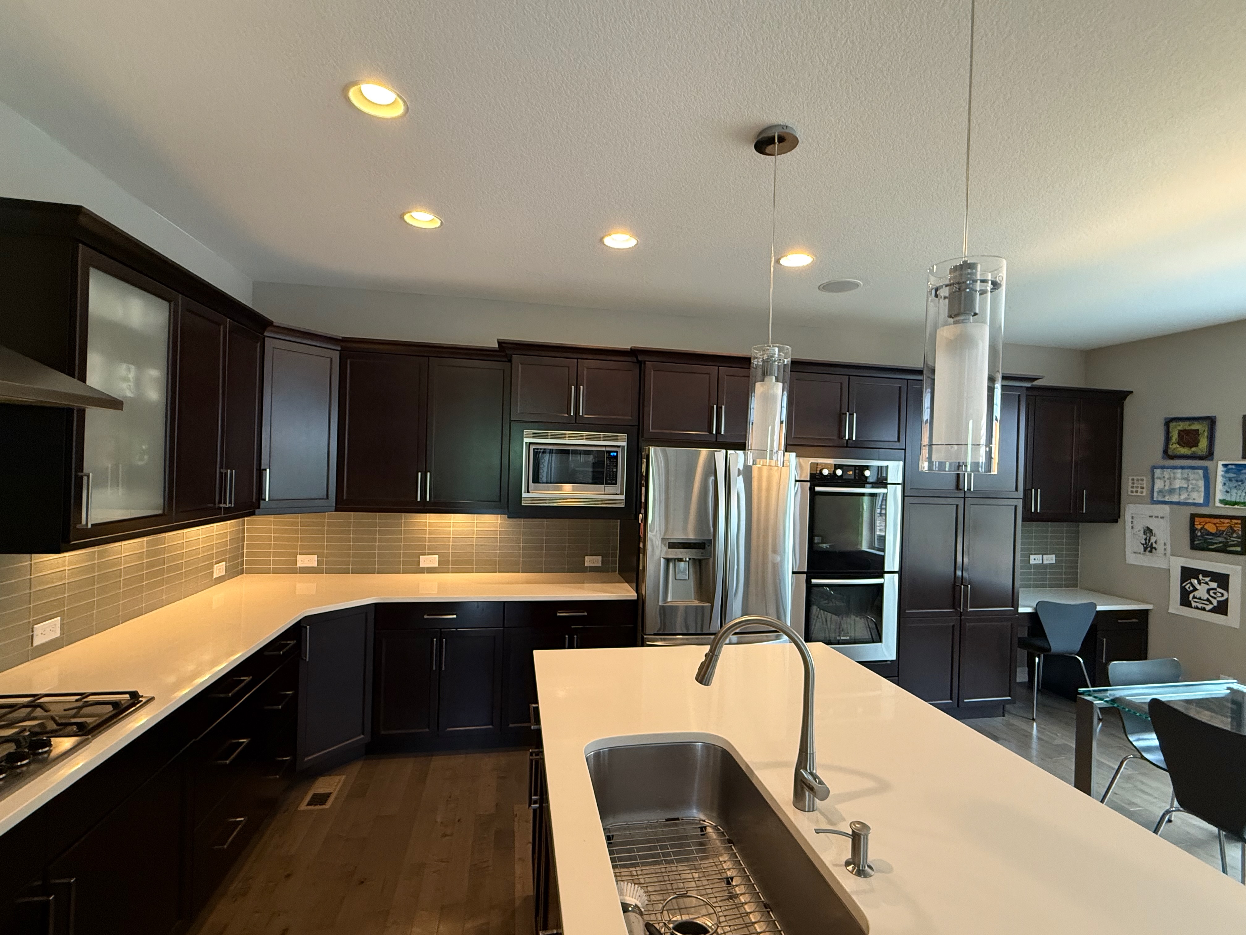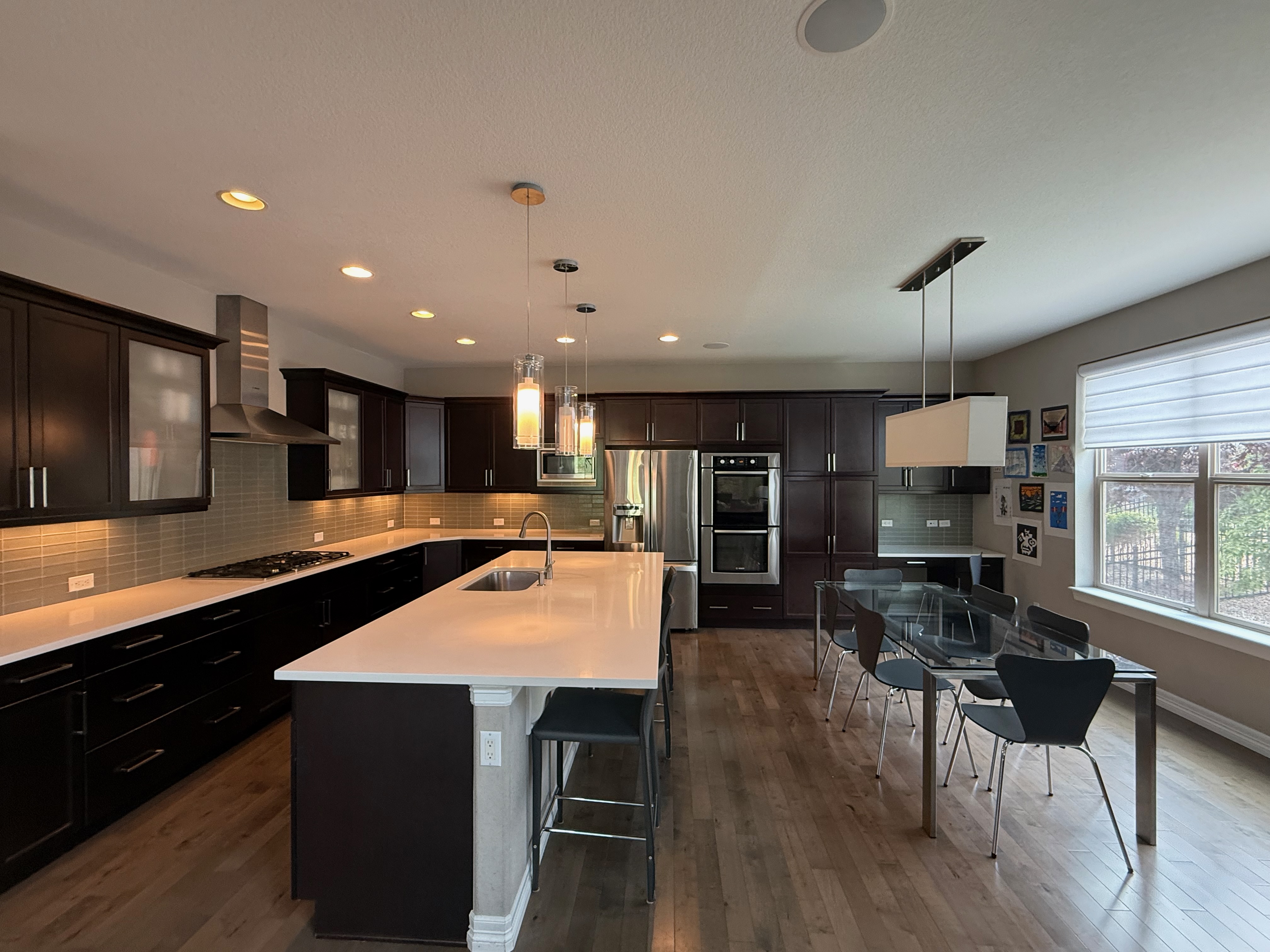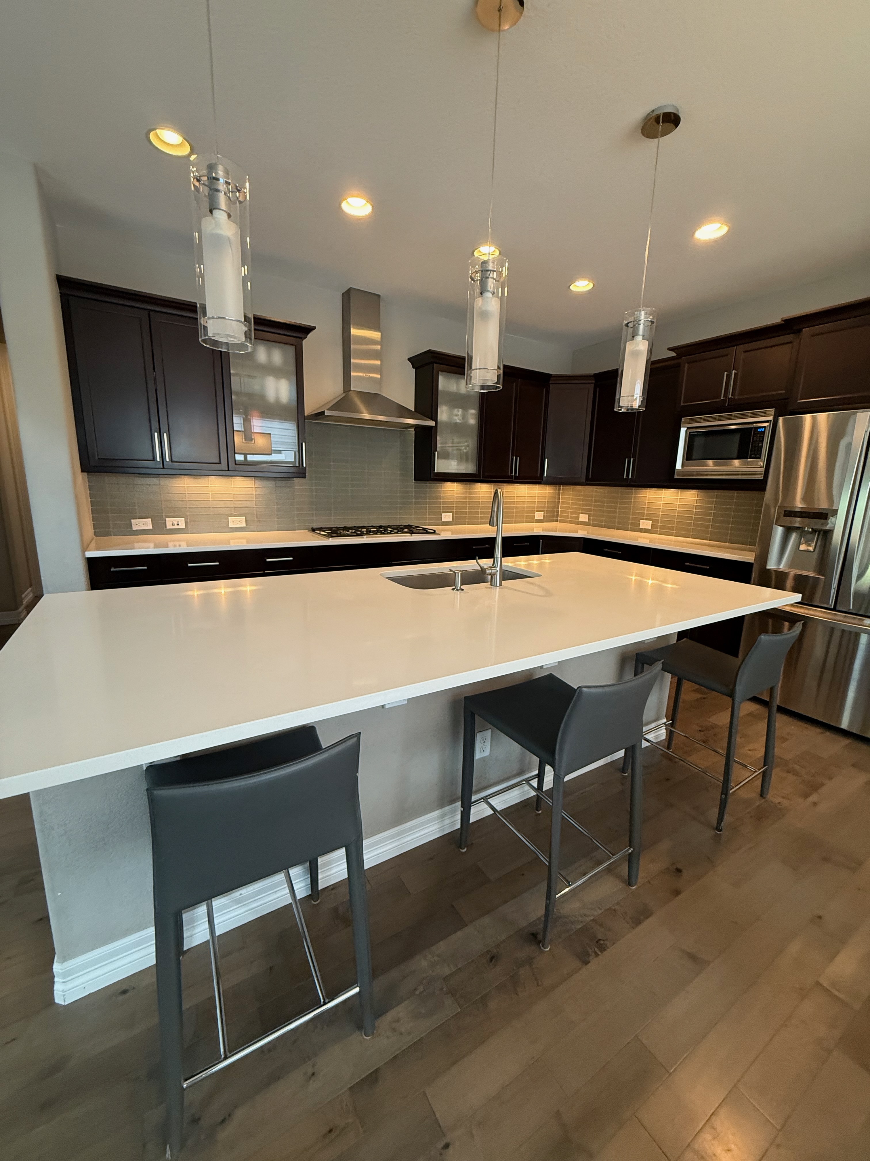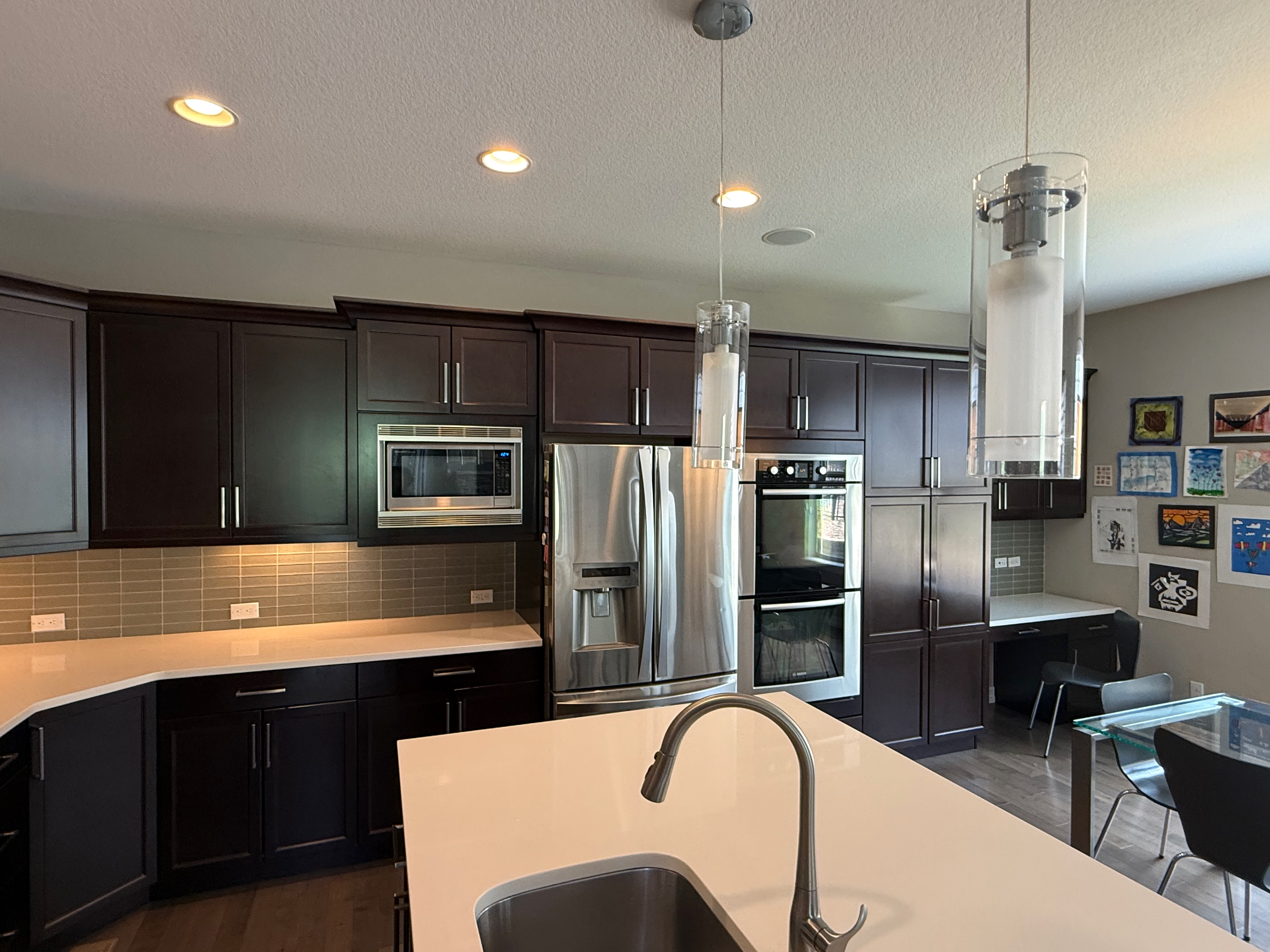 Nice Kitchen Craft Kitchen cabinets in an Espresso finish. The package includes nice Bosch Stainless steel appliances along with beautiful quartz slab countertops. The cabinets have dovetailed drawers. there is also a matching coffee/wine bar area included in the set. Available mid-end of July. Qualified buyers can remove the kitchen or licensed contractors and movers are available for hire. Price for the package below.