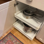 1-One drawer, Two door base cabinet w/ two pull out drawers inside Dim.: 27”w x 34 ½”h x 24”d