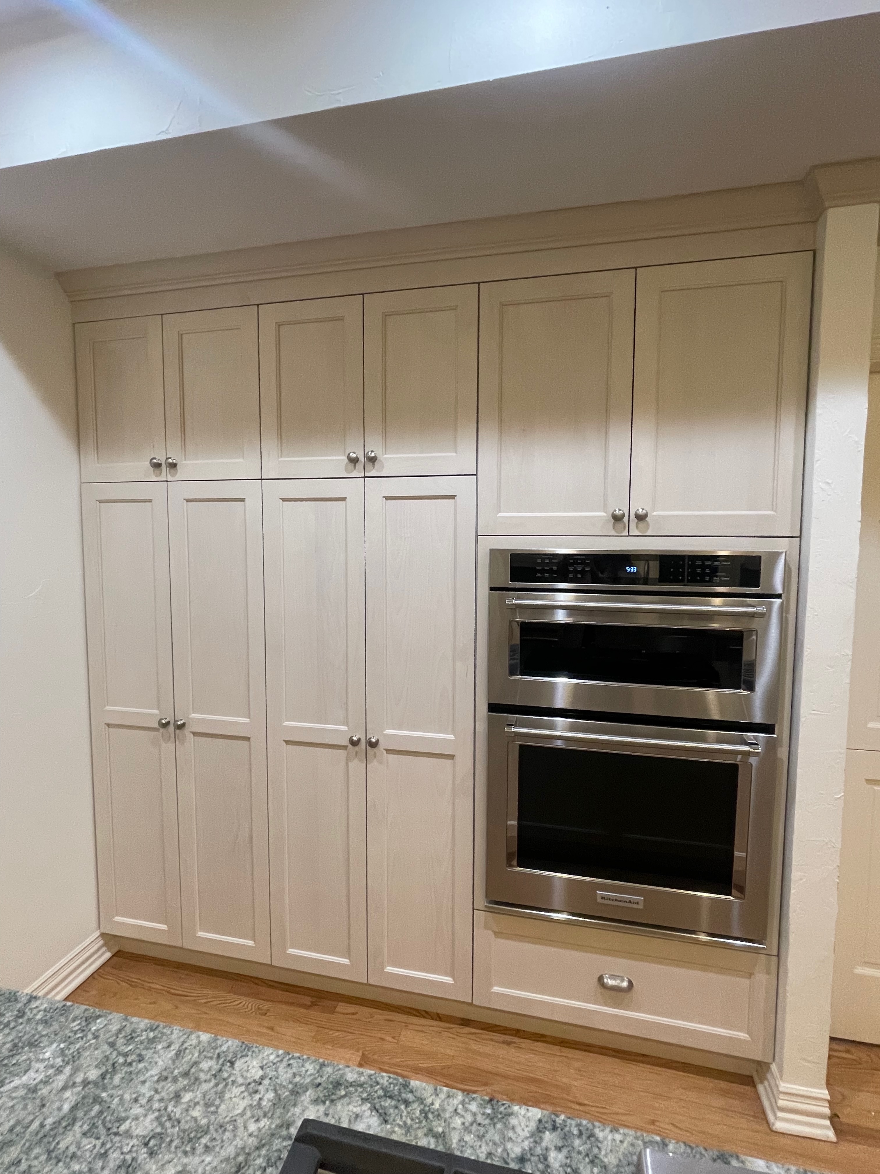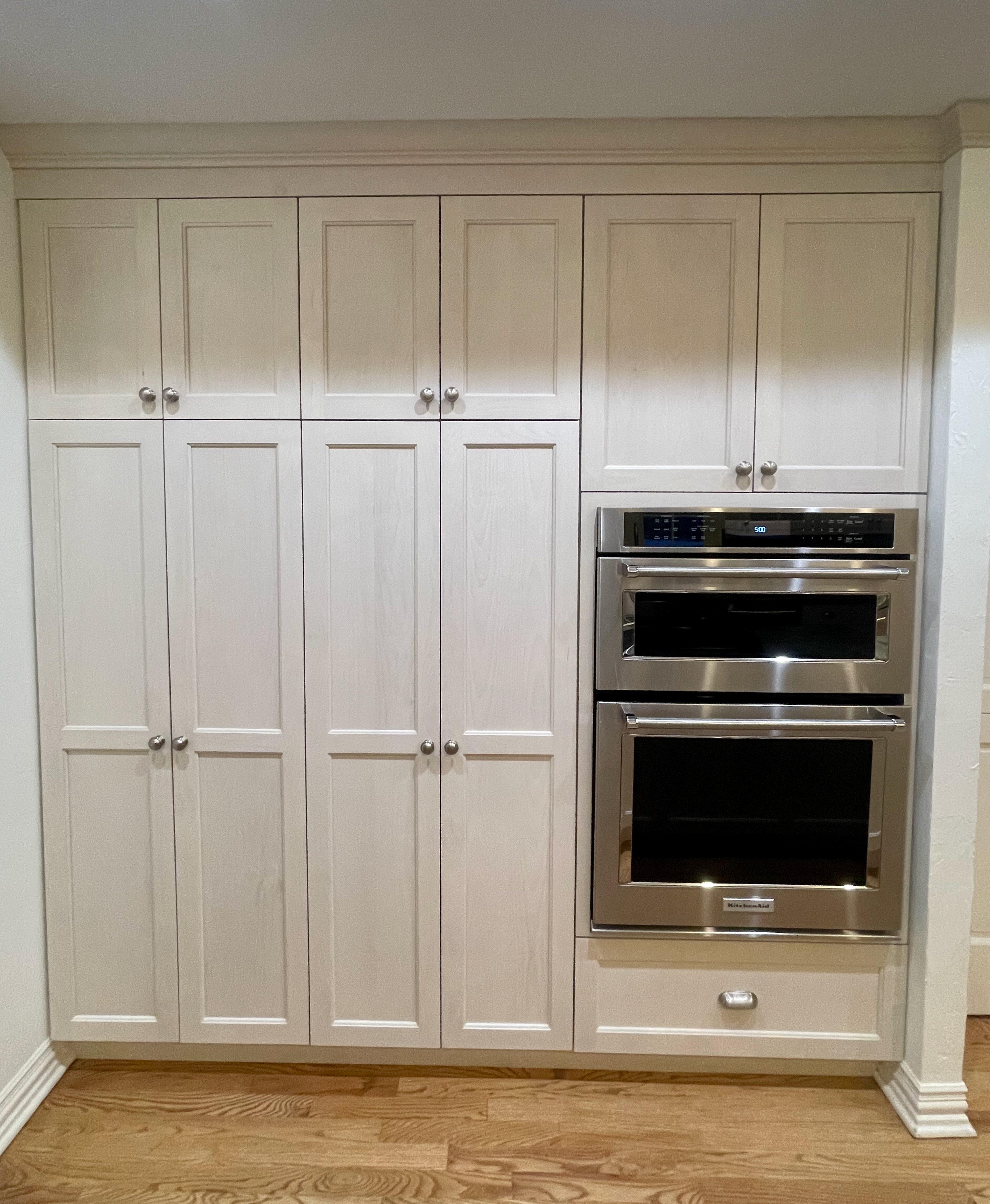 2-Two door double tall pantry cabinet Dim.:27”w x 89”h cab. only/94 1/2”h w/ crown x 24”d