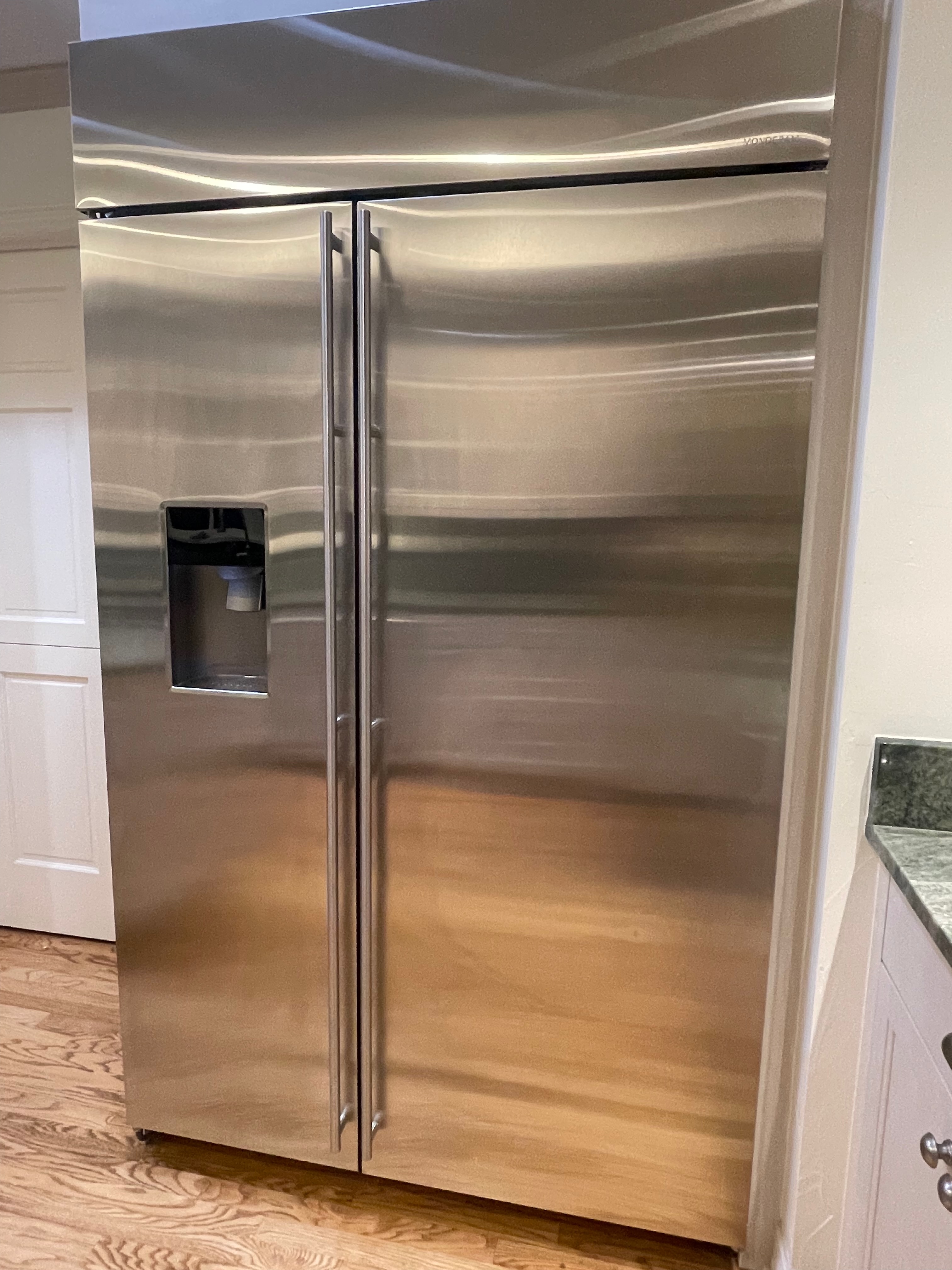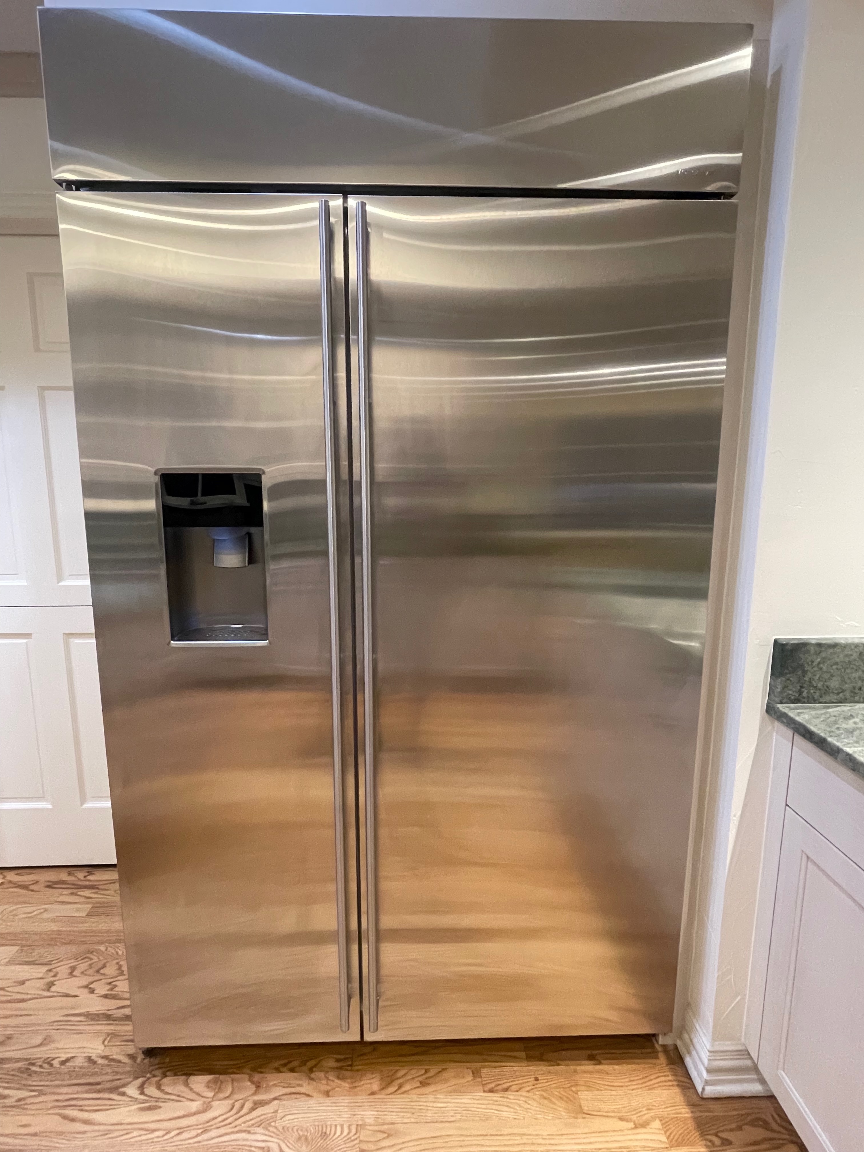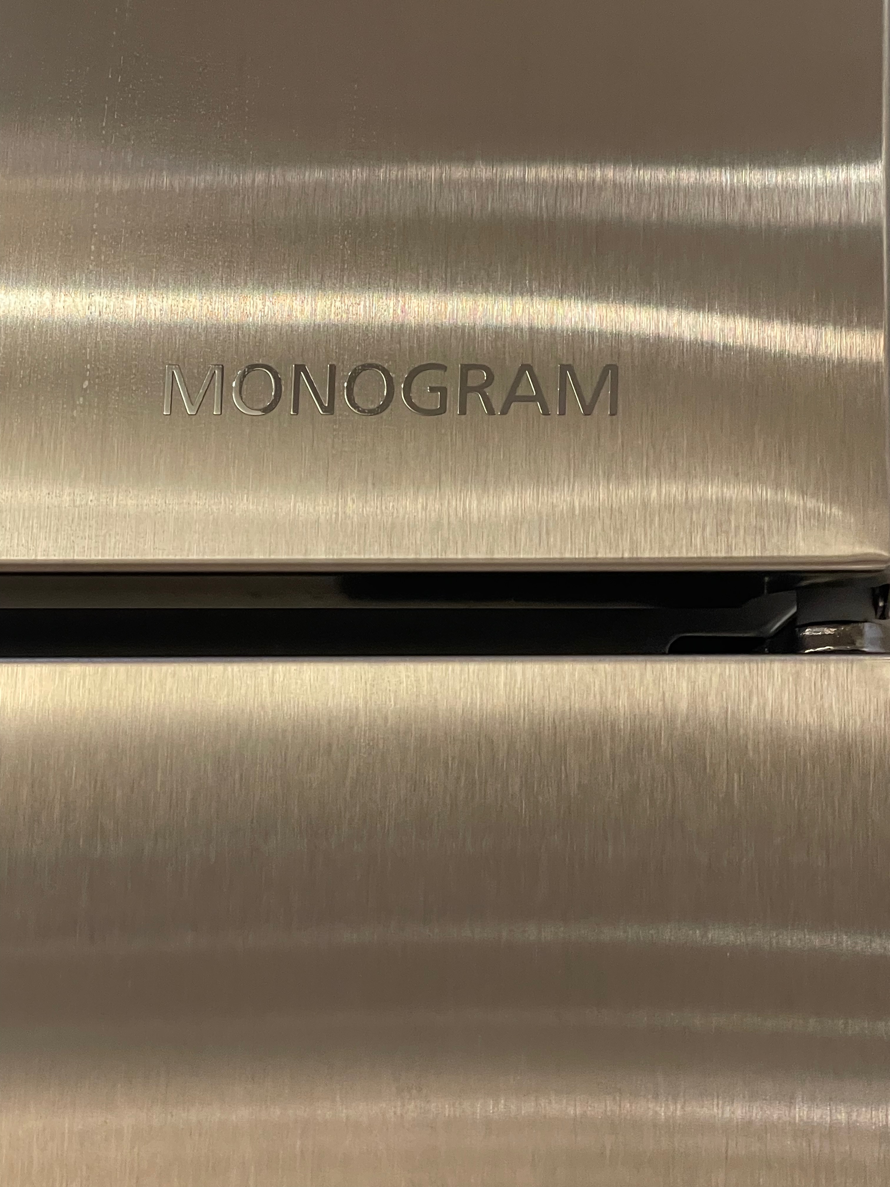 48” Monogram Stainless Steel smart counter depth built-in side x side refrigerator, 29.5 Cu. Ft. Total Capacity, Ice Maker, Advanced Temperature Management System, Climate-Control Drawer, LED Lighting and Deli DrawerModel #ZISS480DKBSS Serial #HH034050 5/17 Dim.:48” x 74”h x 24” d Listing price new $11,900