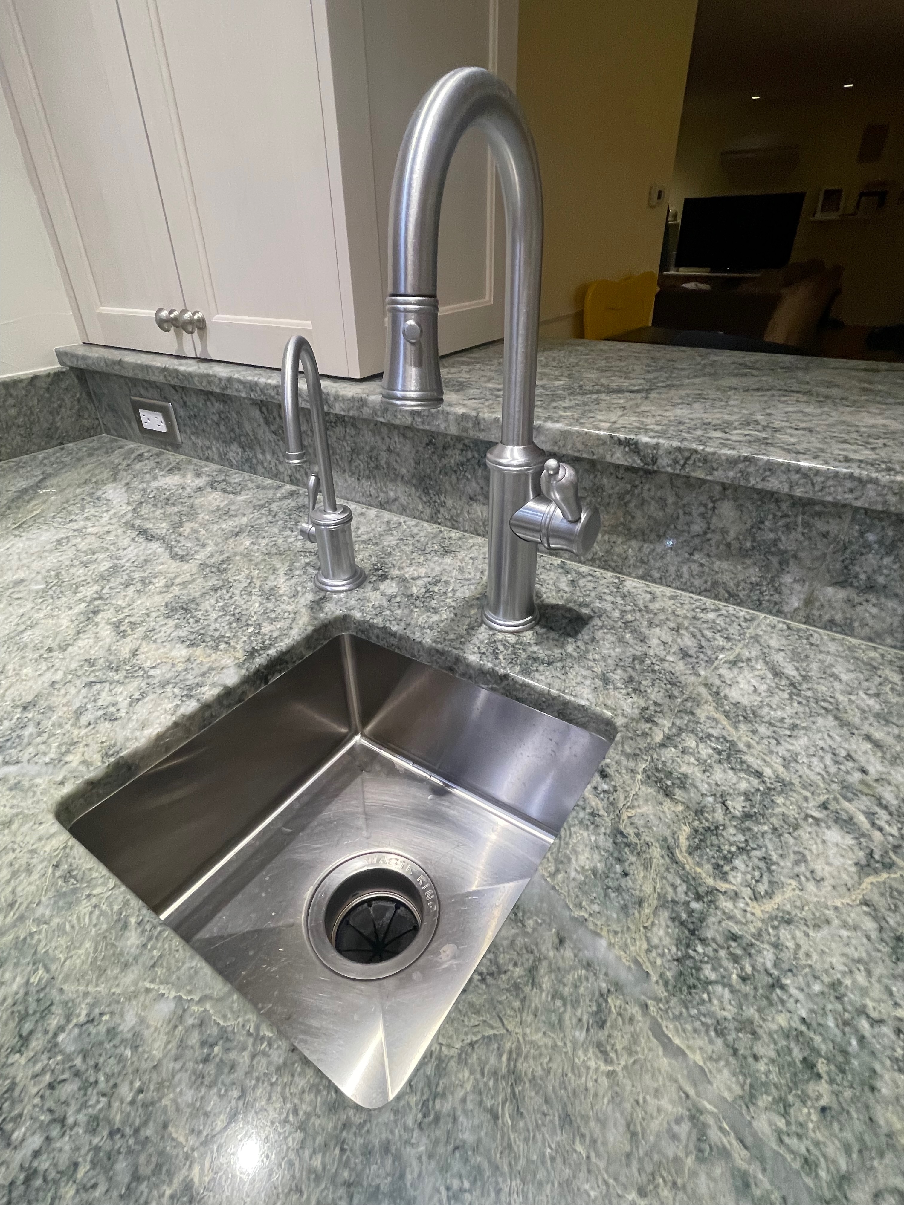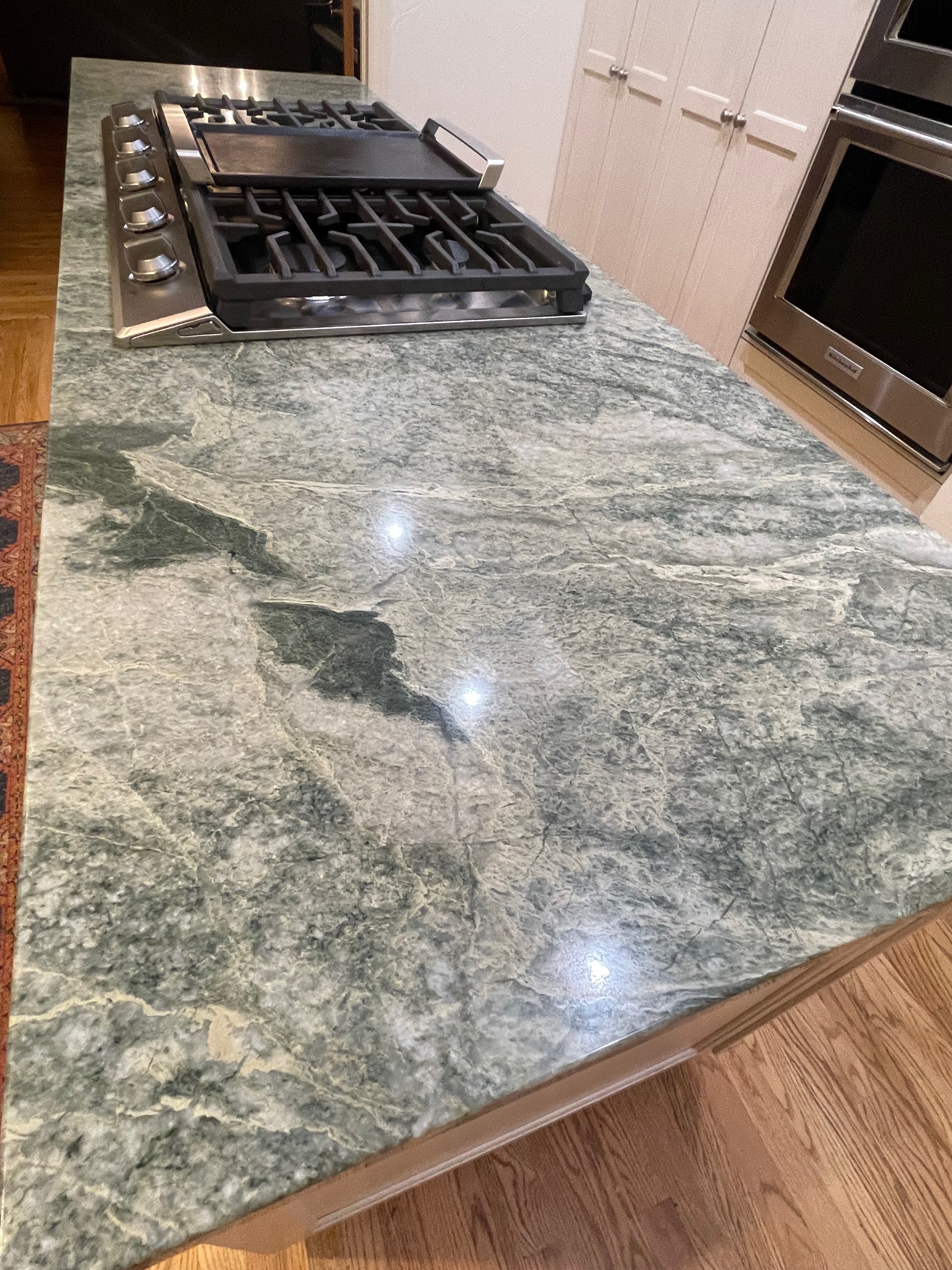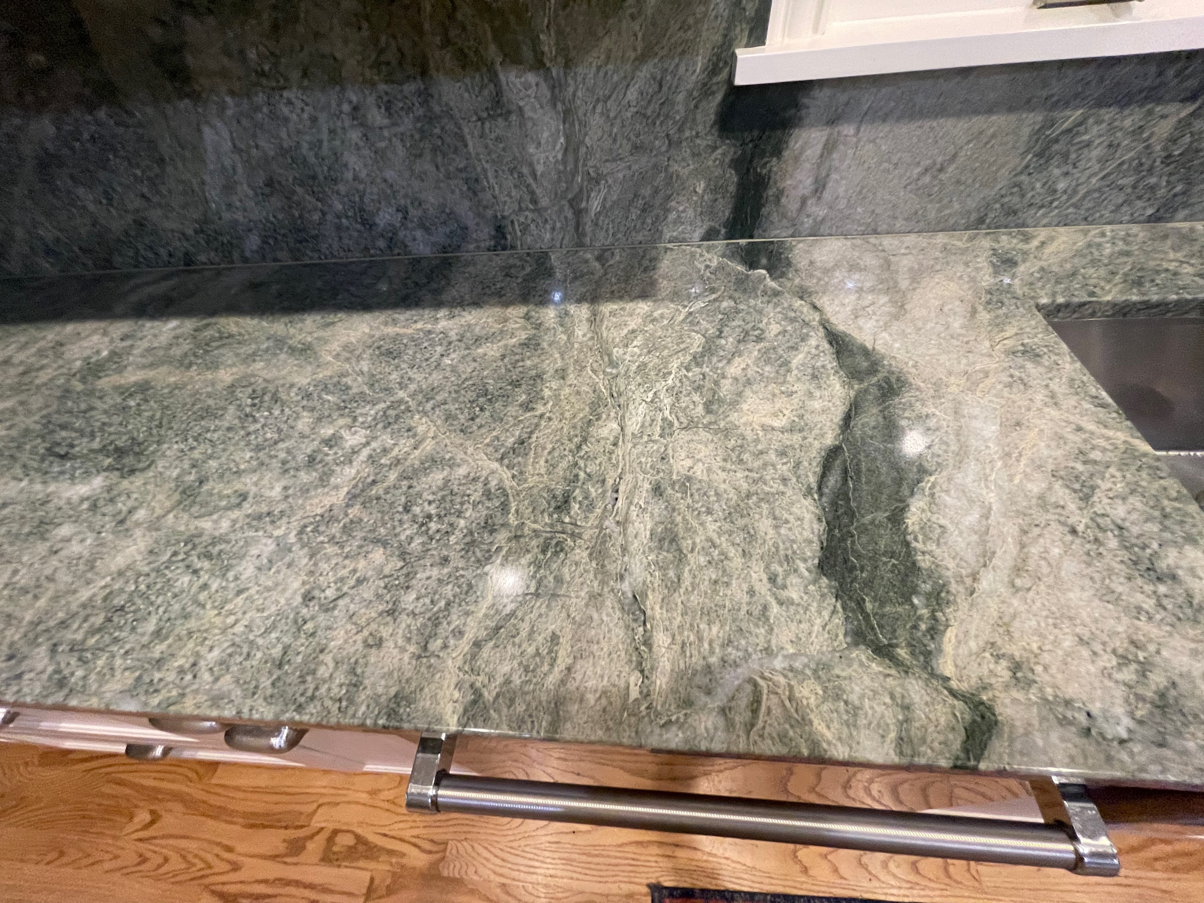 Sink counter-196 ¾”w x 25”d there is a seam at the middle of the apron sink