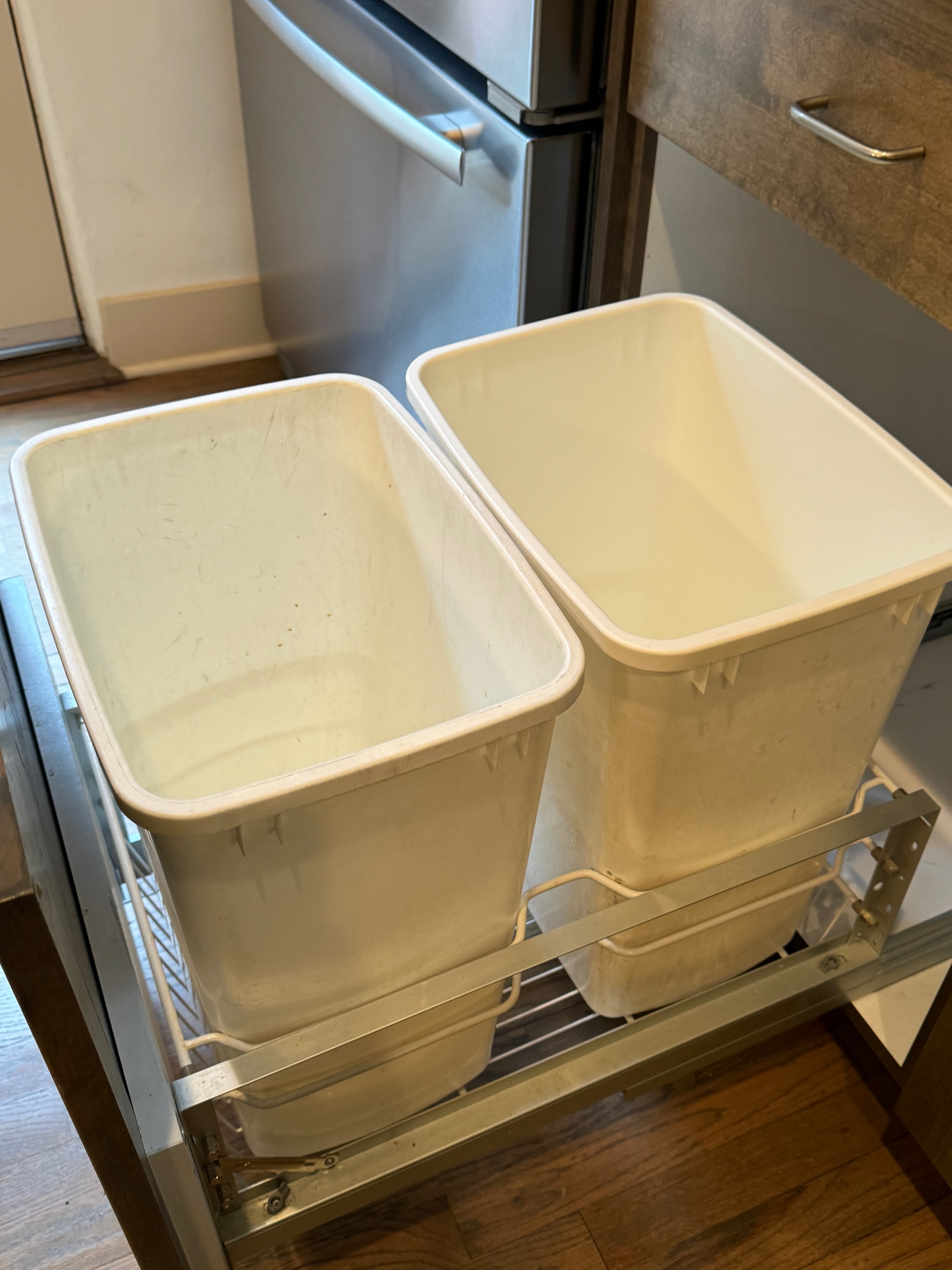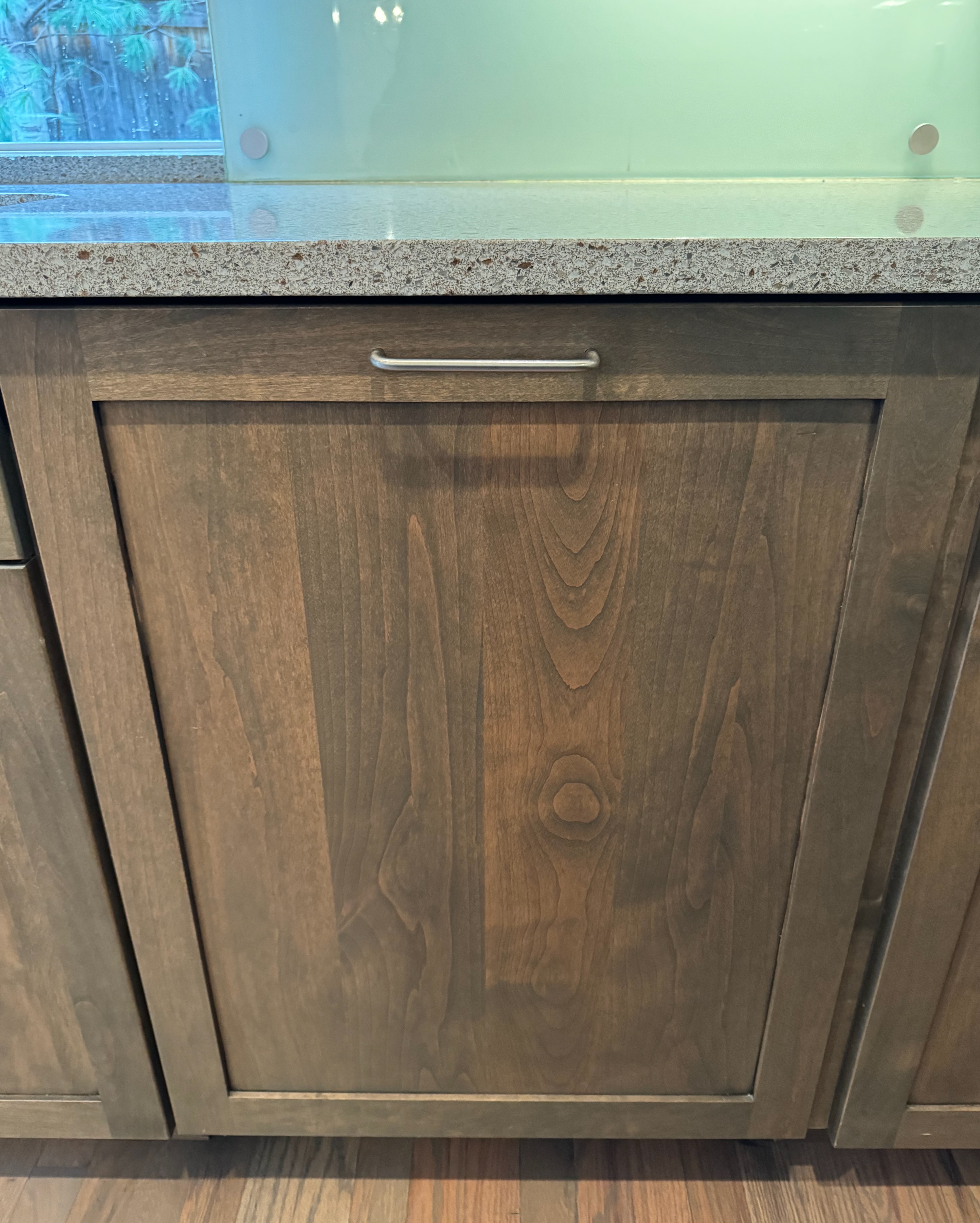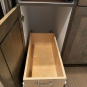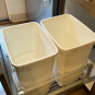 1-One drawer, one door base cabinet w/ 2 Trash cans Dim.: 21 ½” w x 34 ½”h/36”h x 24” d