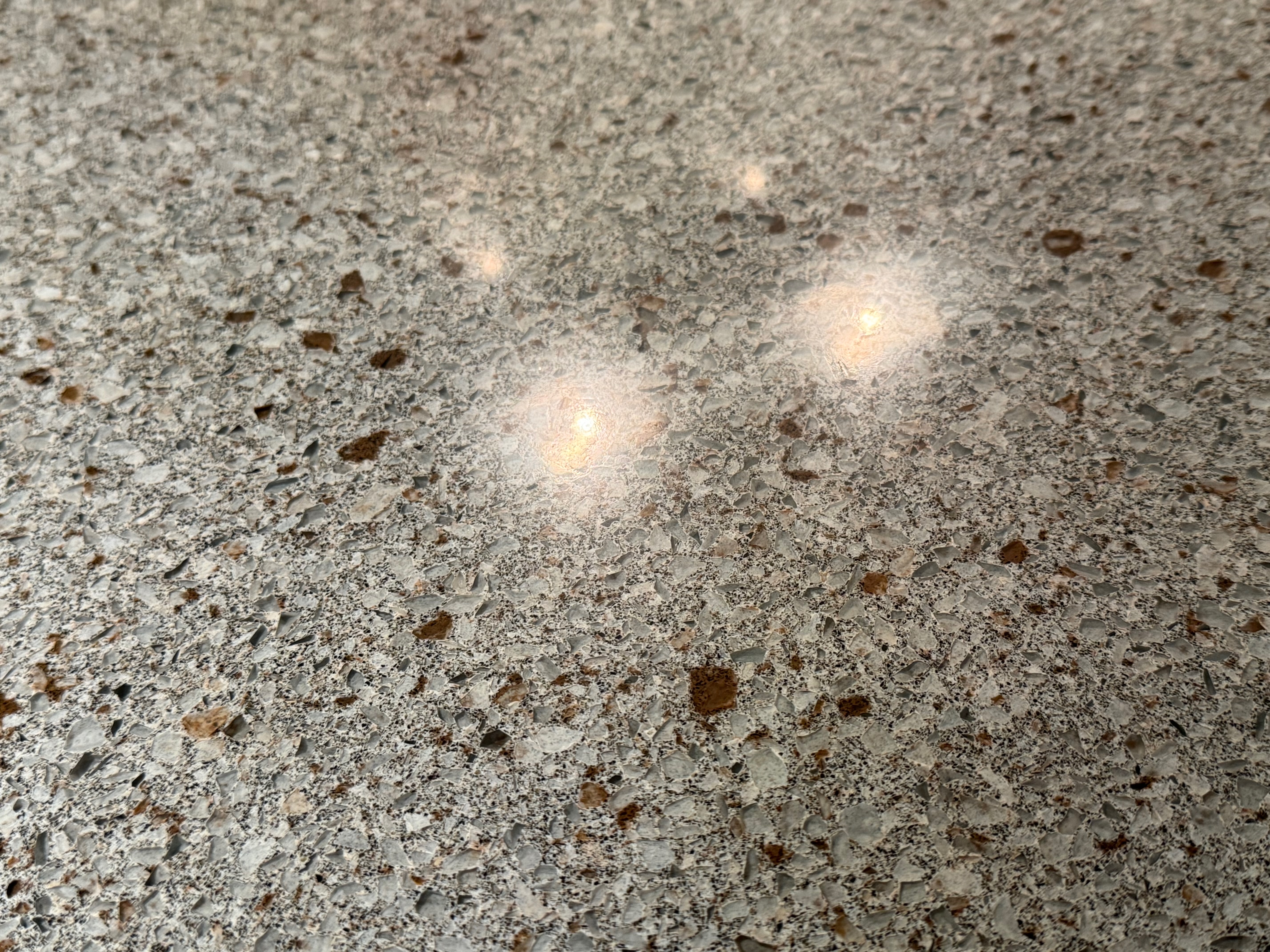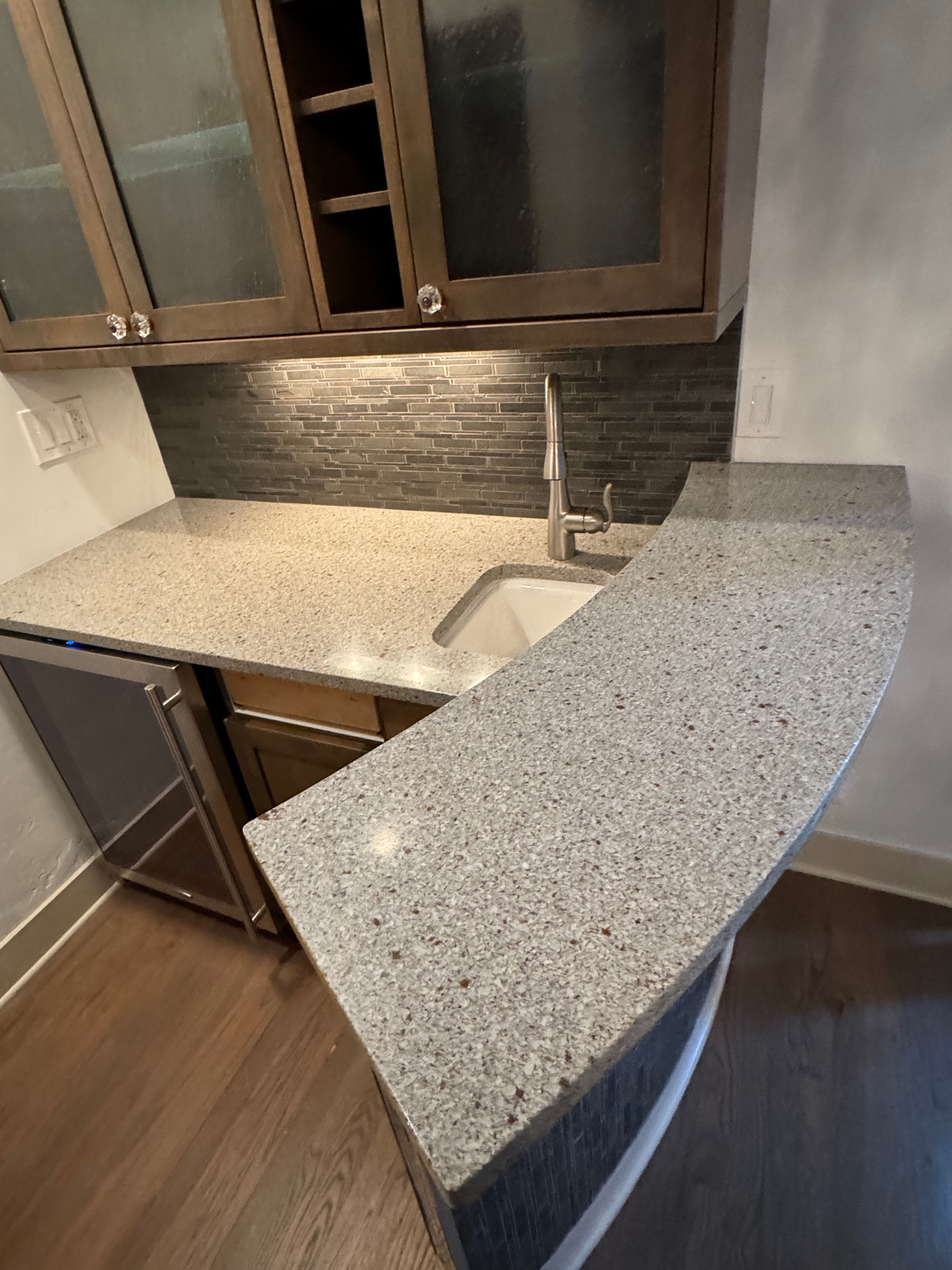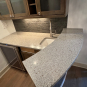 Peninsula counter 113 ¾” w x 26 ¾”d to wall then 38 ¼”d