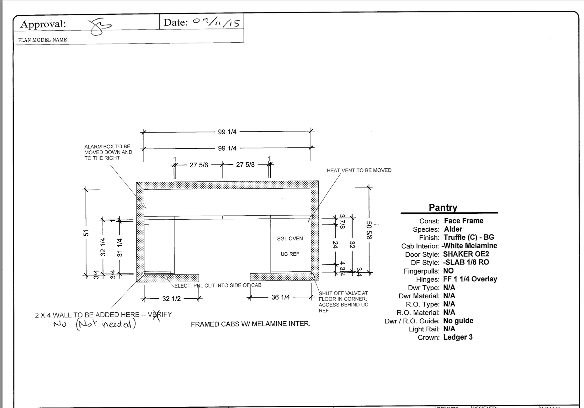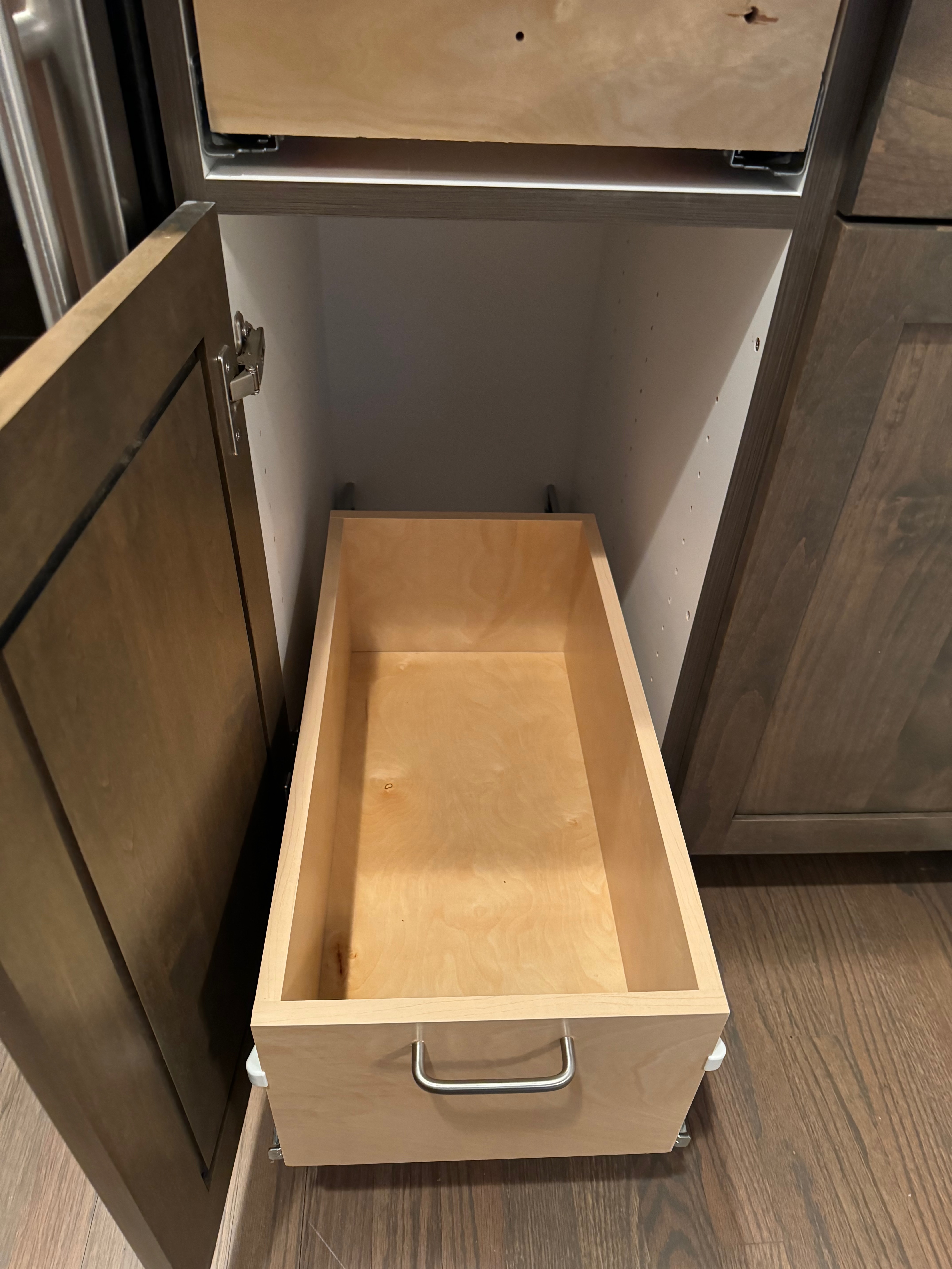 1-One drawer, one door base cabinet, pull out drawer inside Dim.: 15” w x 34 ½”h/36”h x 24” d *Have the draw front it was just off to match colors