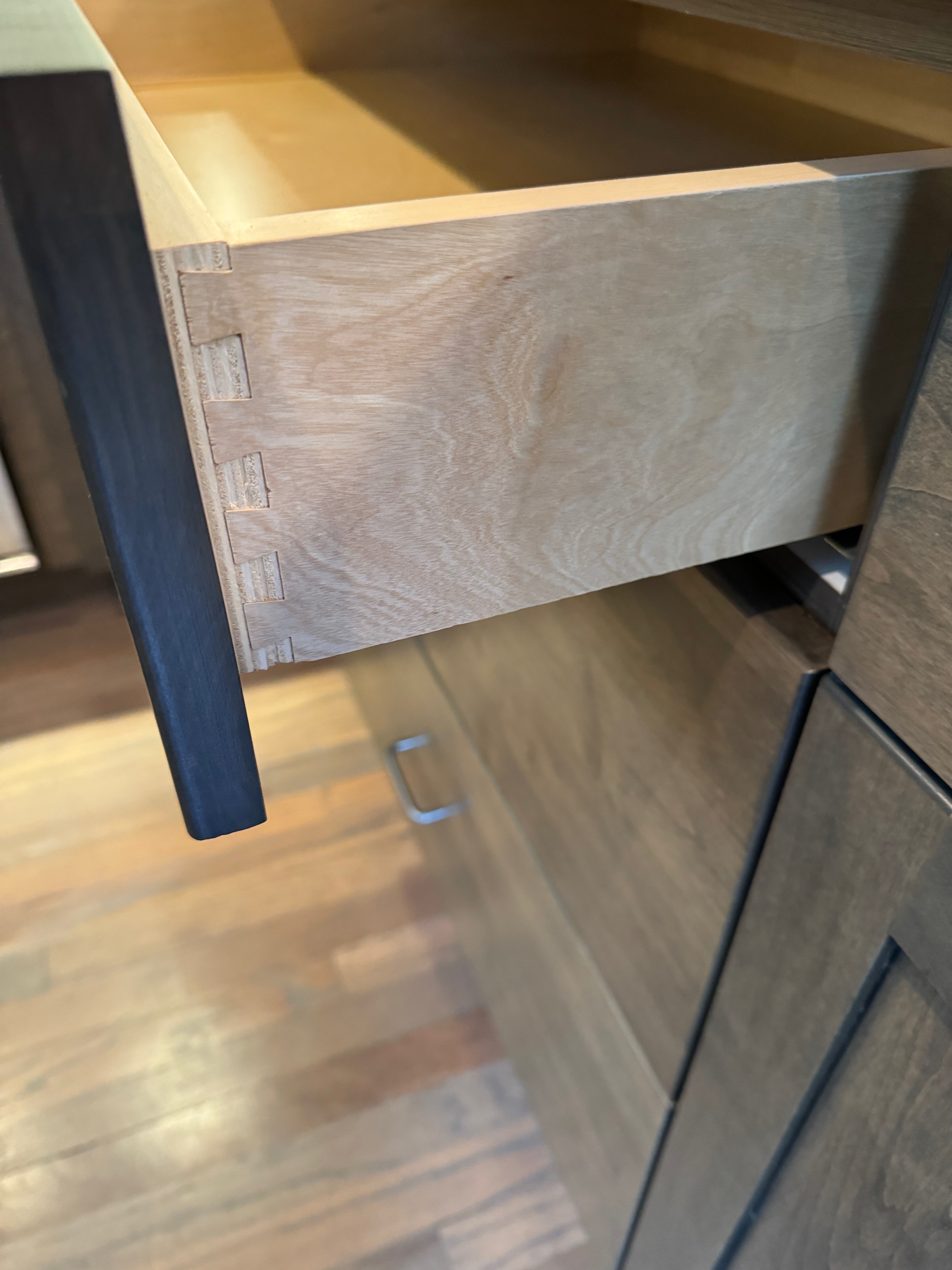 1-One fixed drawer, one door sink base Dim.: 15” w x 34 ½”h/36”h x 24” d, Kohler sink 12”w and faucet set