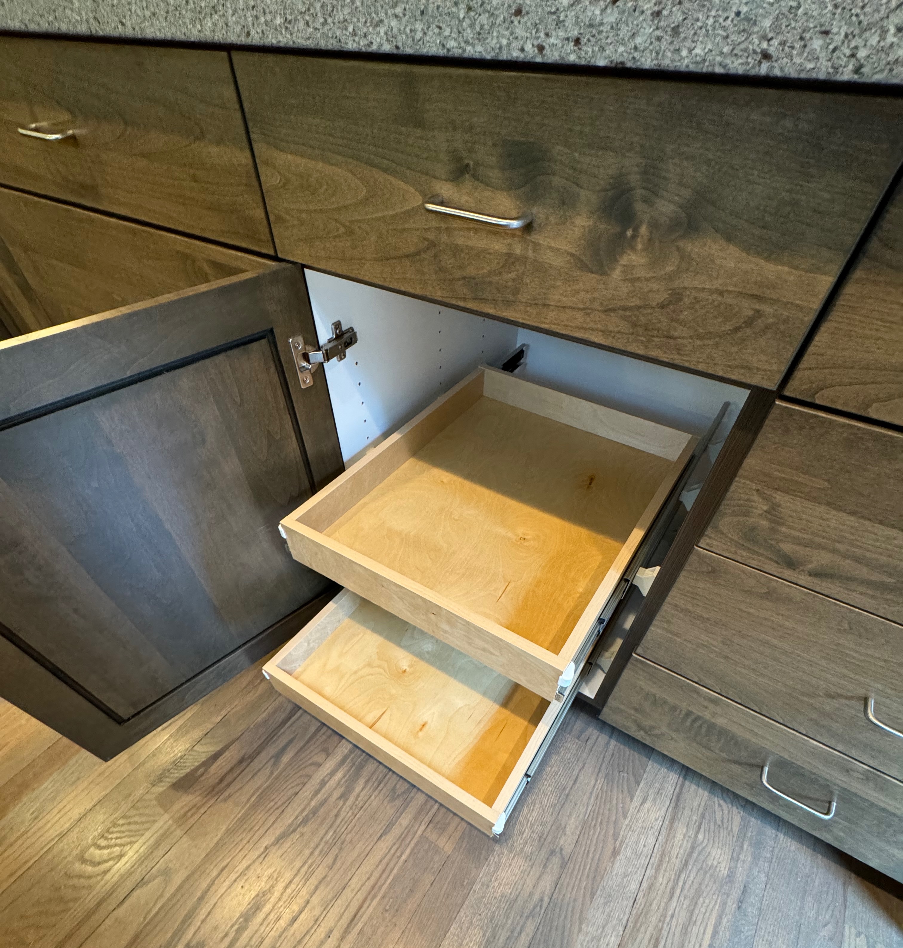 1-One drawer, one door base cabinet, with two pull out drawers inside Dim.:22” w x 34 ½”h/36”h x 24” d