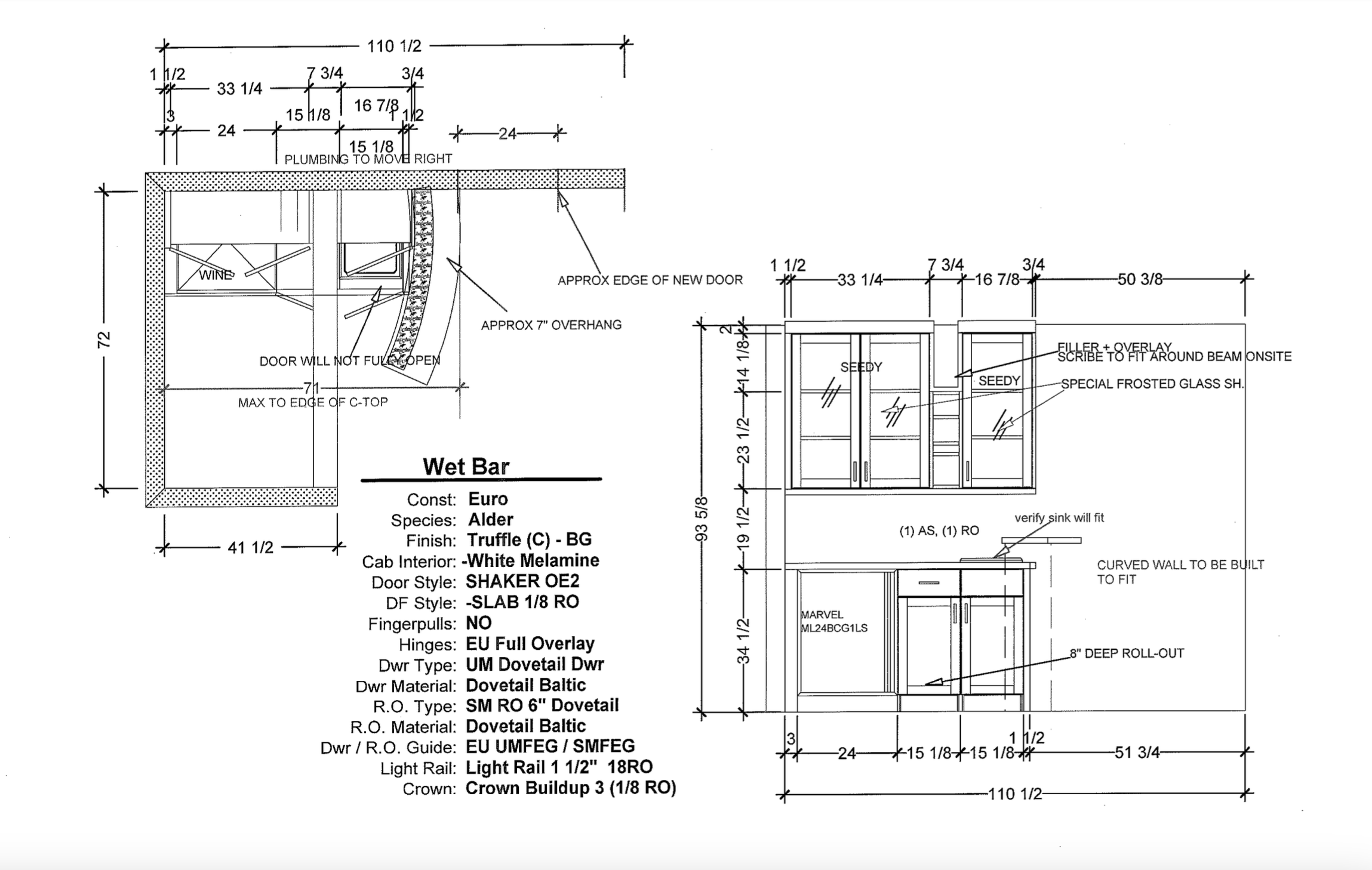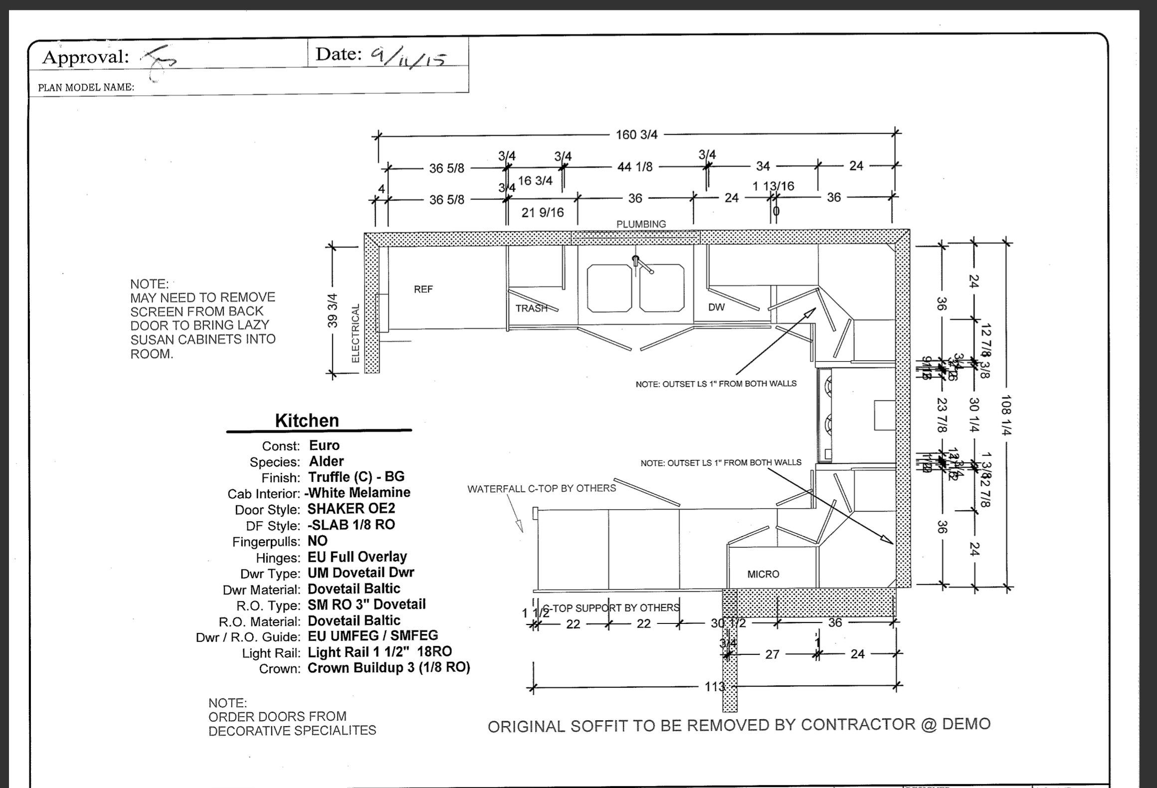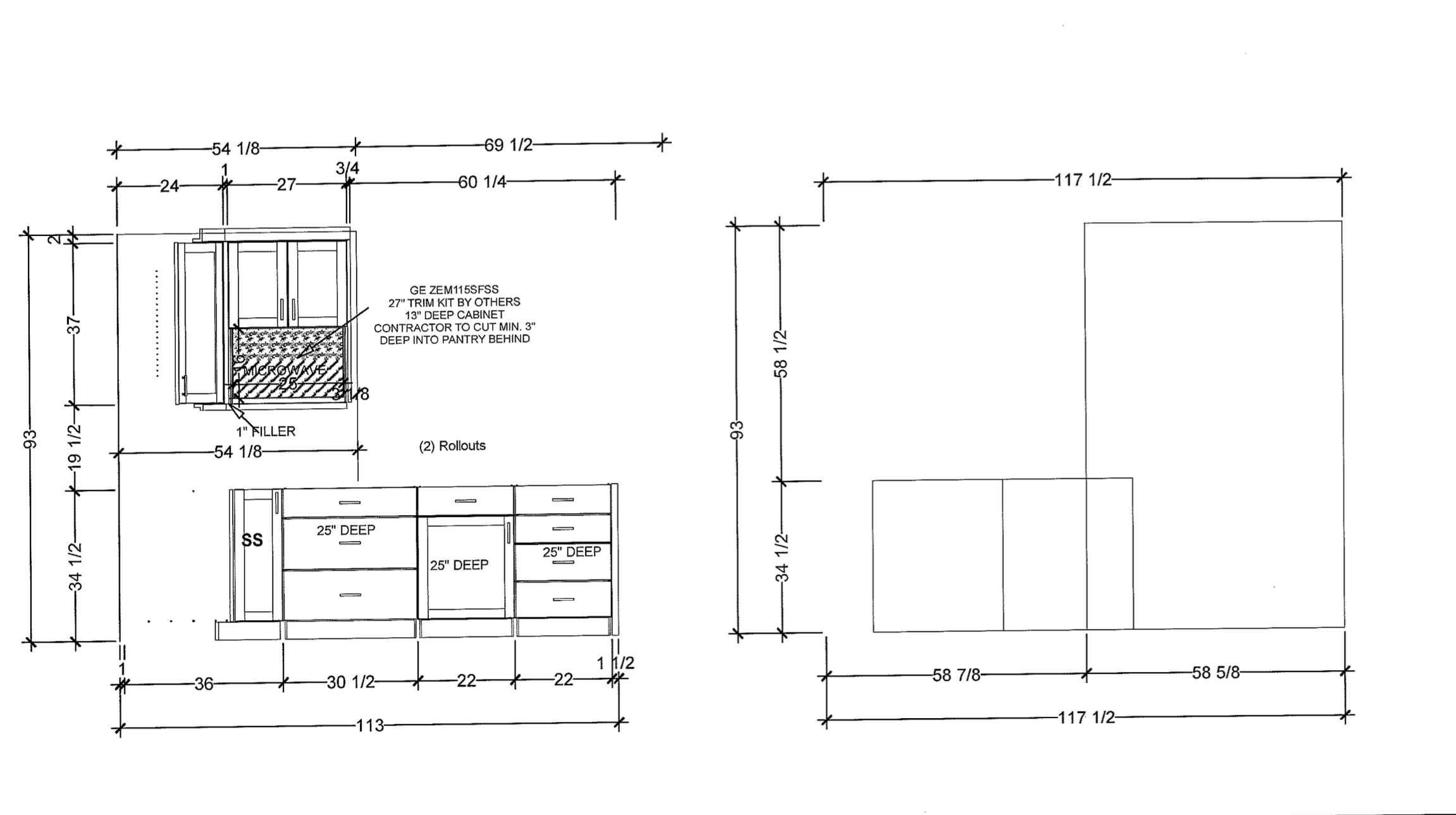 2-Lazy Susan’s base cabinet Dim.: 36” w x 34 ½”h/36”h x 24” d