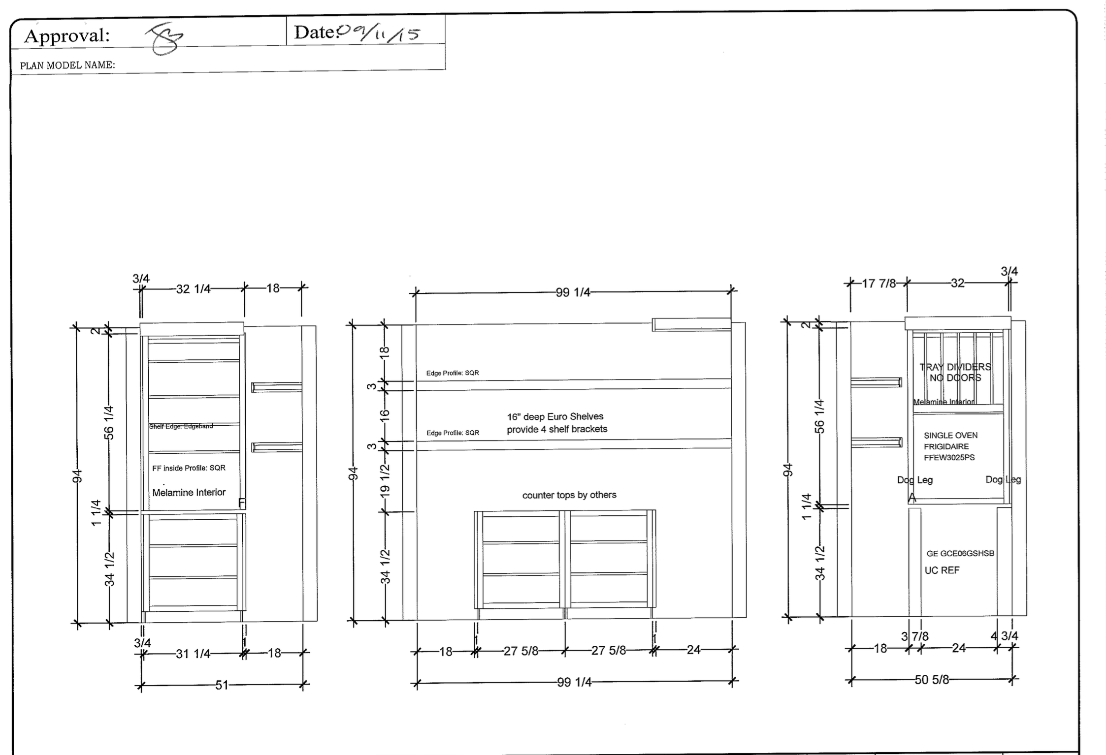 1-Shelf over the refrigerator Dim.:36”x 18”h x 26 ½” d