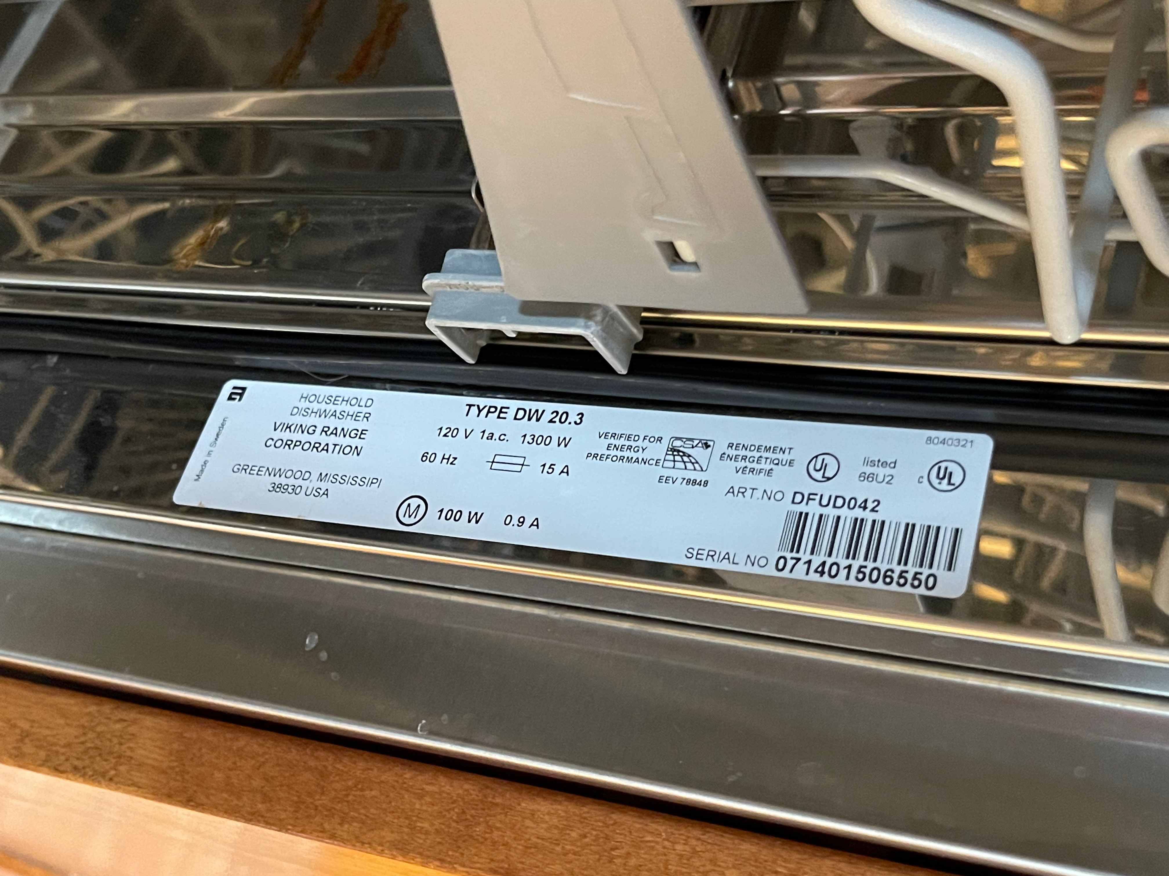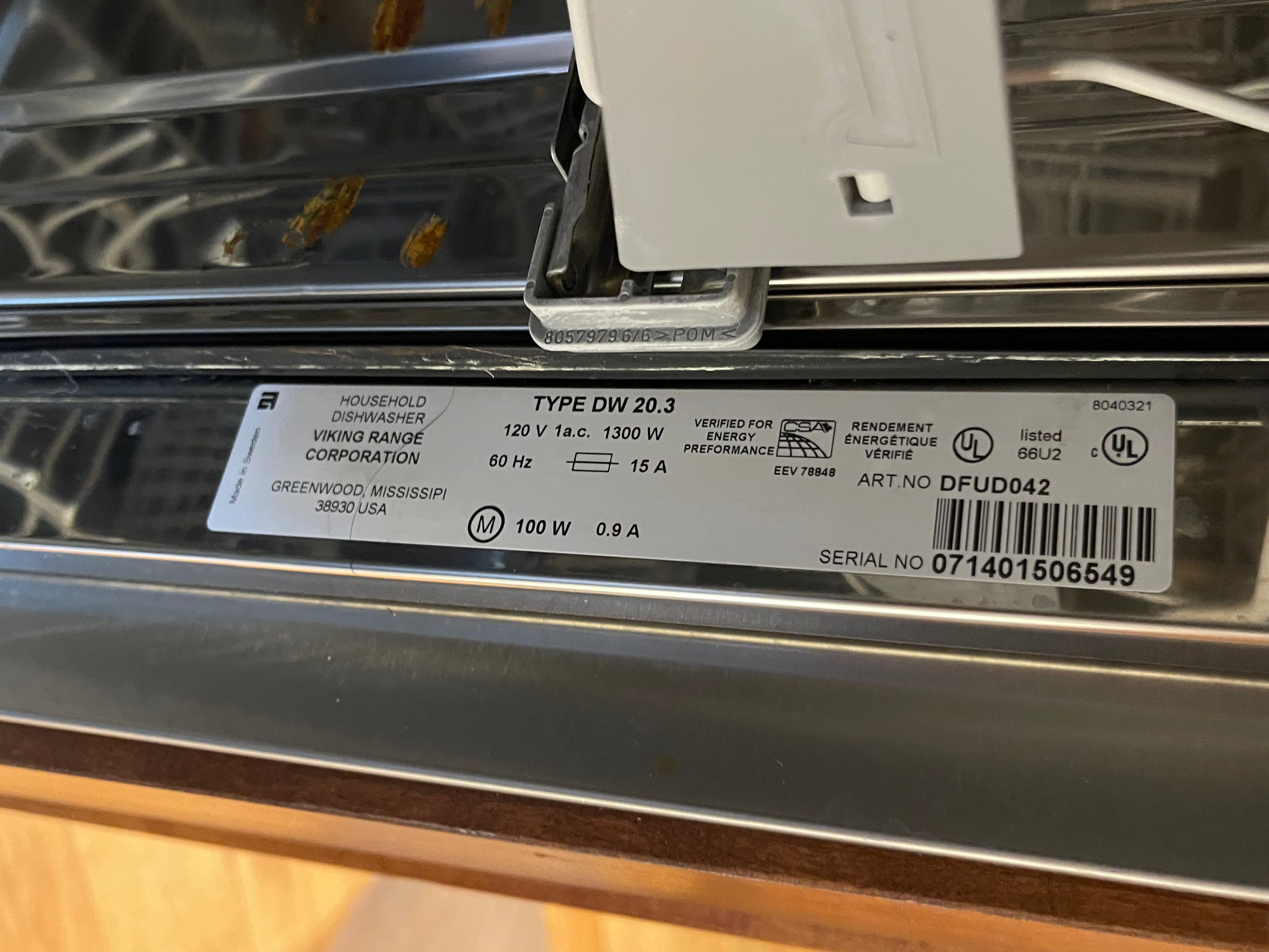 24”Viking Stainless Steel Dishwasher Model# DFUD042,Serial #071401506550 04/07, Listing price new $1,579