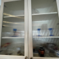 2-One door glass wall cabinets Dim.: 24“w x 42“ h cab. only/44”h w/crown/45 ½”h x12“d