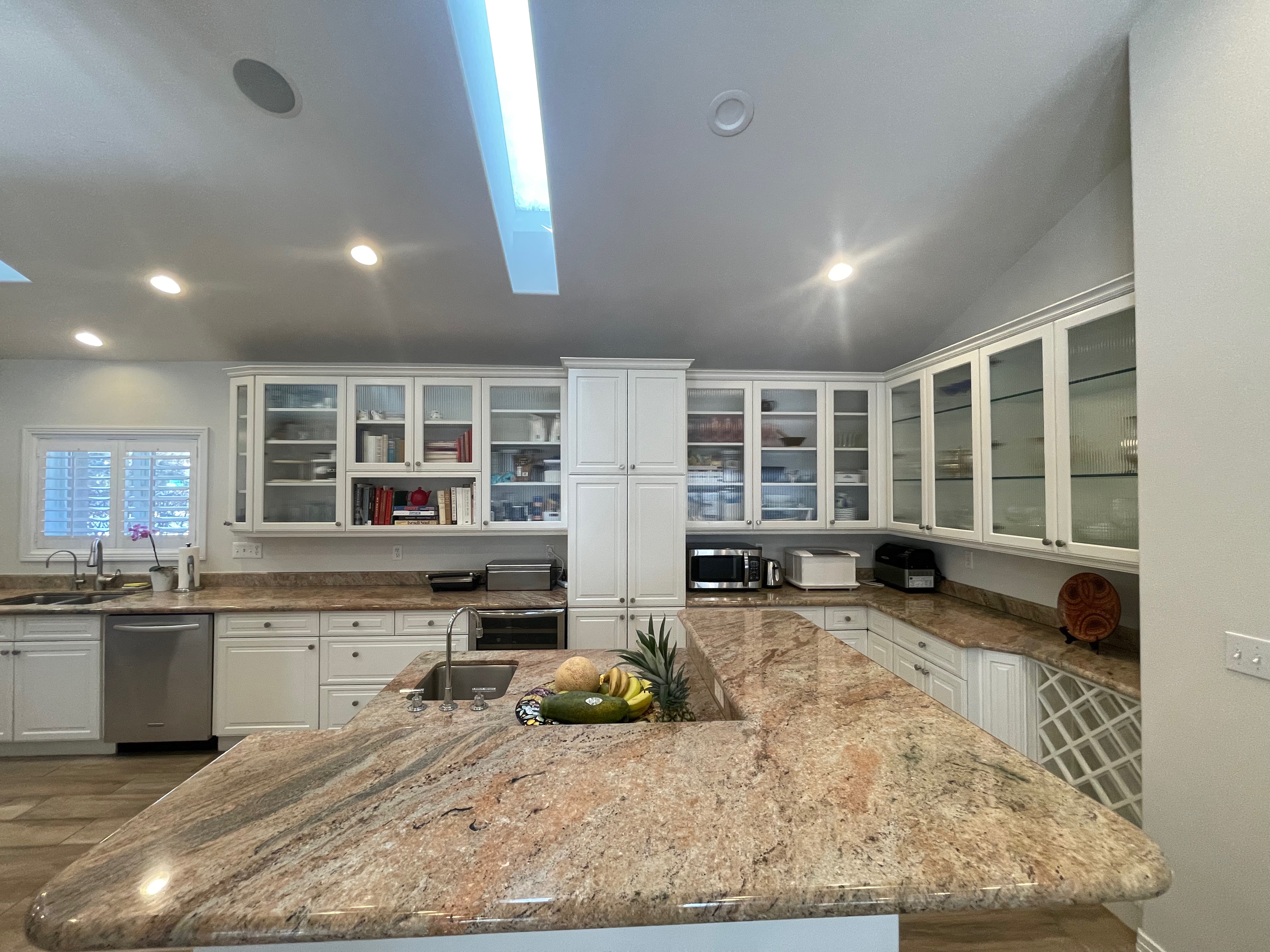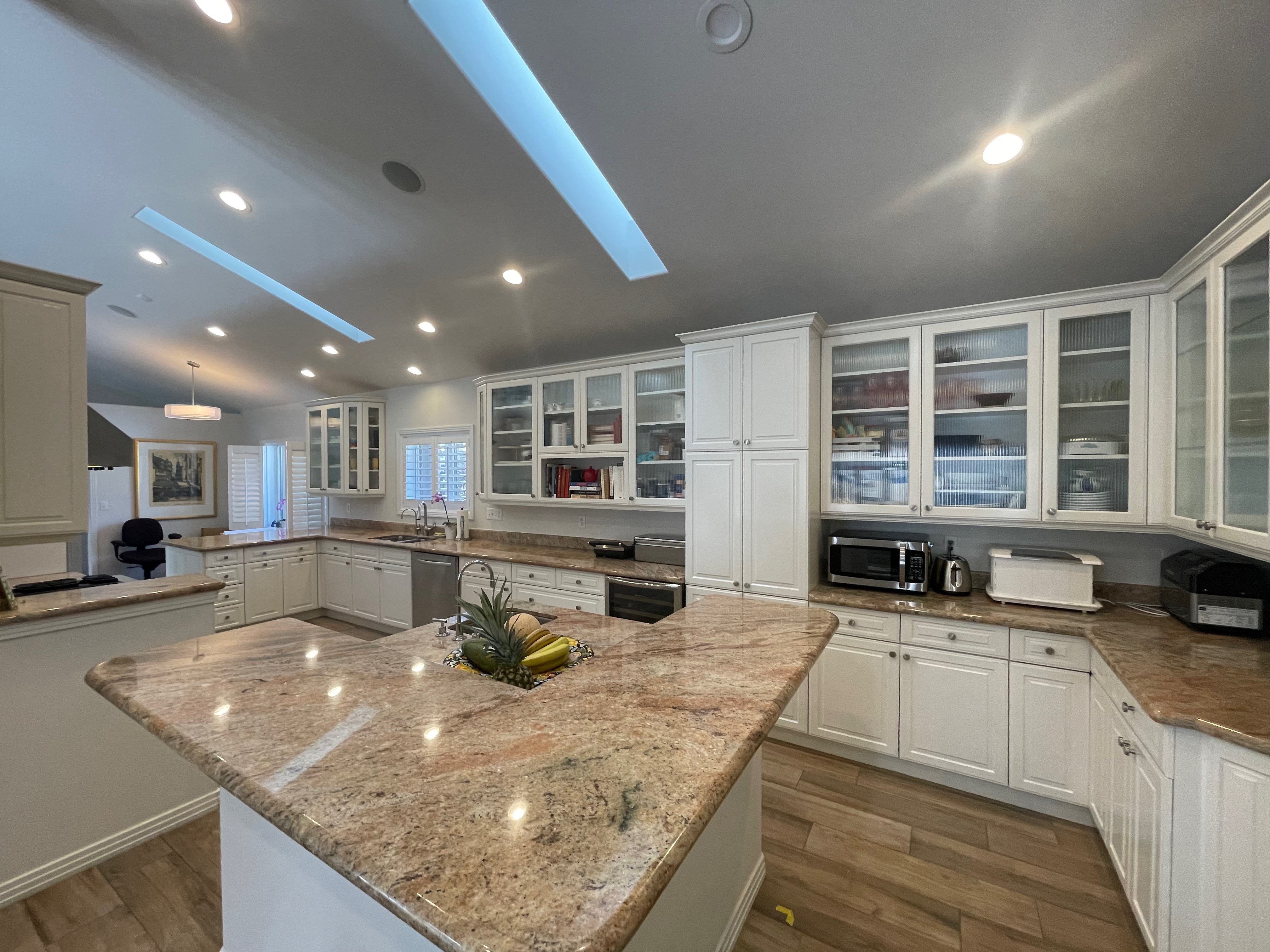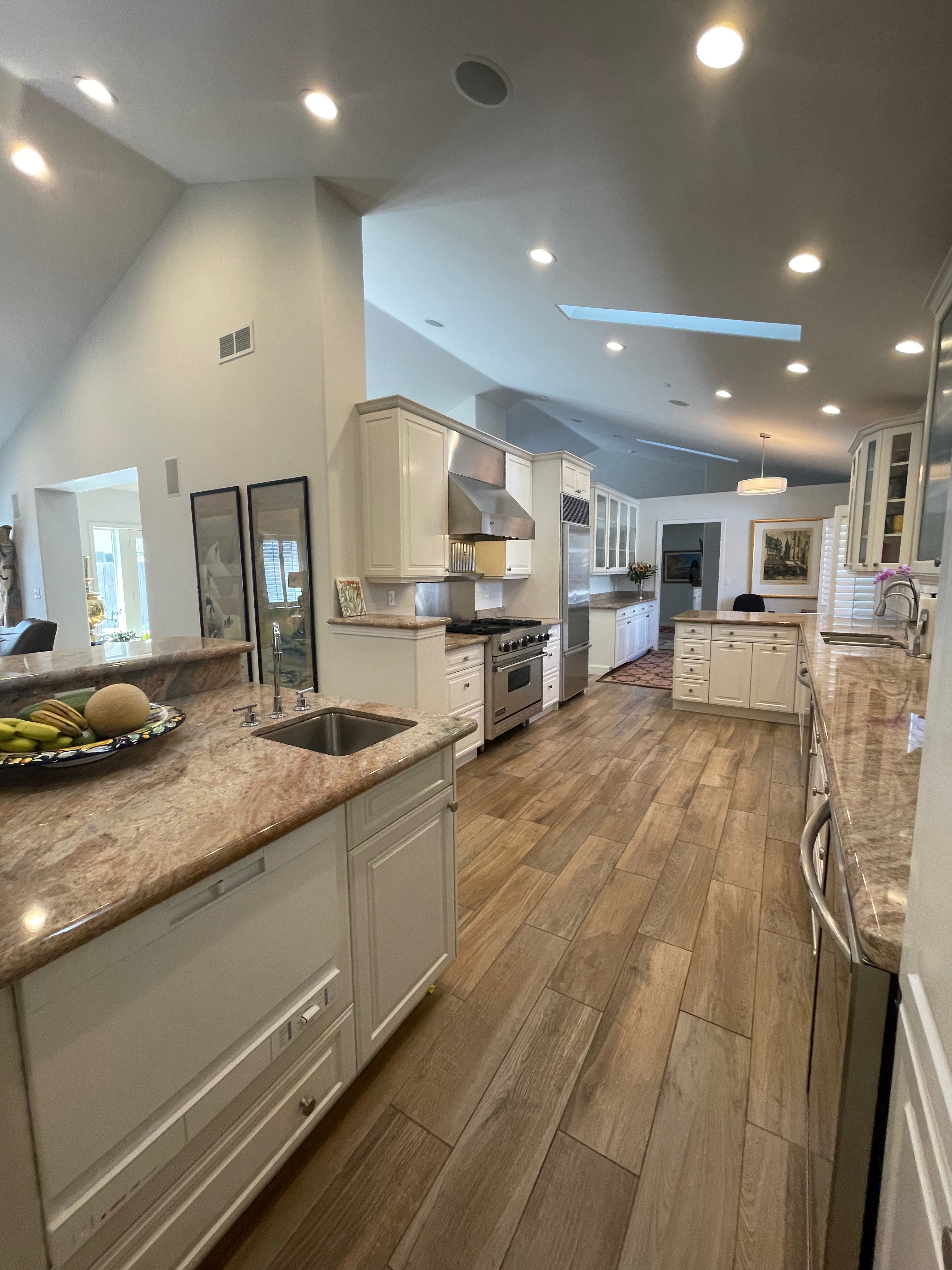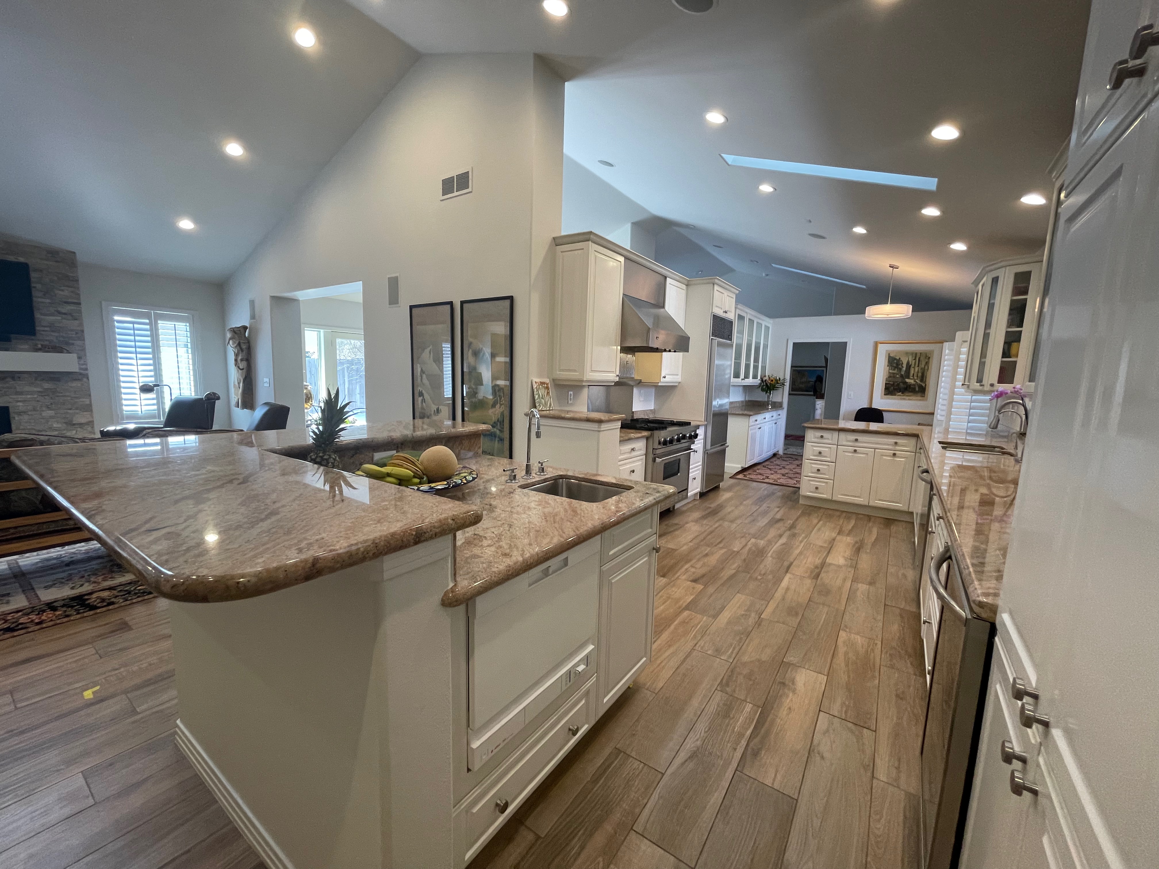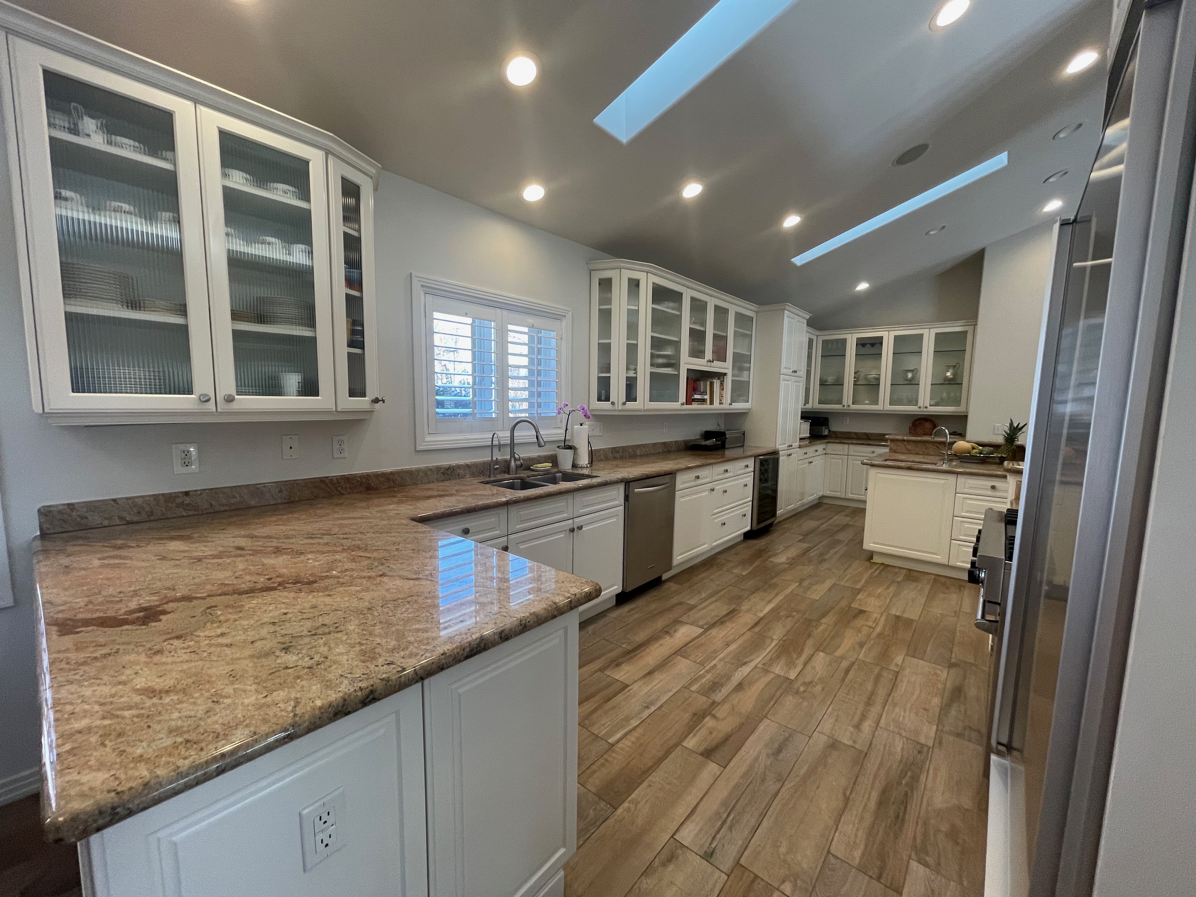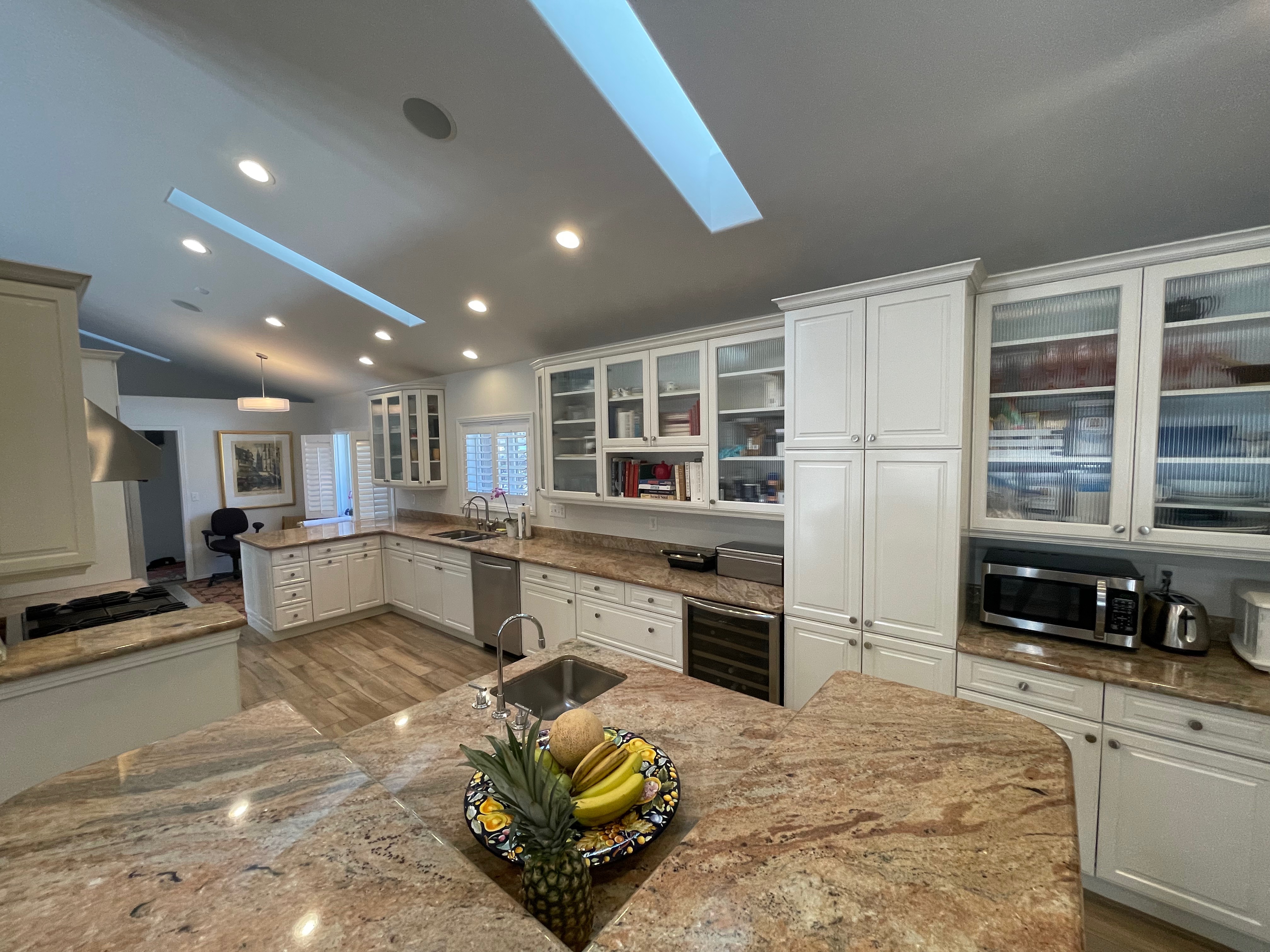 Nice! White “Crystal Cabinet Works” Kitchen Cabinets in excellent condition! This kitchen package comes with a Stainless-Steel Sub-Zero refrigerator, Viking range, Viking hood and more! Granite counter tops, sinks and faucet sets complete this kitchen set. The kitchen has been professionally removed and is ready to be picked up! The price for the package below.