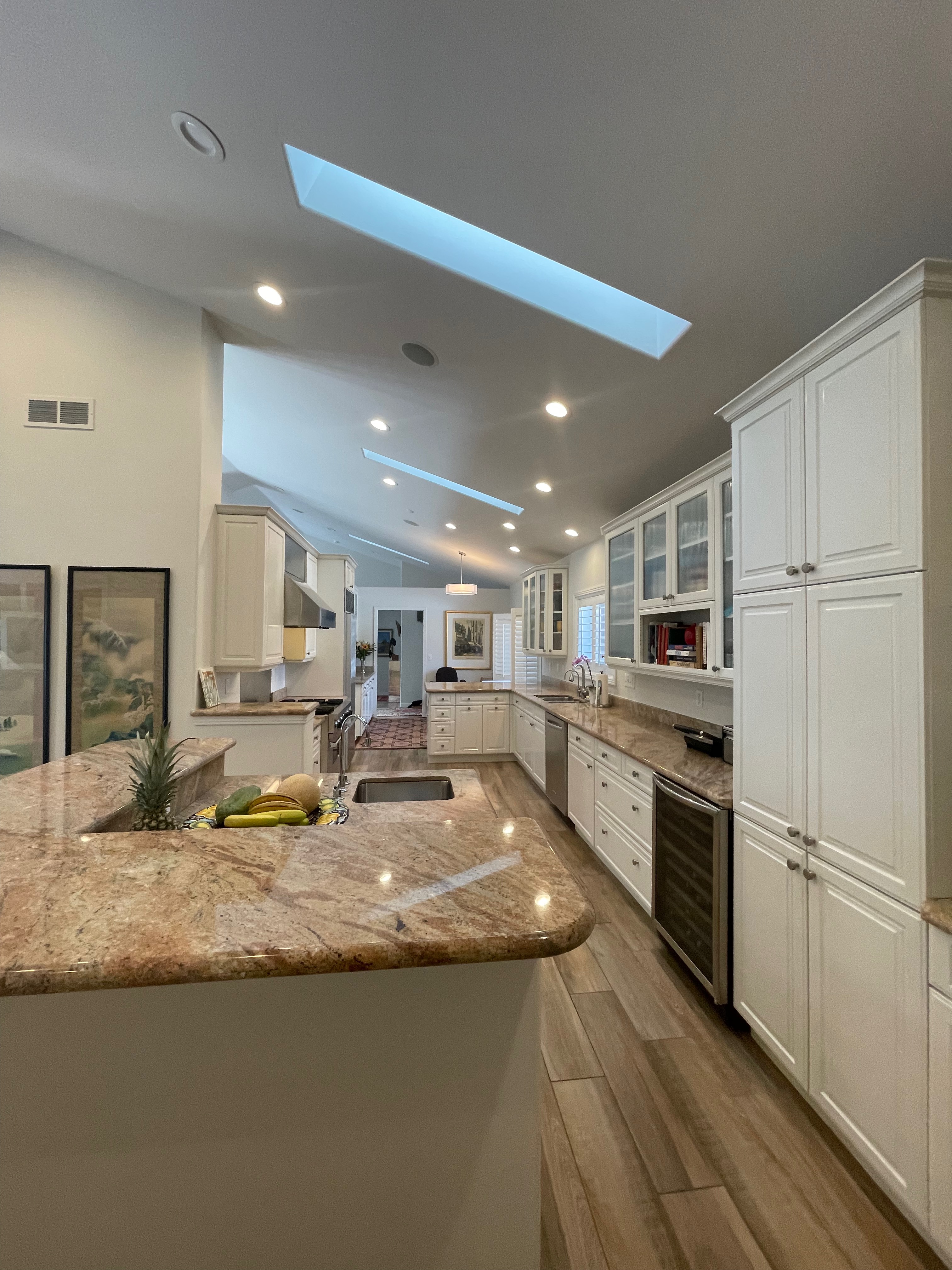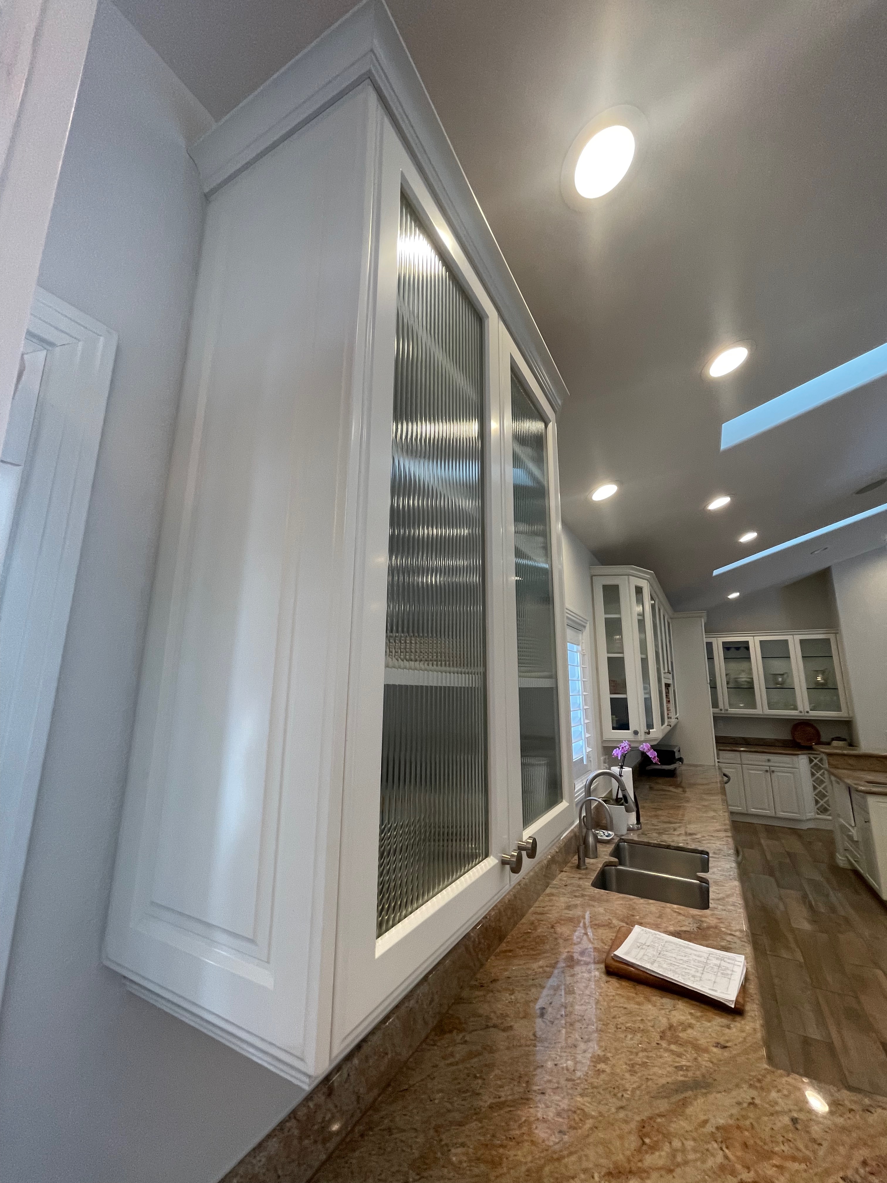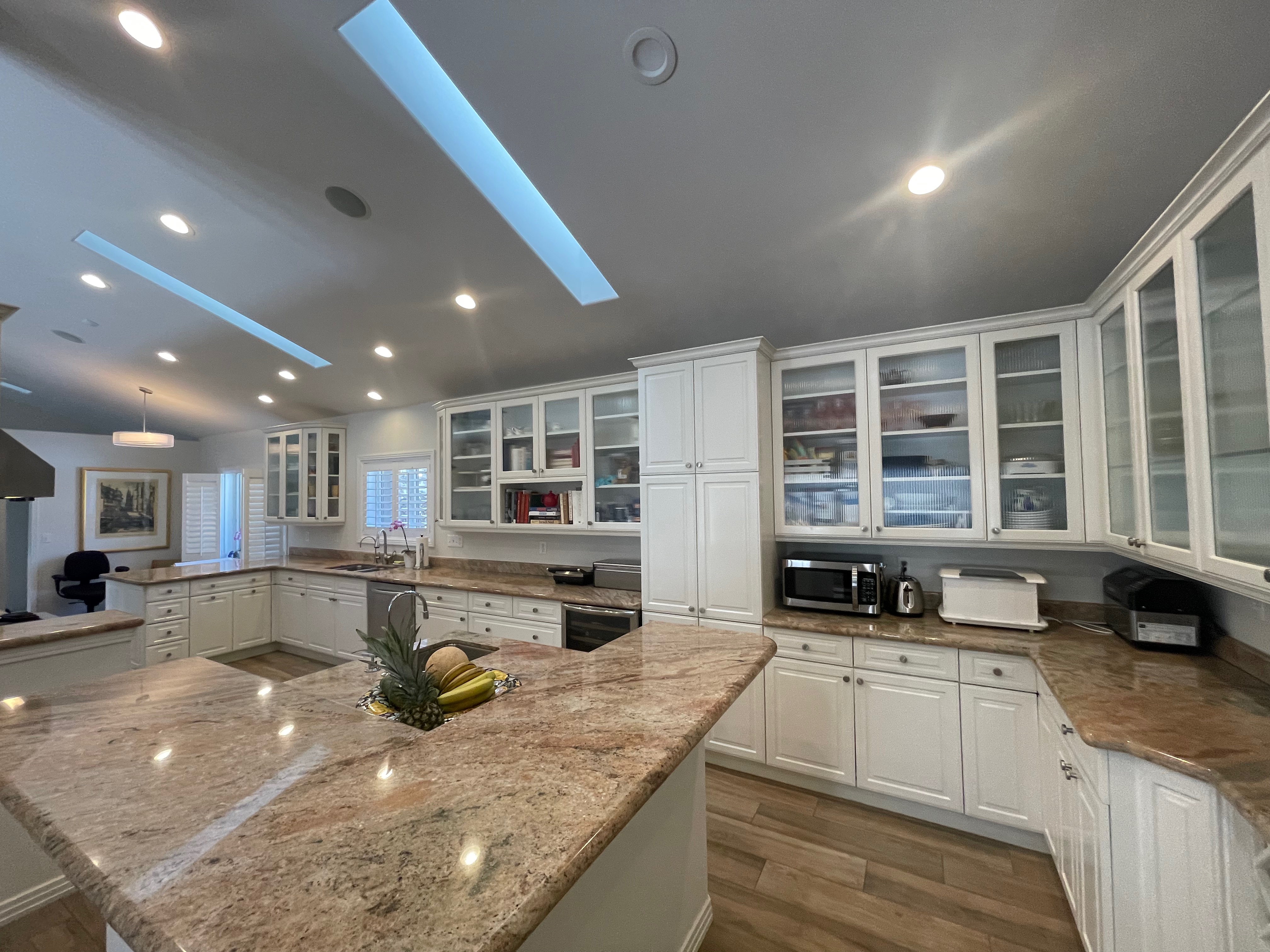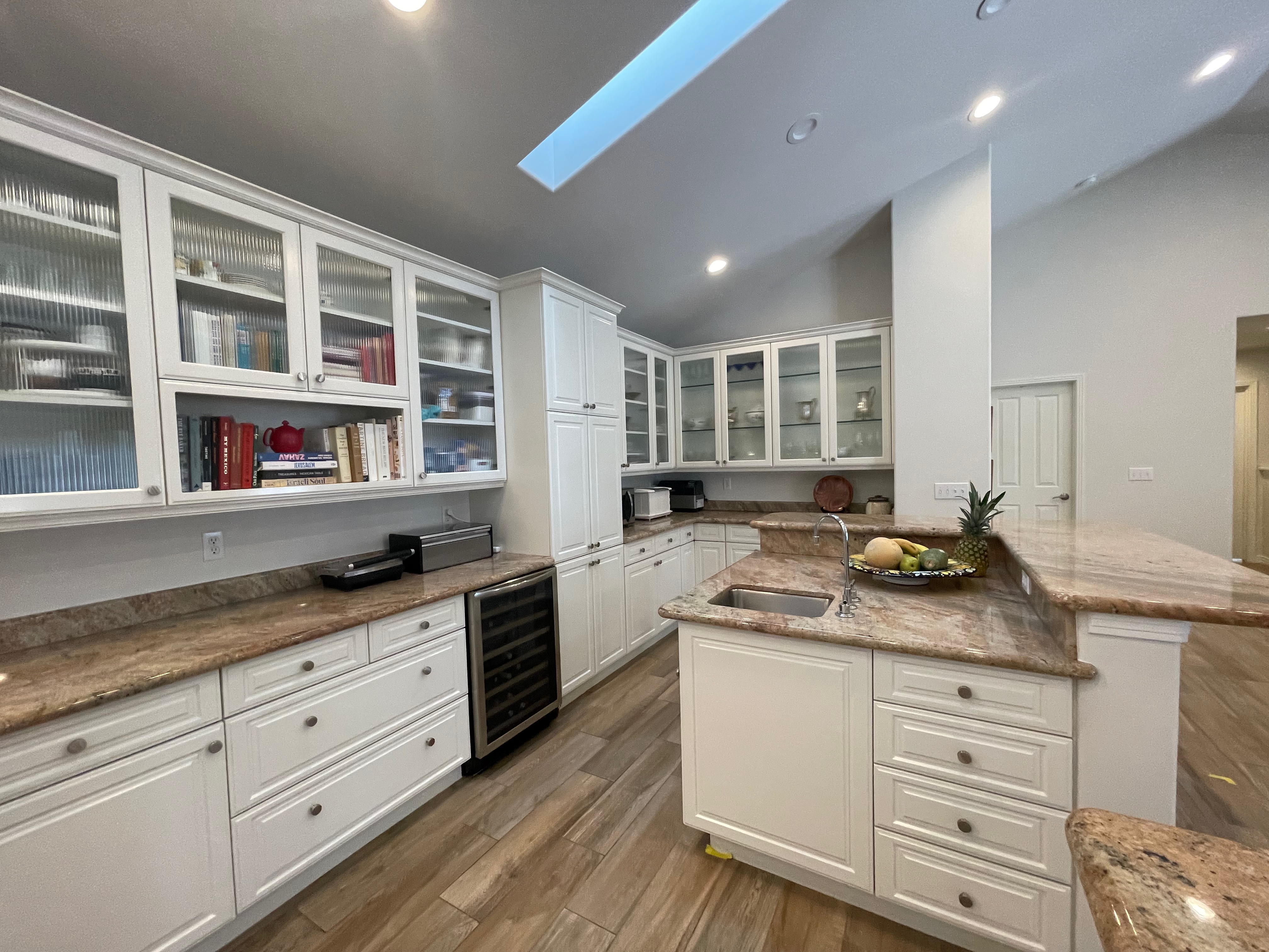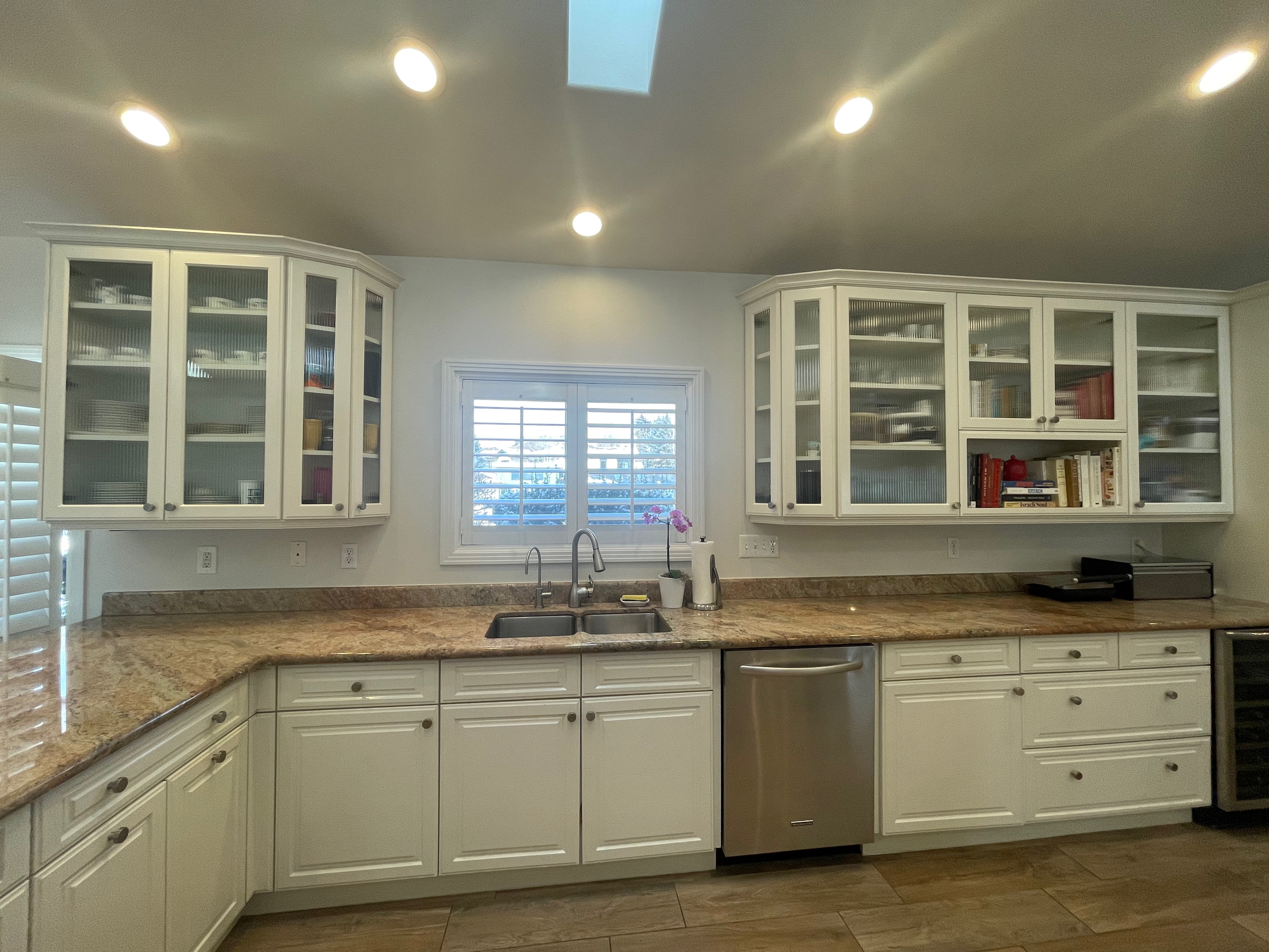 Nice! White “Crystal Cabinet Works” Kitchen Cabinets in excellent condition! This kitchen package comes with a Stainless-Steel Sub-Zero refrigerator, Viking range, Viking hood and more! Granite counter tops, sinks and faucet sets complete this kitchen set. The kitchen has been professionally removed and is ready to be picked up! The price for the package below.