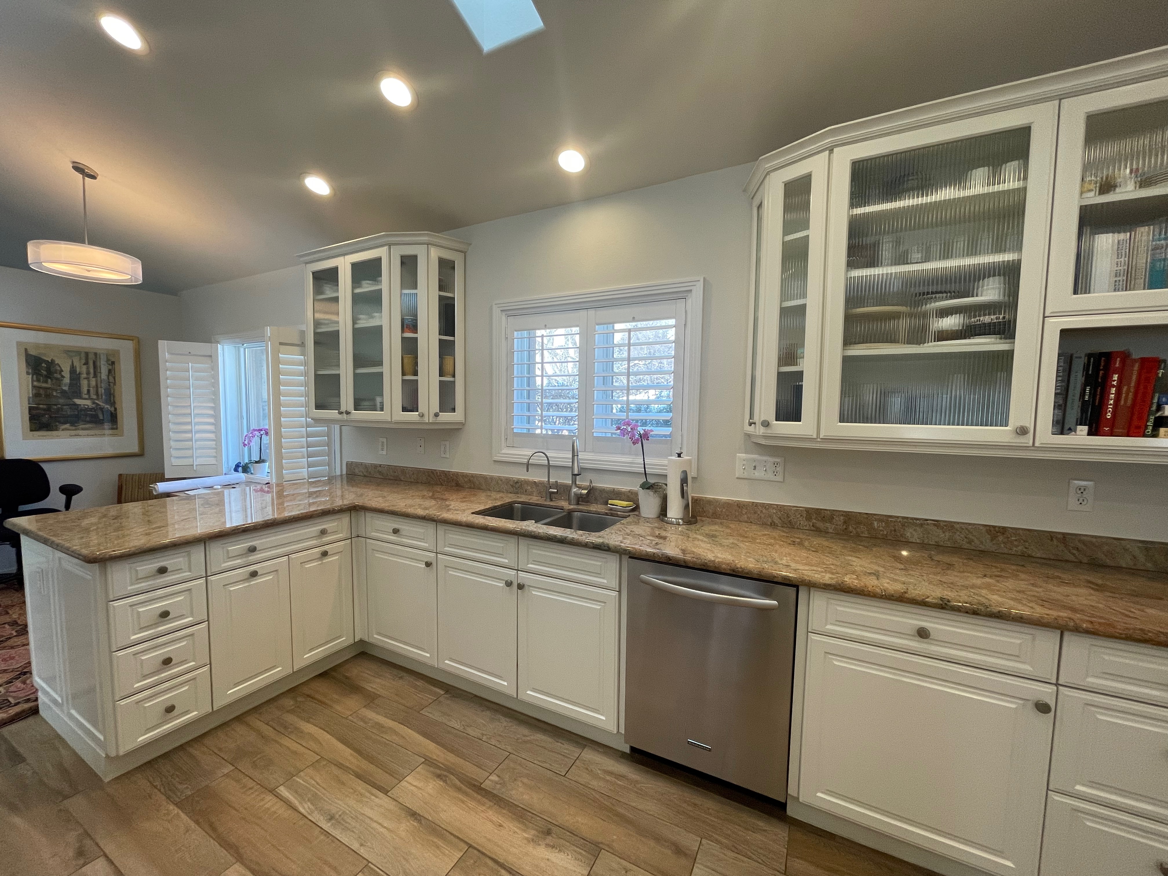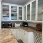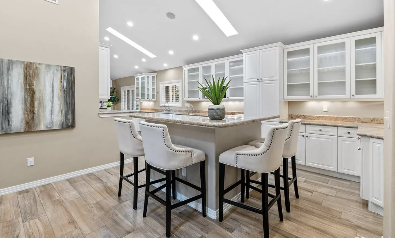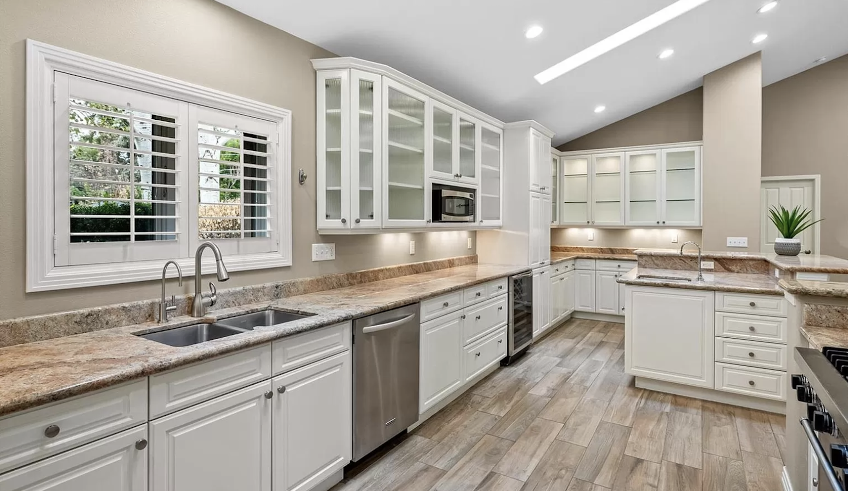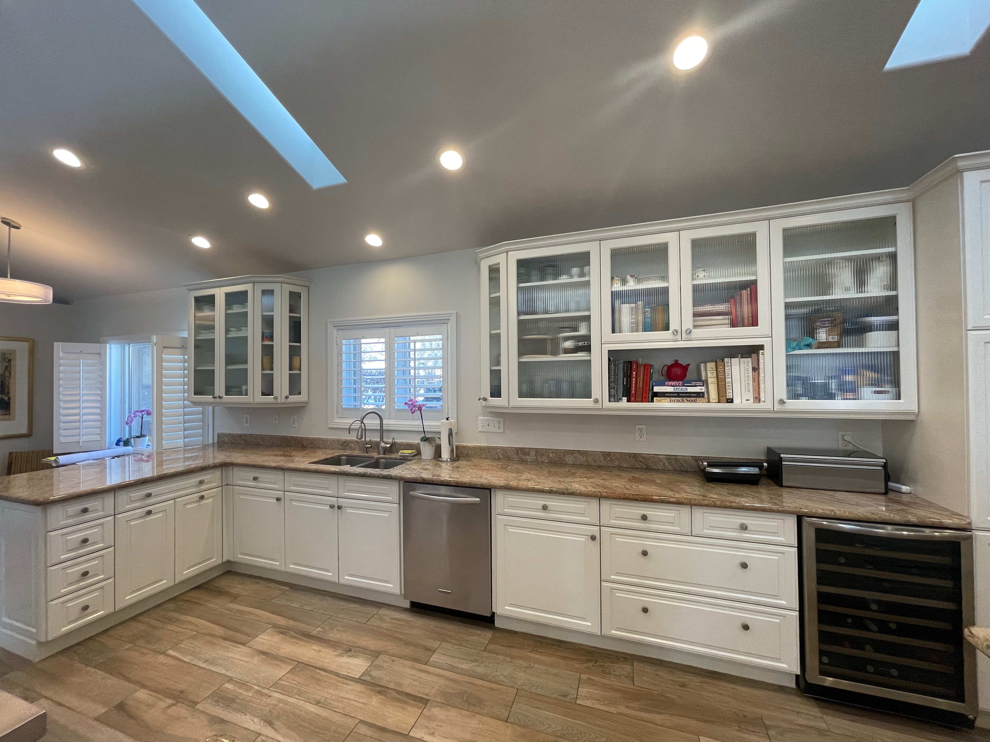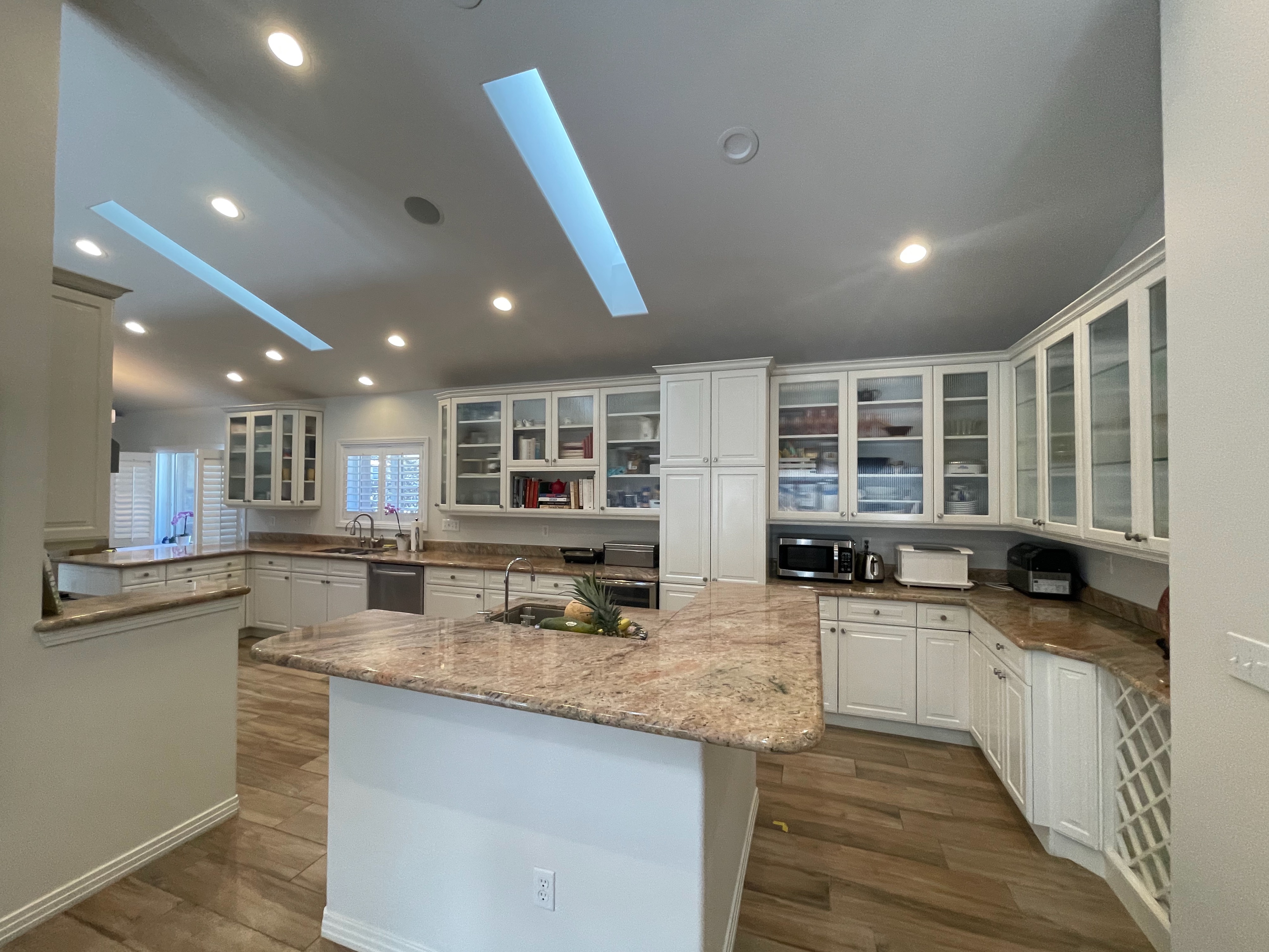 Nice! White “Crystal Cabinet Works” Kitchen Cabinets in excellent condition! This kitchen package comes with a Stainless-Steel Sub-Zero refrigerator, Viking range, Viking hood and more! Granite counter tops, sinks and faucet sets complete this kitchen set. The kitchen has been professionally removed and is ready to be picked up! The price for the package below.