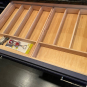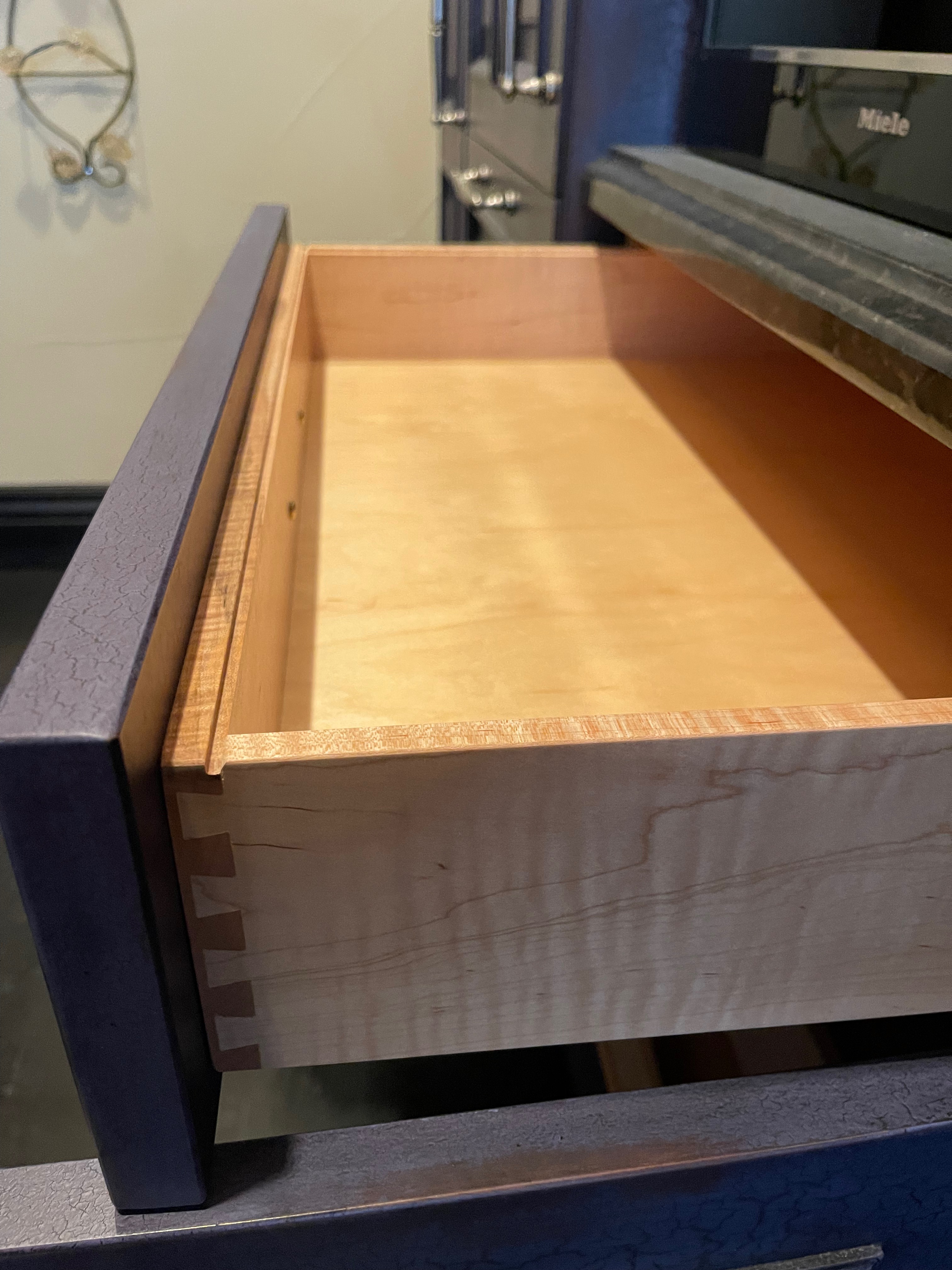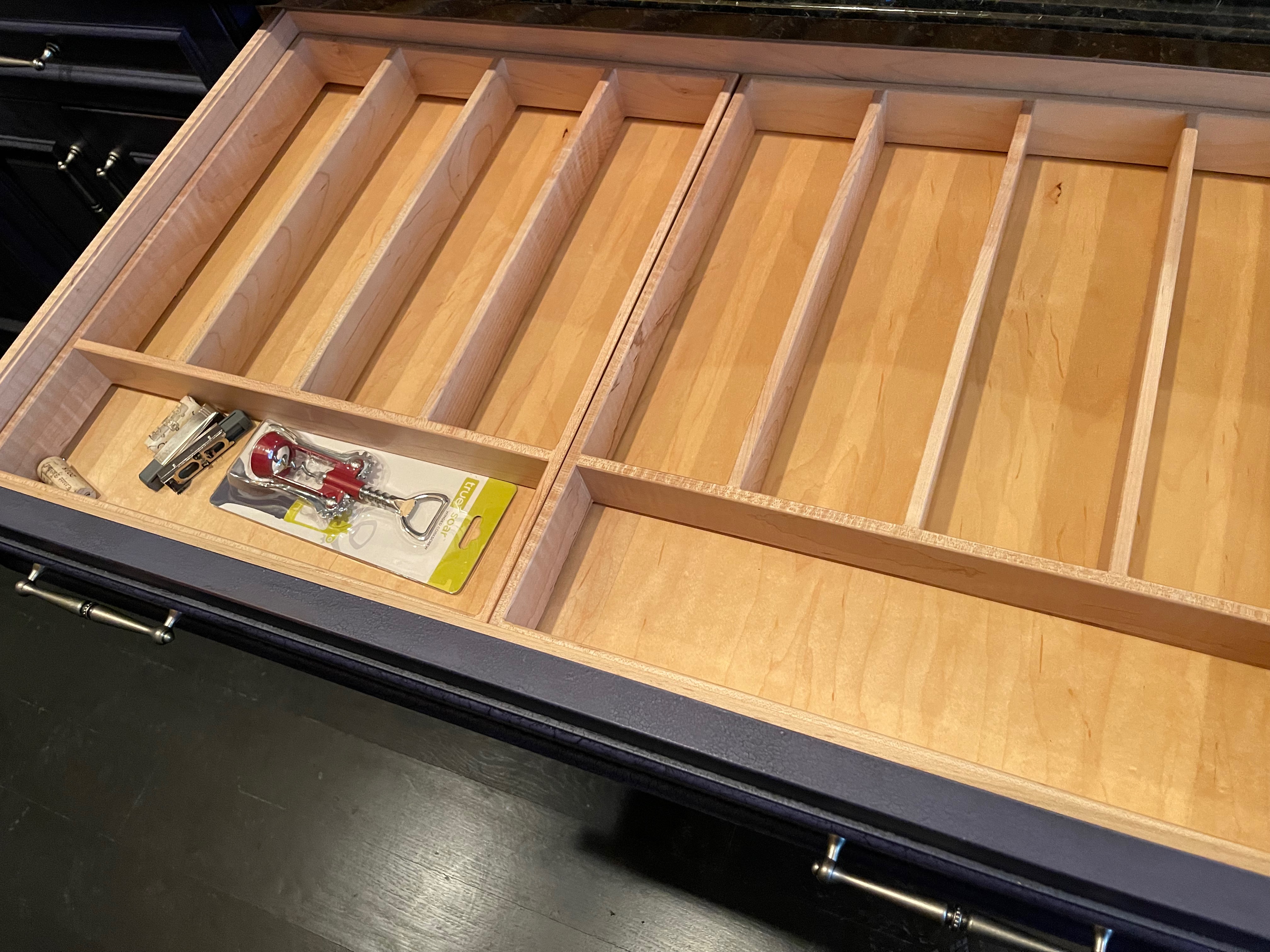 1-Three drawer base cabinet, top drawer with wood utensil divider Dim.: 37 ½”w x 36”h x 24”d