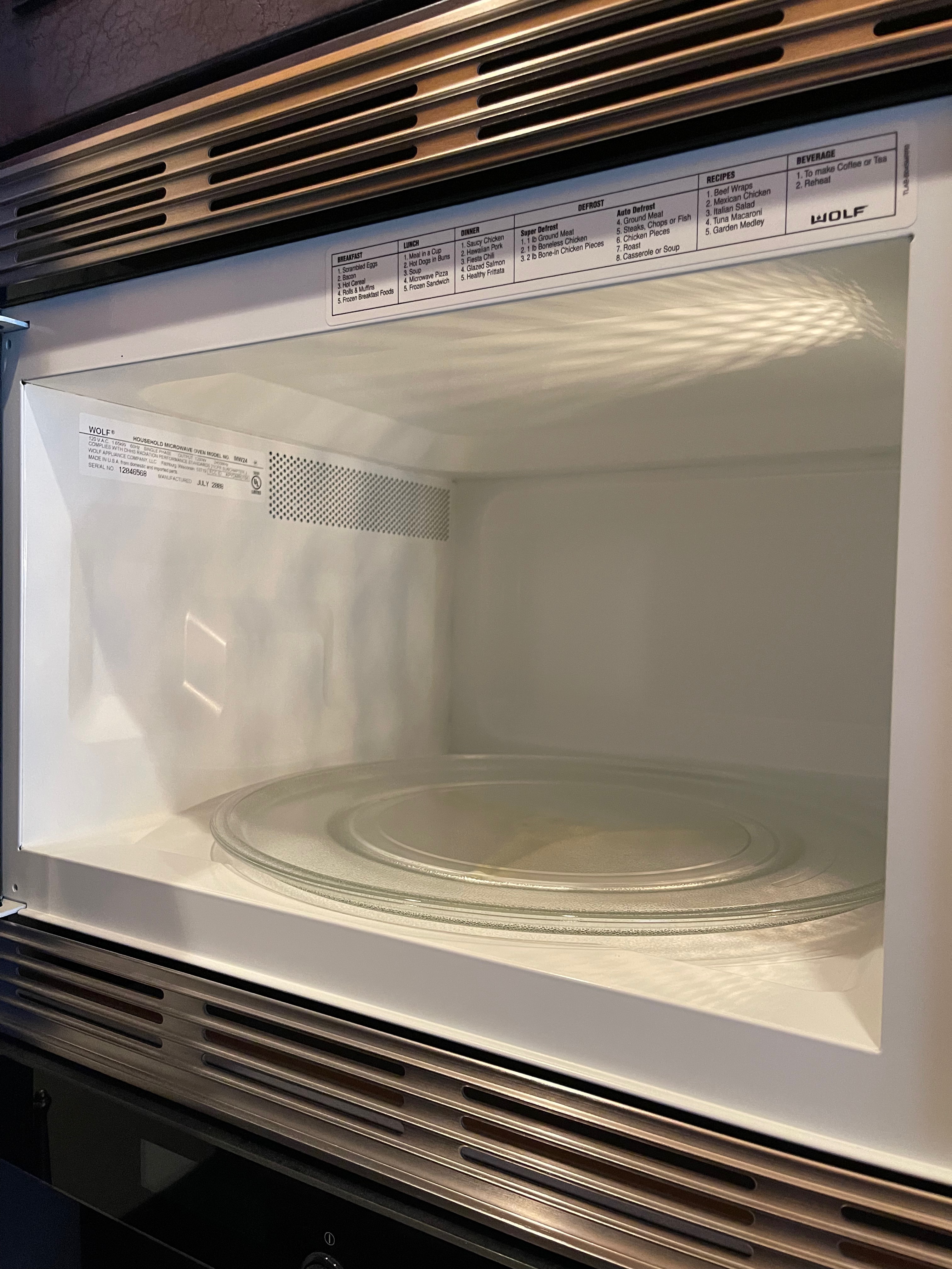 24” Wolf Stainless steel microwave w/ trim kit Model #MW24, Serial #12046568, 07/08 New $1,155