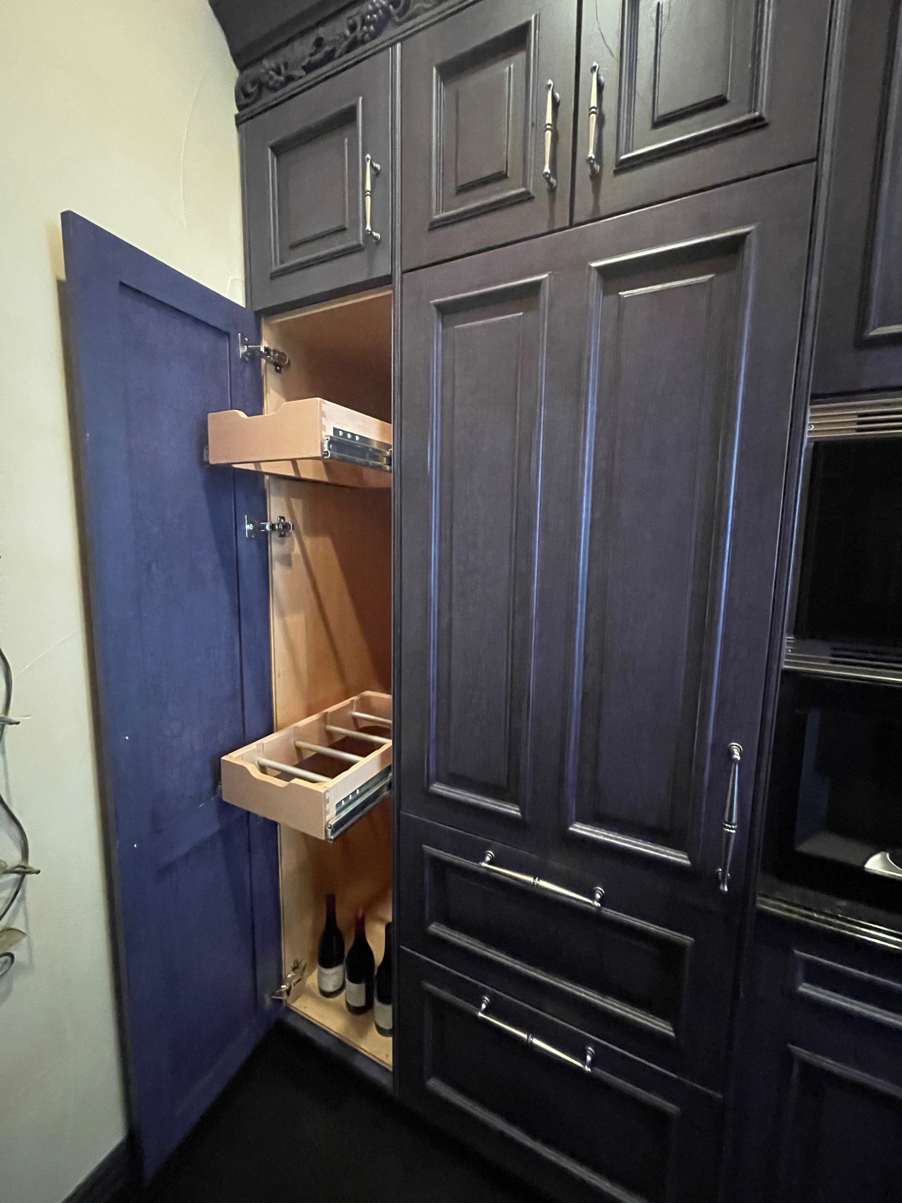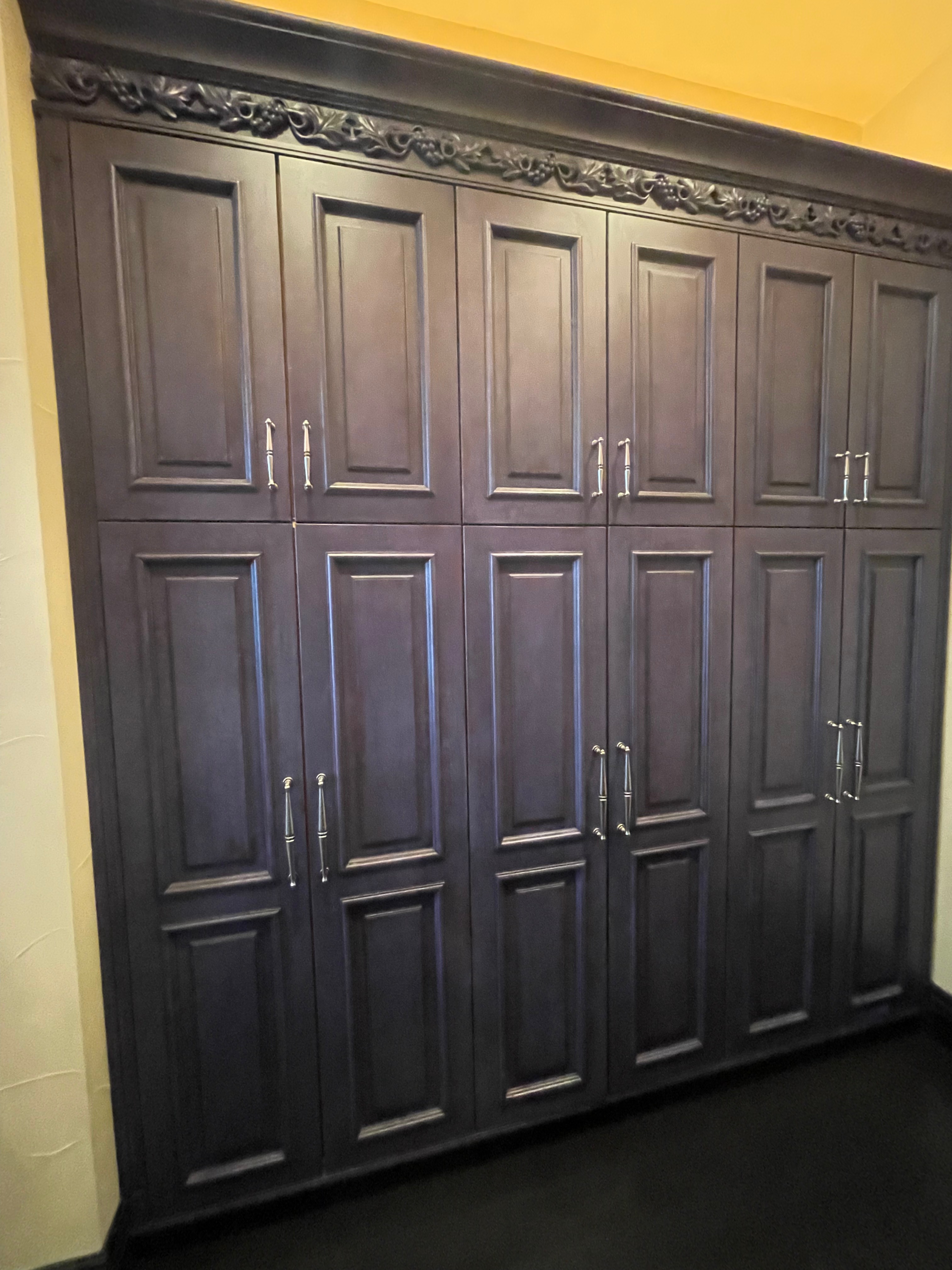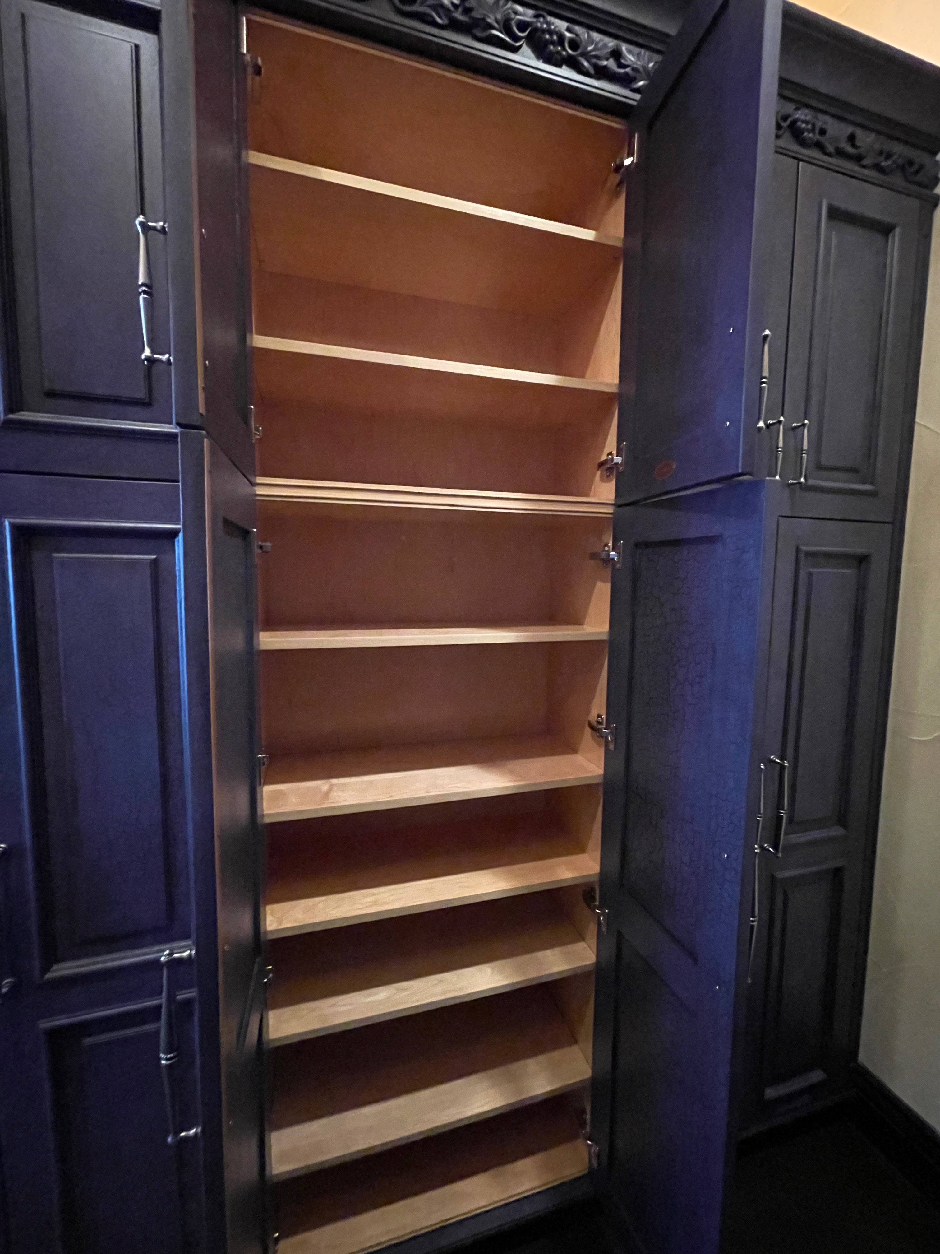 3-Four door double tall pantry cabinets Dim.: 30”w x 96 ¼” Cab. only/ 105 1/8”h x 12”d