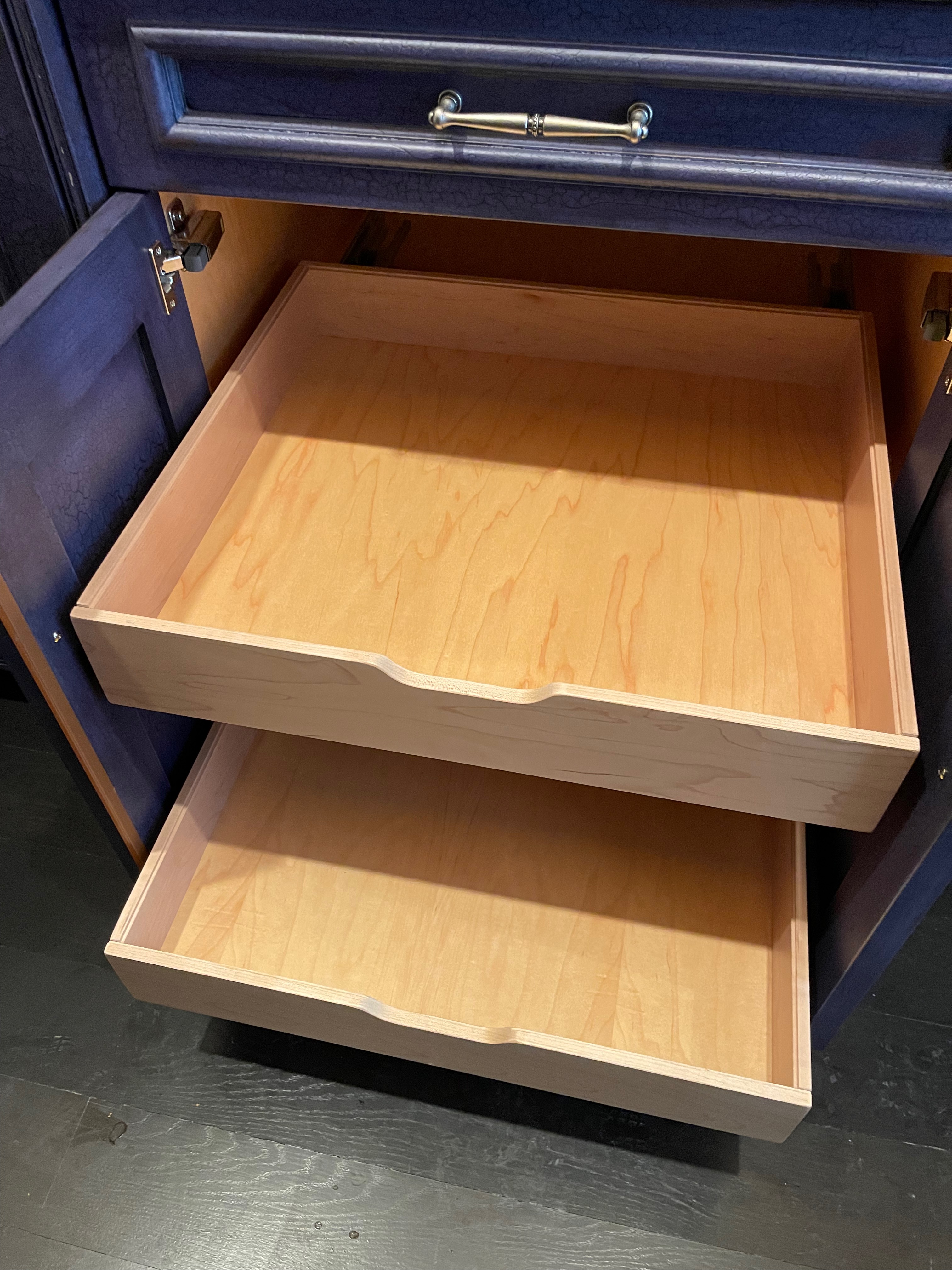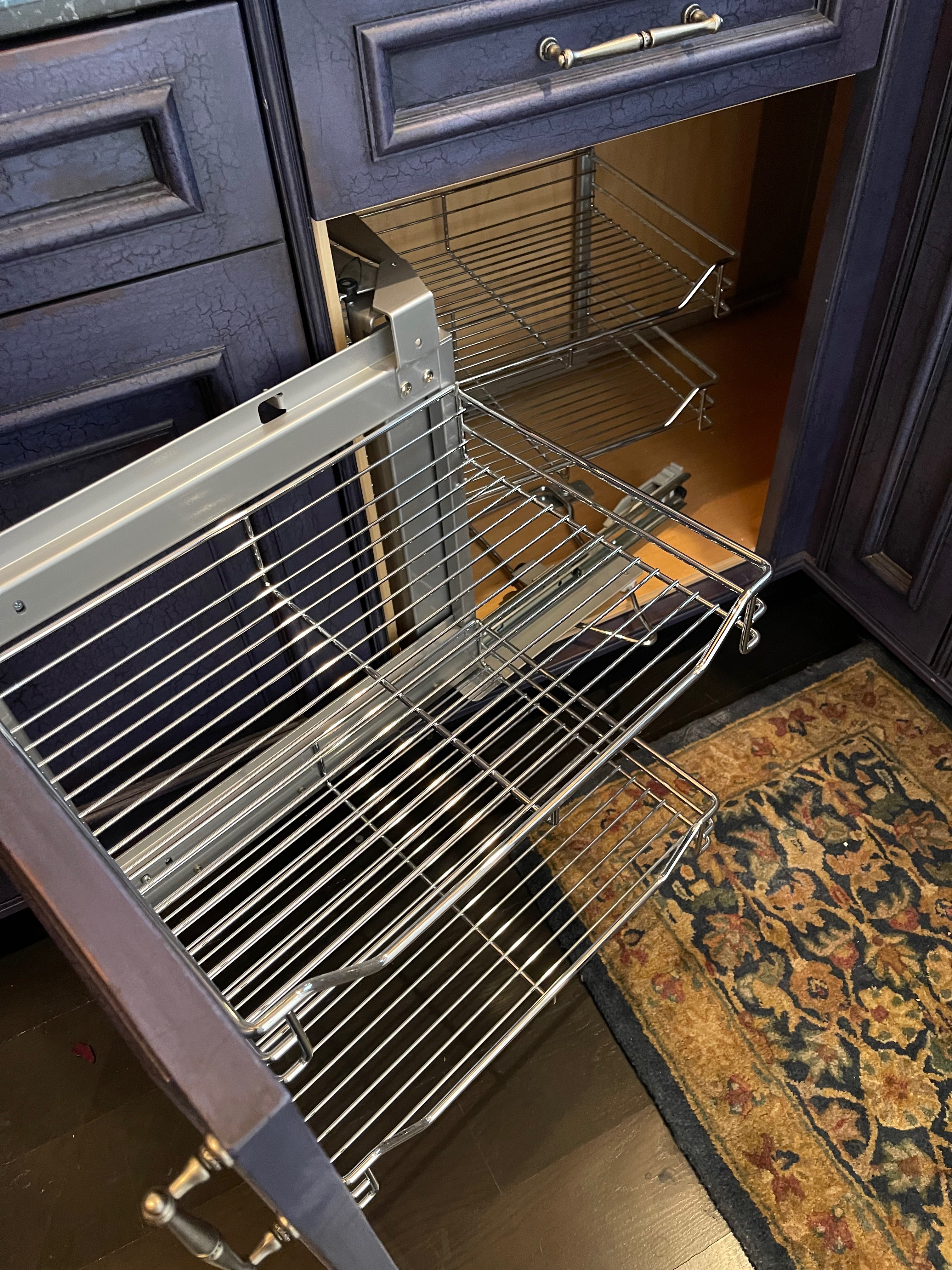 1-One drawer, one door Miracle corner (Blind corner) w/ pull out shelving Dim. 48”w x 36”h x 24”d