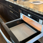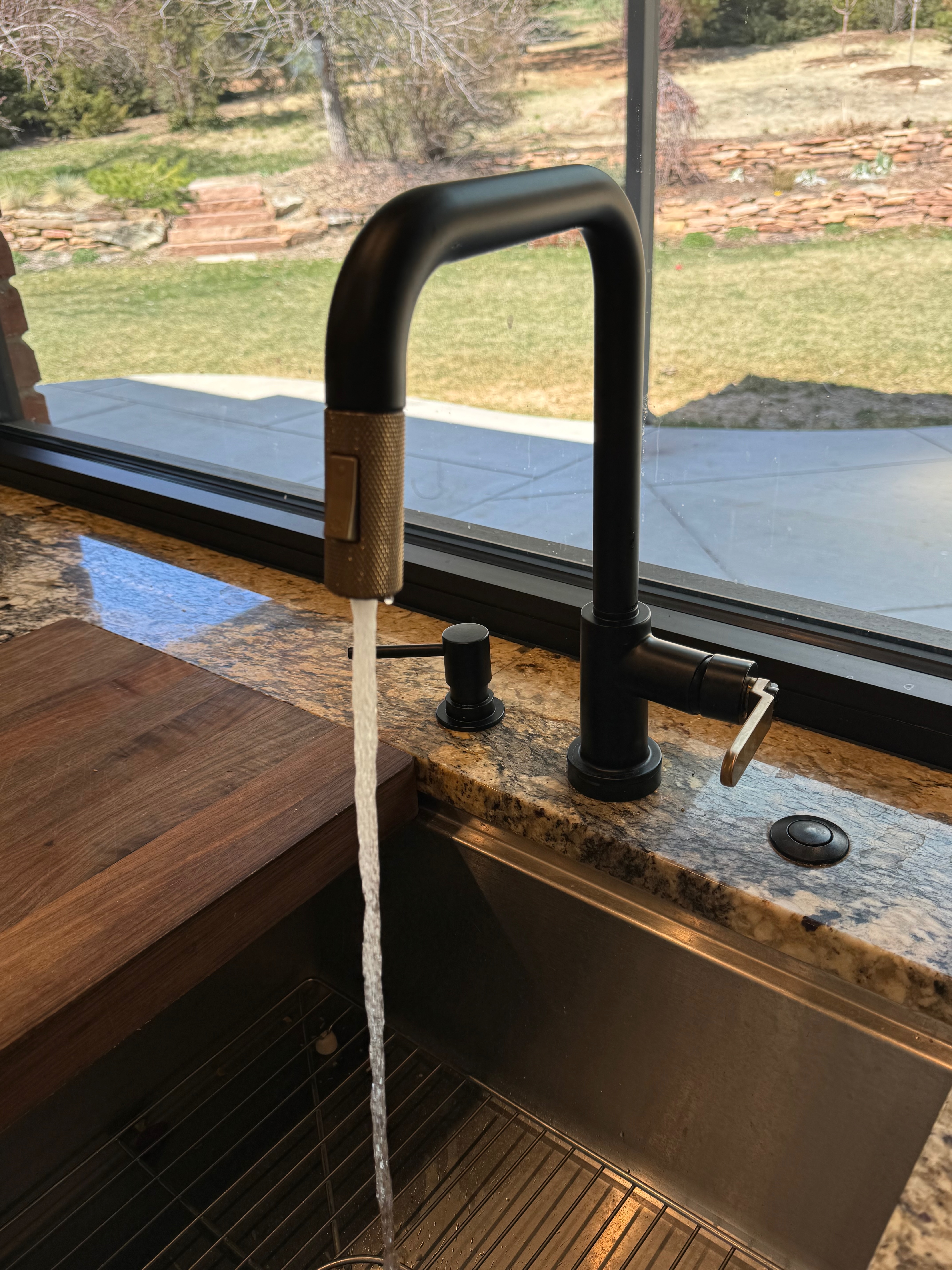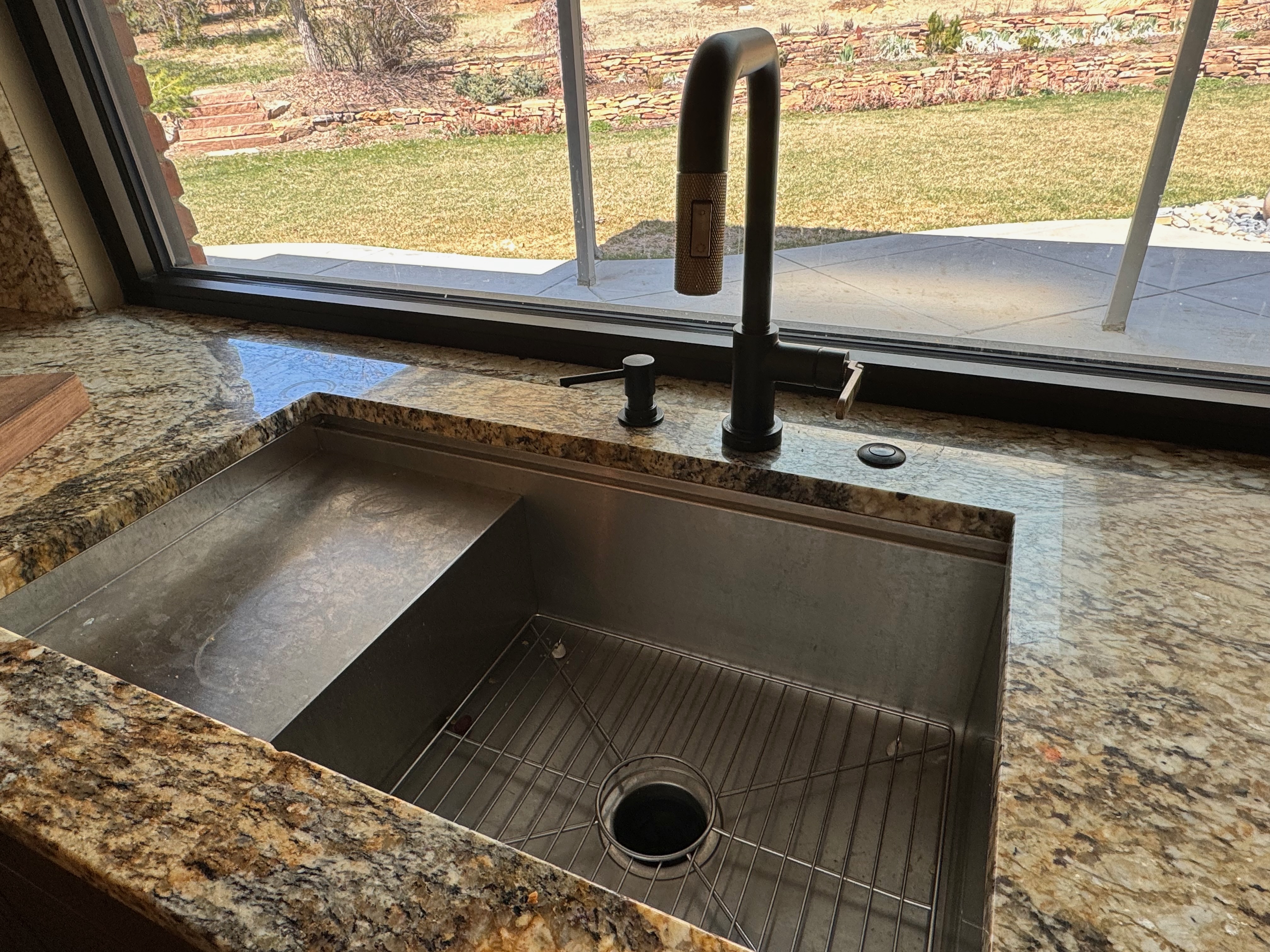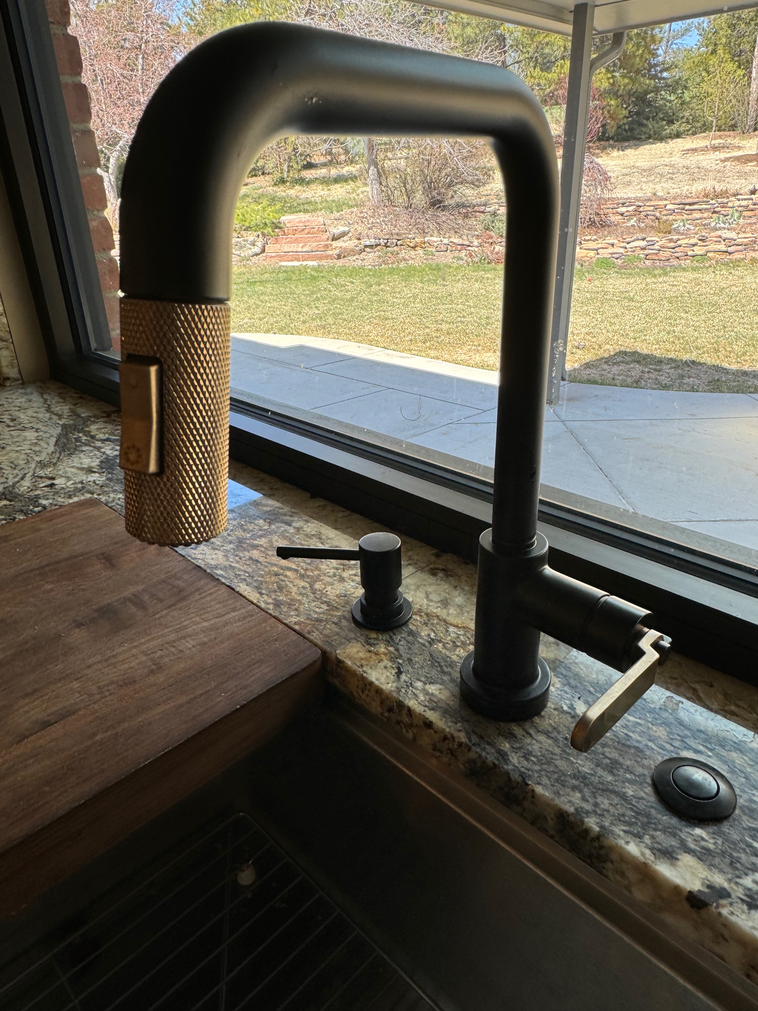 Nice! Kitchen package with wood cabinets made by local custom cabinet company Kamtz. The island has contrasting black cabinets. This kitchen set comes with a Stainless Steel Thermador appliance package and gorgeous granite counter tops. A very nice Kohler Stages workstation sink with a cutting board. The faucet set is a Brizo Litze Single Handle Arc Spout Pull Down Kitchen Faucet with Industrial Handle with a Limited Lifetime Warranty. The Kitchen package is available to be uninstalled by a qualified buyer anytime. There are also licensed contractors available to hire to remove the kitchen. Price for the package below.