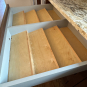 1-Three drawer base cabinet, knife drawer in top drawer Dim.: 36” w x 34 ½”/36”h x 24” d