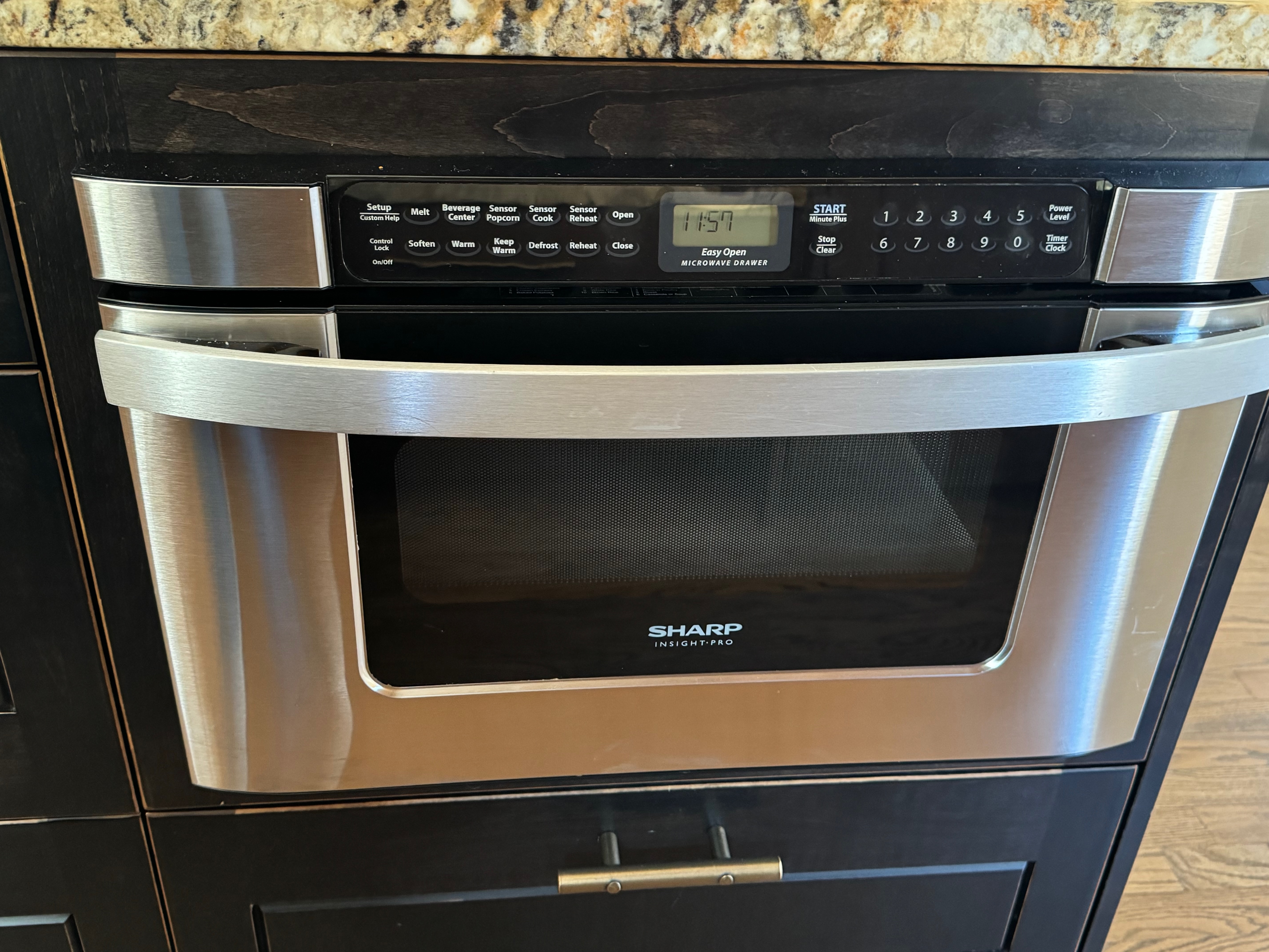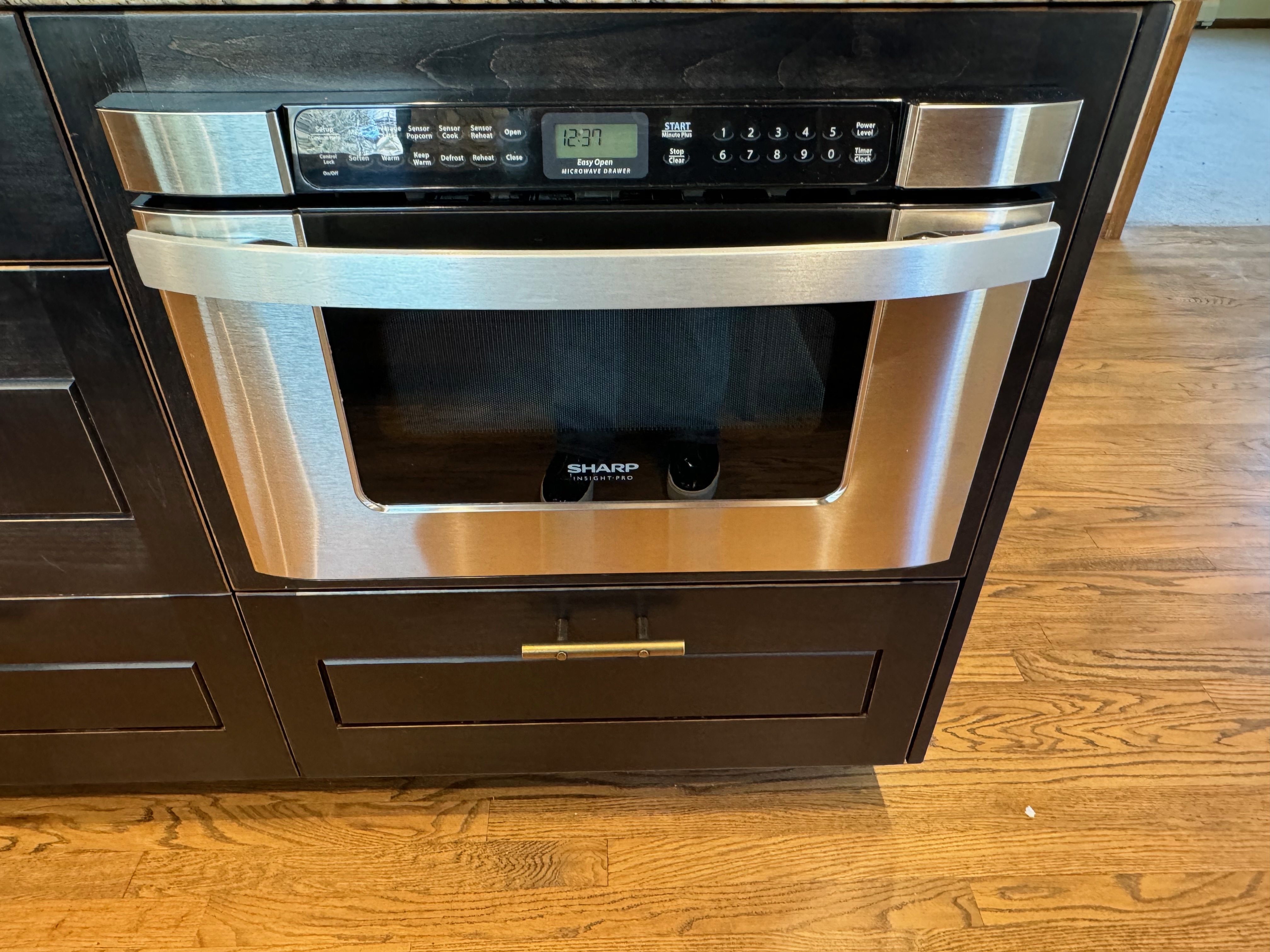 30” Sharp microwave drawer, Model #KB6524PS, Serial #232234 07/24 Listing price new $1,099