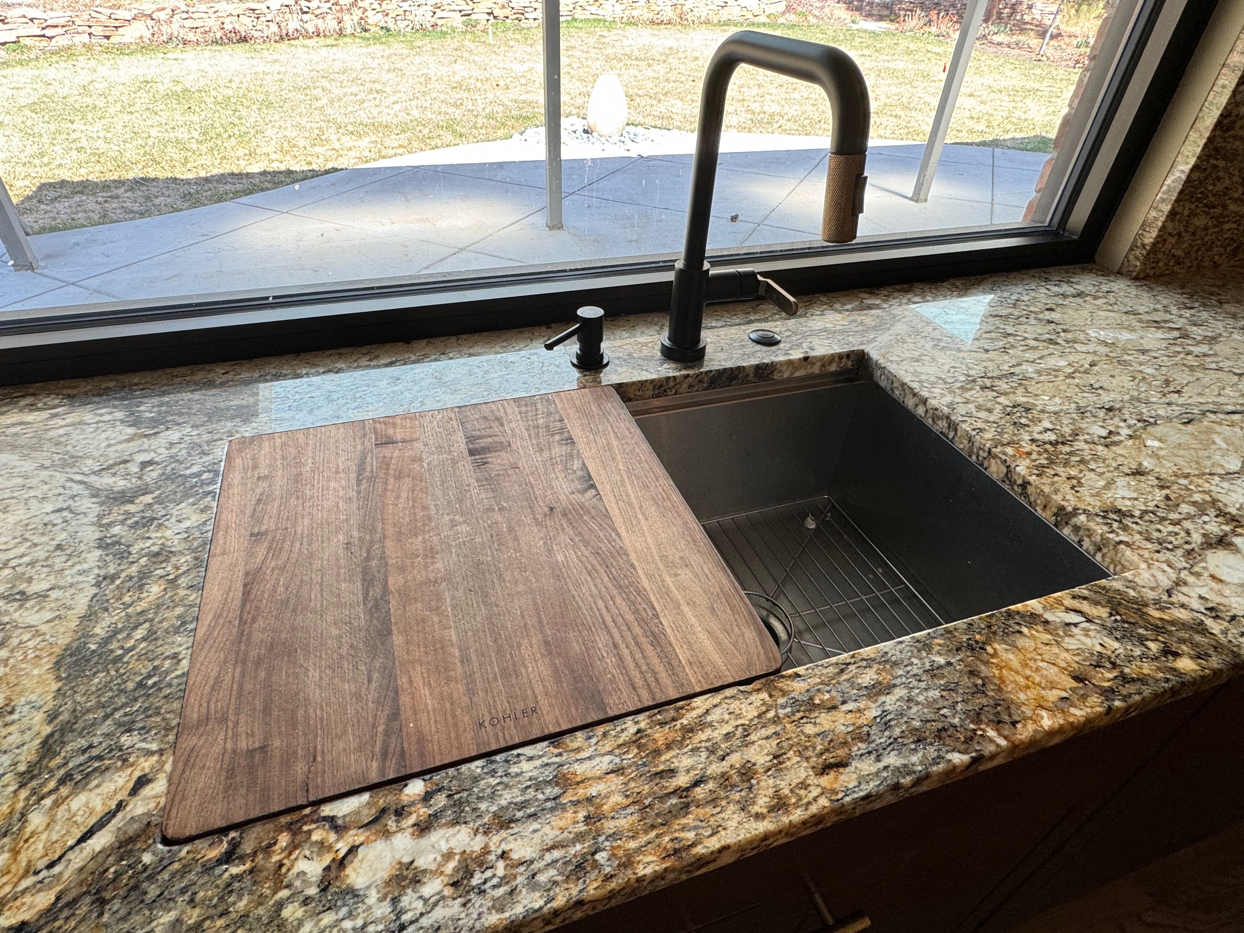 1-Two door sink base Dim.: 36” w x 34 ½”/36”h x 24” d w/ Kohler sink Stages 33" Single Basin Under-Mount 16-Gauge Stainless Steel Workstation Kitchen Sink with SilentShield - Includes Cutting Board, K-3760, Listing price new $2,177