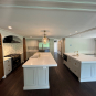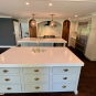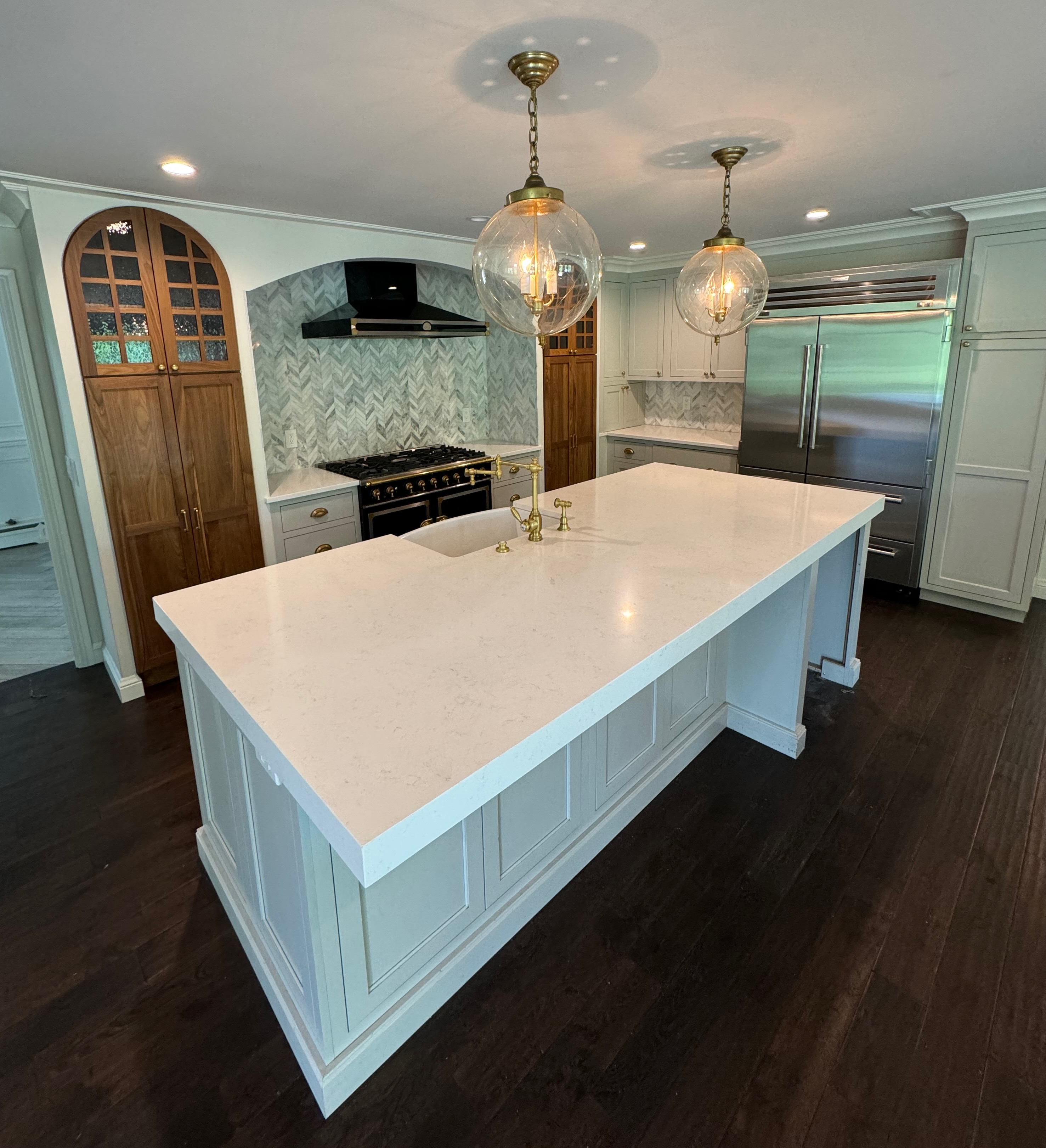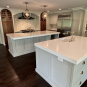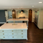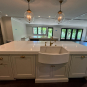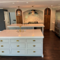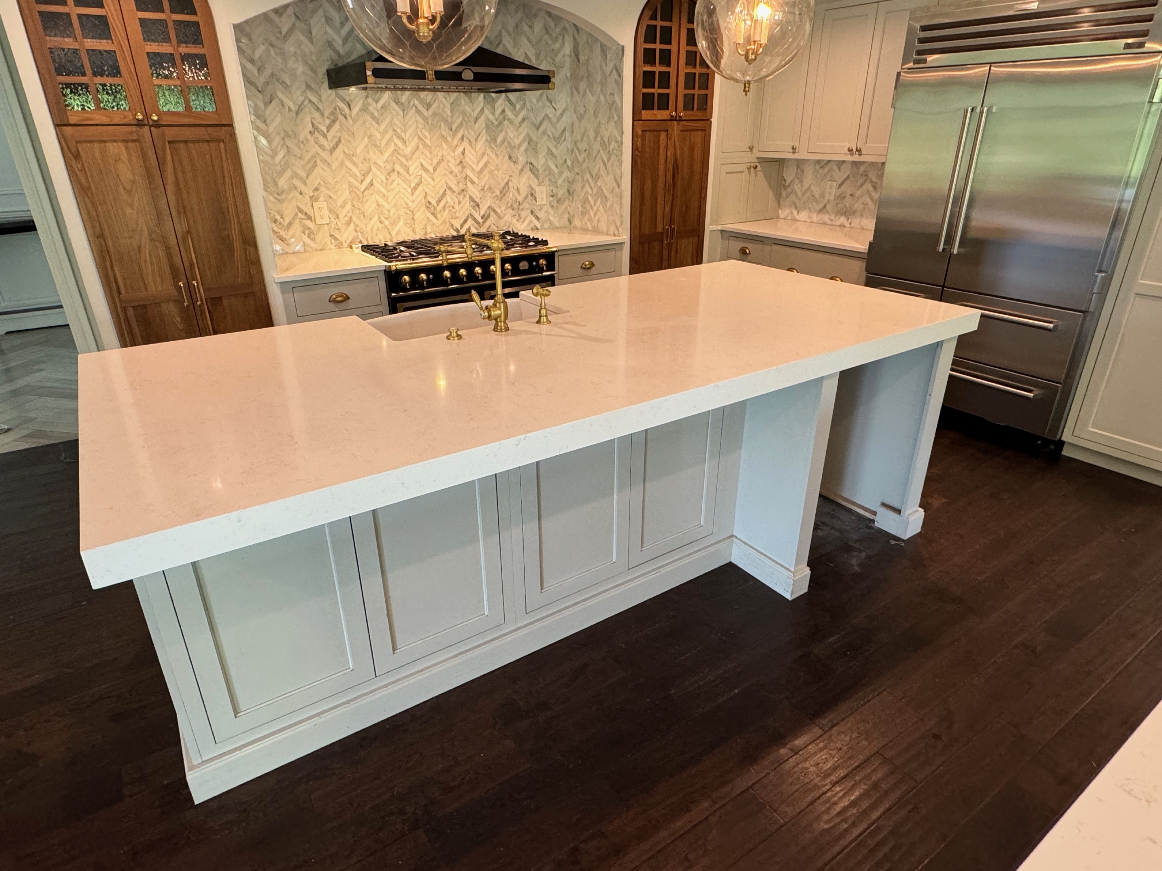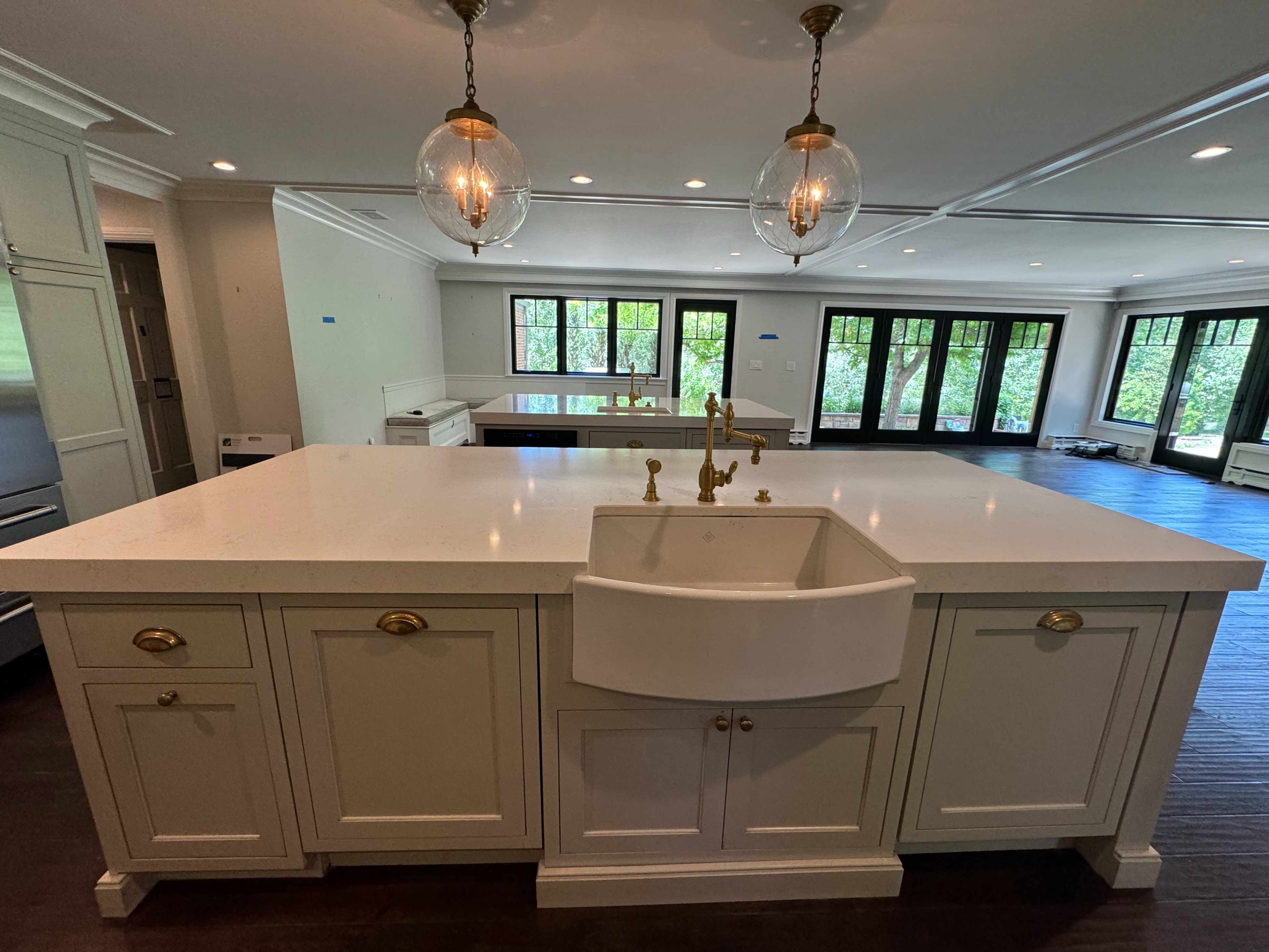 ISLAND #1-Dimensions 110” x 1/4 X 49 7/8". Cabinets overall dimensions: 106” x 48” this island. The island has a Shaw classic farmhouse sink measuring 30” w x 10”h x 24”d