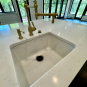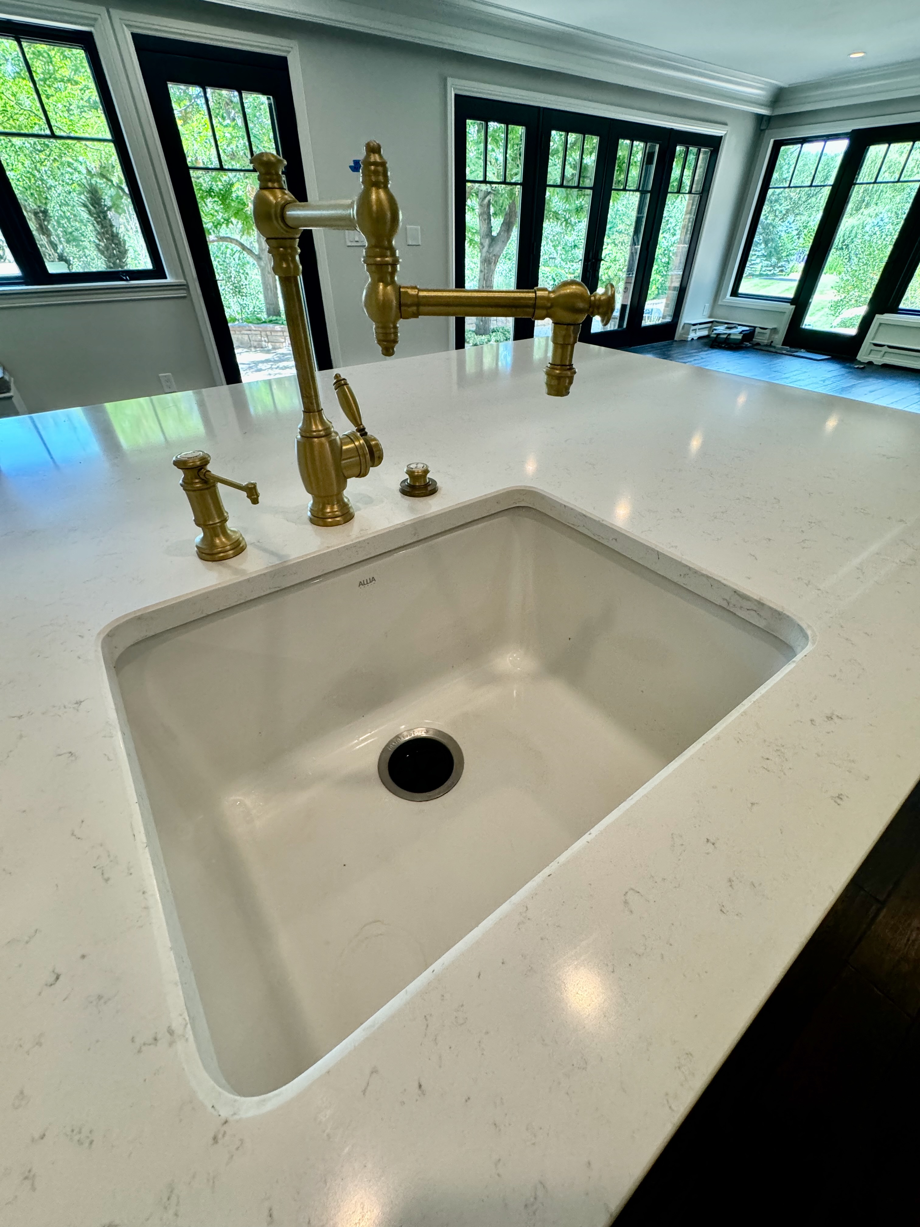 1-Two door sink base cabinet Dim.: 27” w x 36” h X 24” d w/ Aliya under mount sink, Waterstone faucet set in brass, soap dispenser, disposer and disposal, Retail $5,500