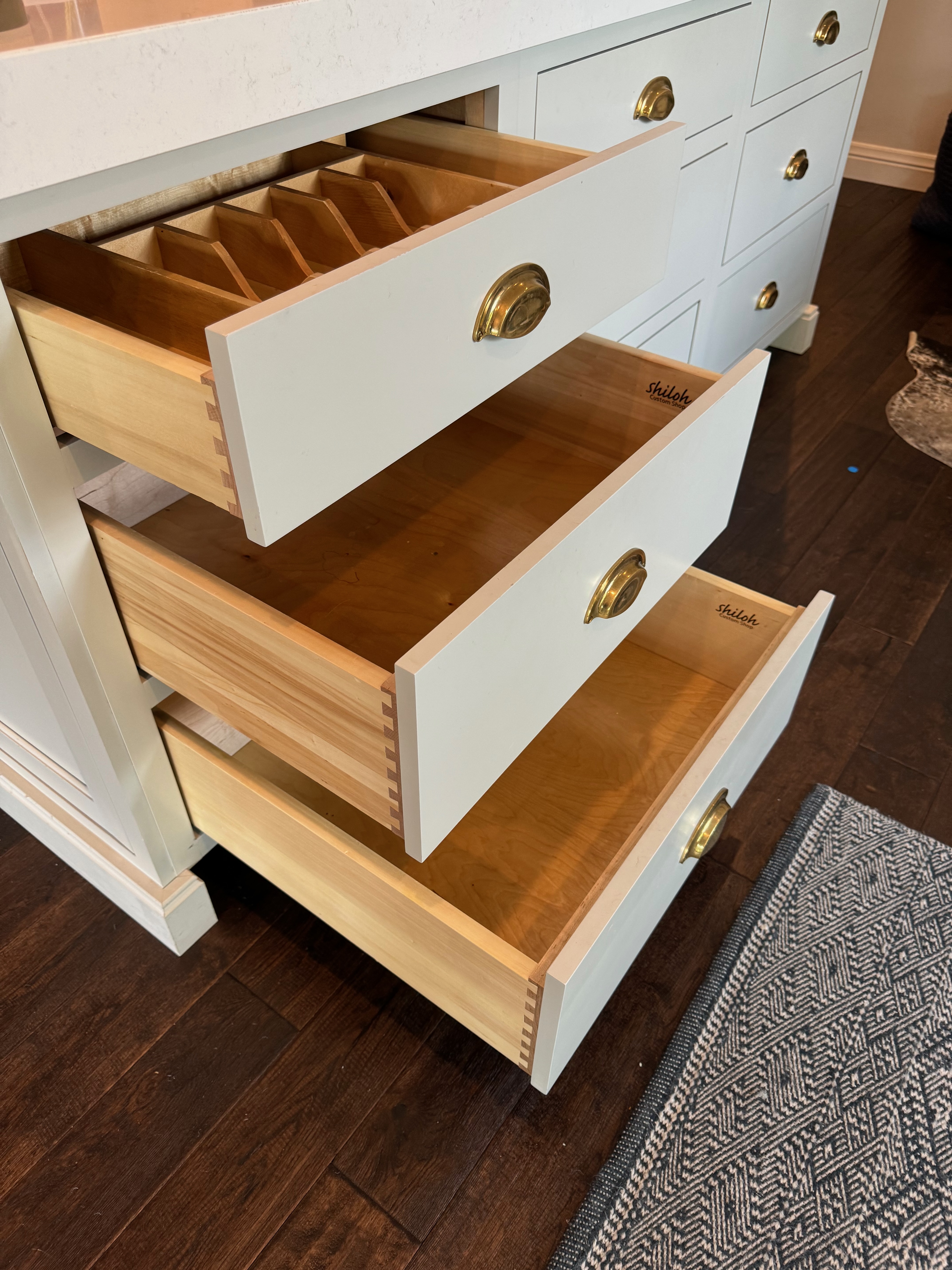 3-Three drawer base cabinets w/wood utensil dividers in the top drawer Dim.: 27” w x 36” h X 24” d, 82 ½” overall