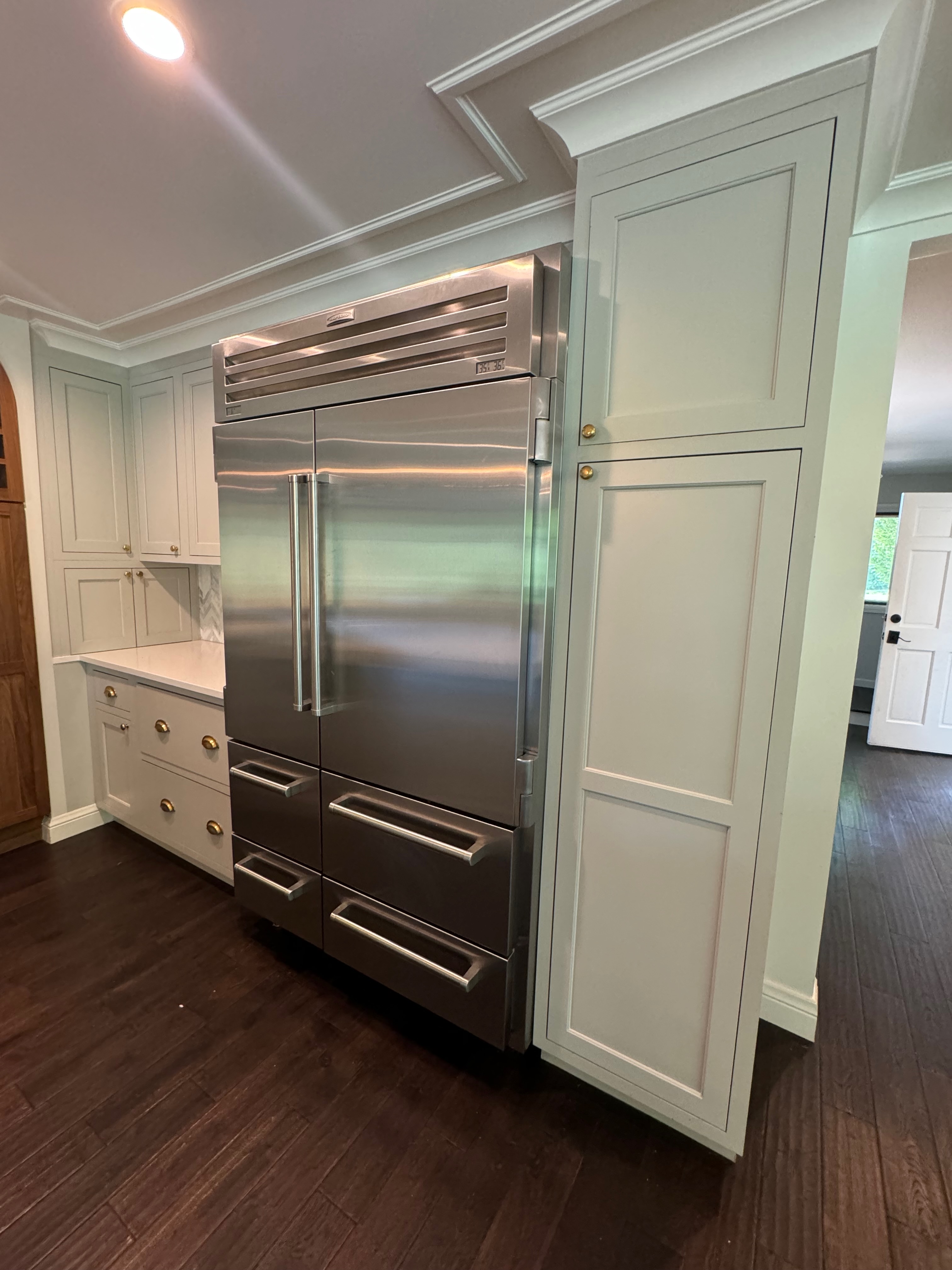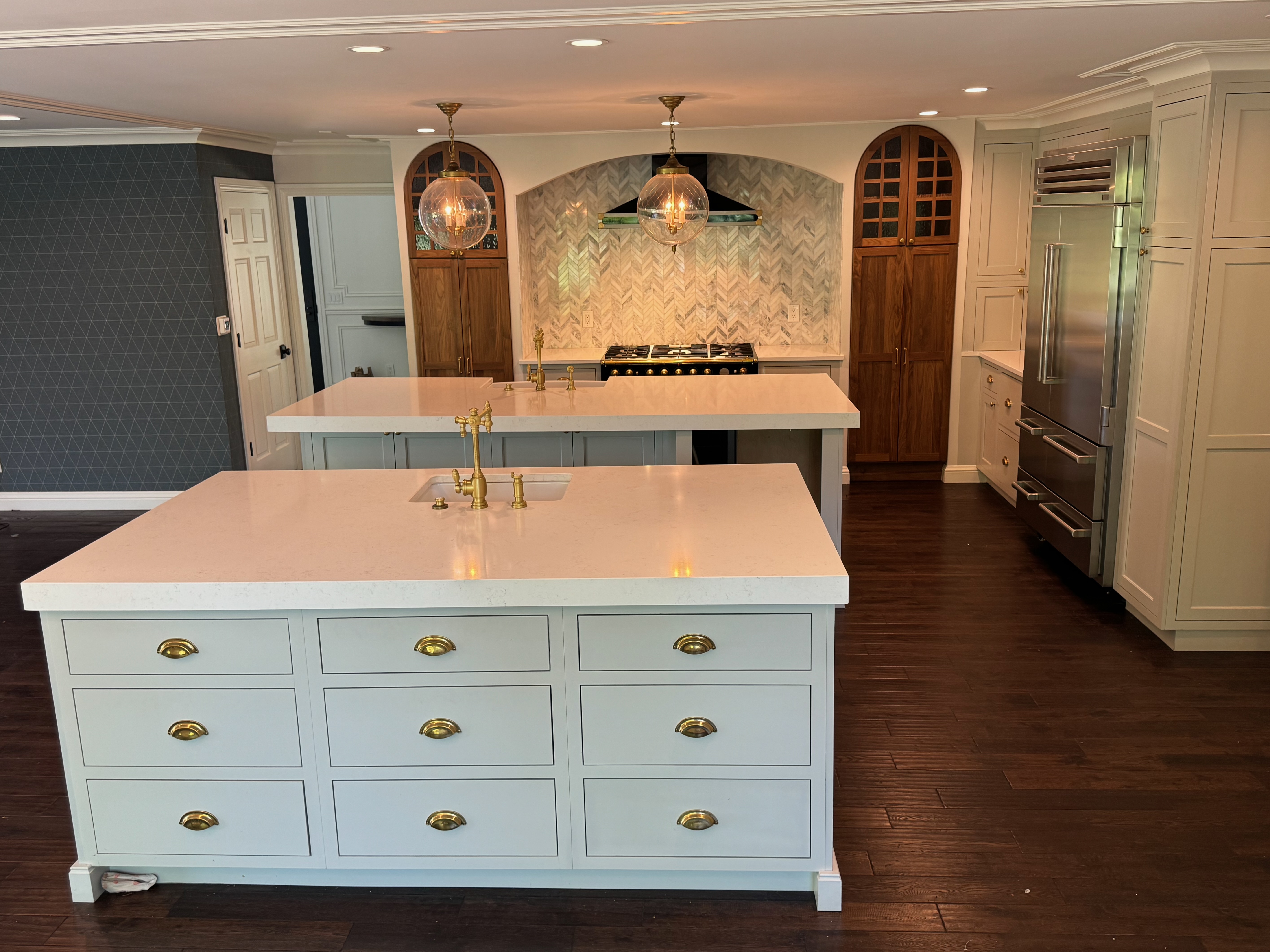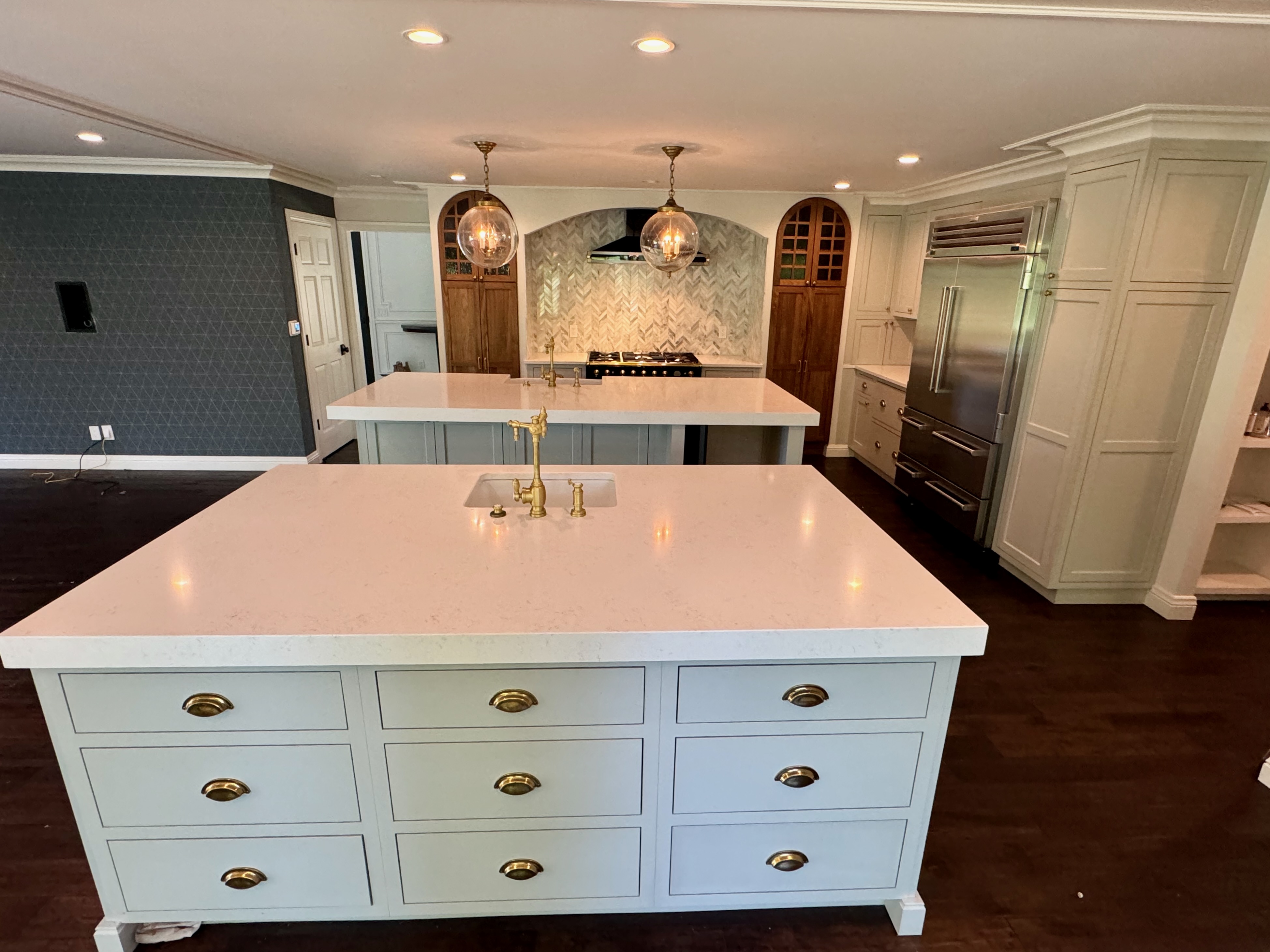 This beautiful kitchen has Shiloh Custom Kitchen Cabinetry with two island and gorgeous quartzite countertops. The cabinets are in a New Haven door style with the repose gray painted finish. The kitchen features a 43" La Cornue CornuFe 110 Range with a matching hood, plus a 48" Sub-Zero Pro refrigerator! Two stunning Alder wood pantry cabinets with pull out drawer inserts flank each side of the range. Doesn’t get much better than this all the cabinetry has upgraded plywood boxes, dovetail drawers with the soft clothes feature. The Kitchen has been professionally removed by licensed contractors and moved to storage for easy pick up. Movers available to hire. The Pricing for the Kitchen package below.