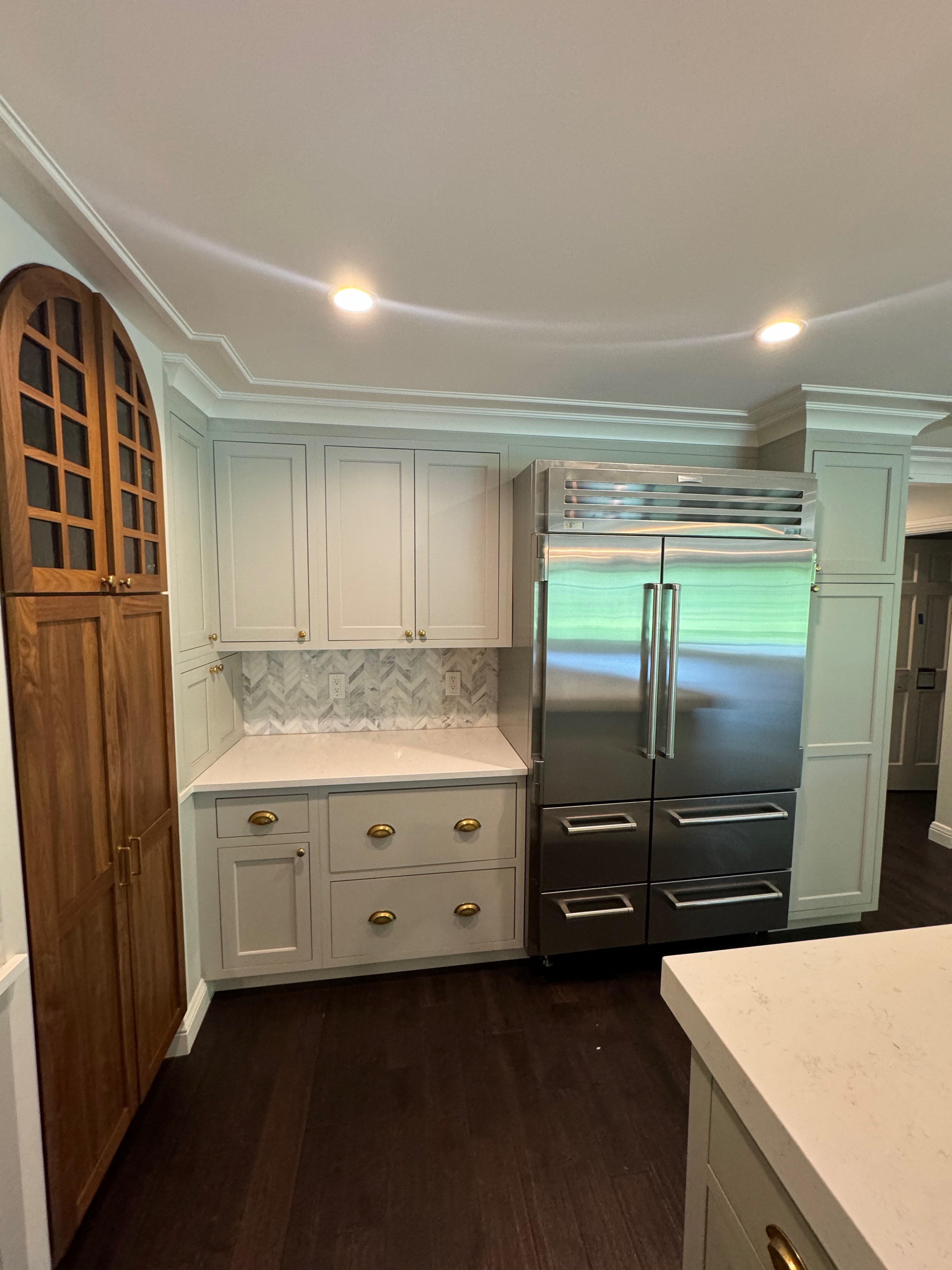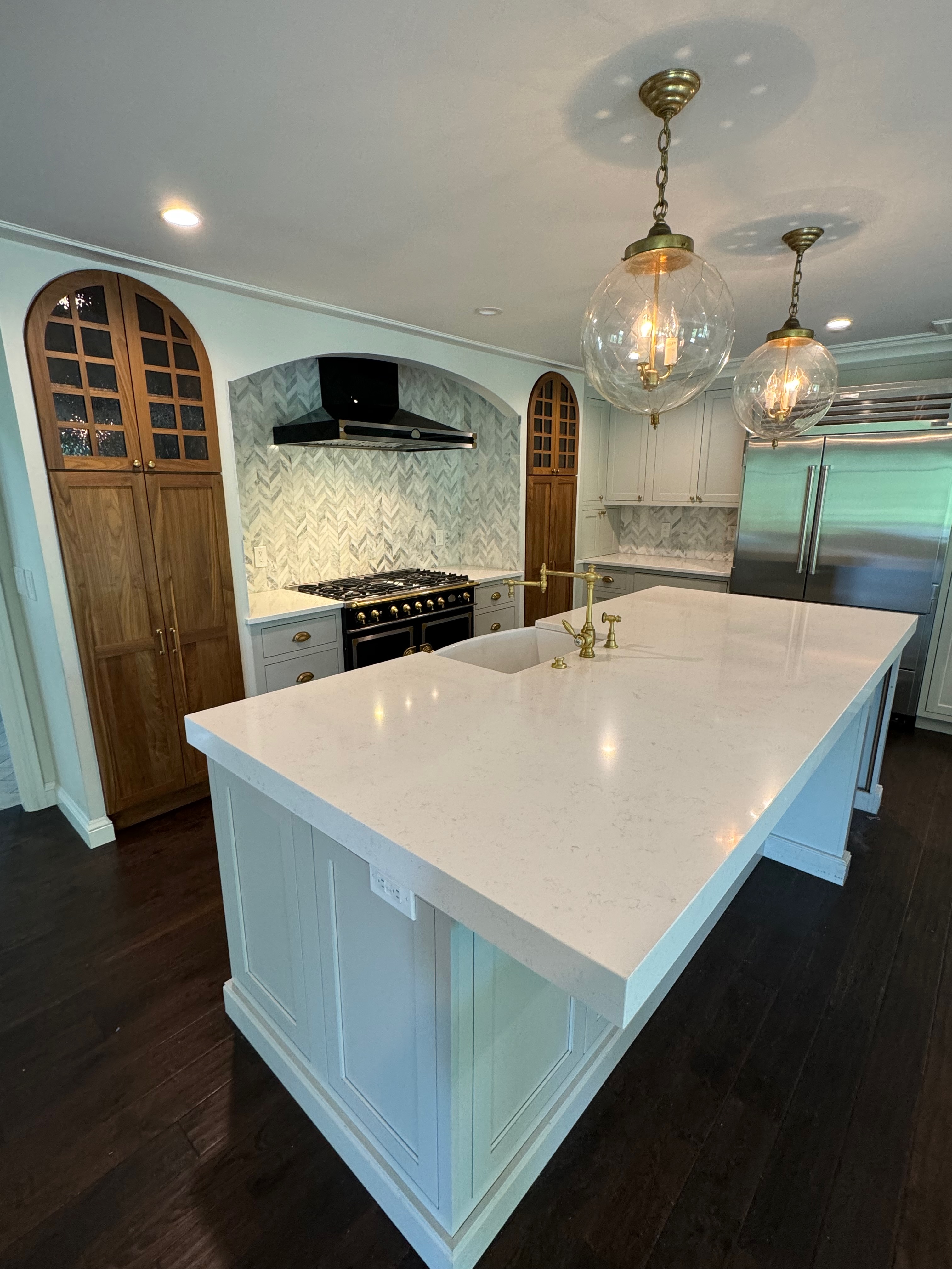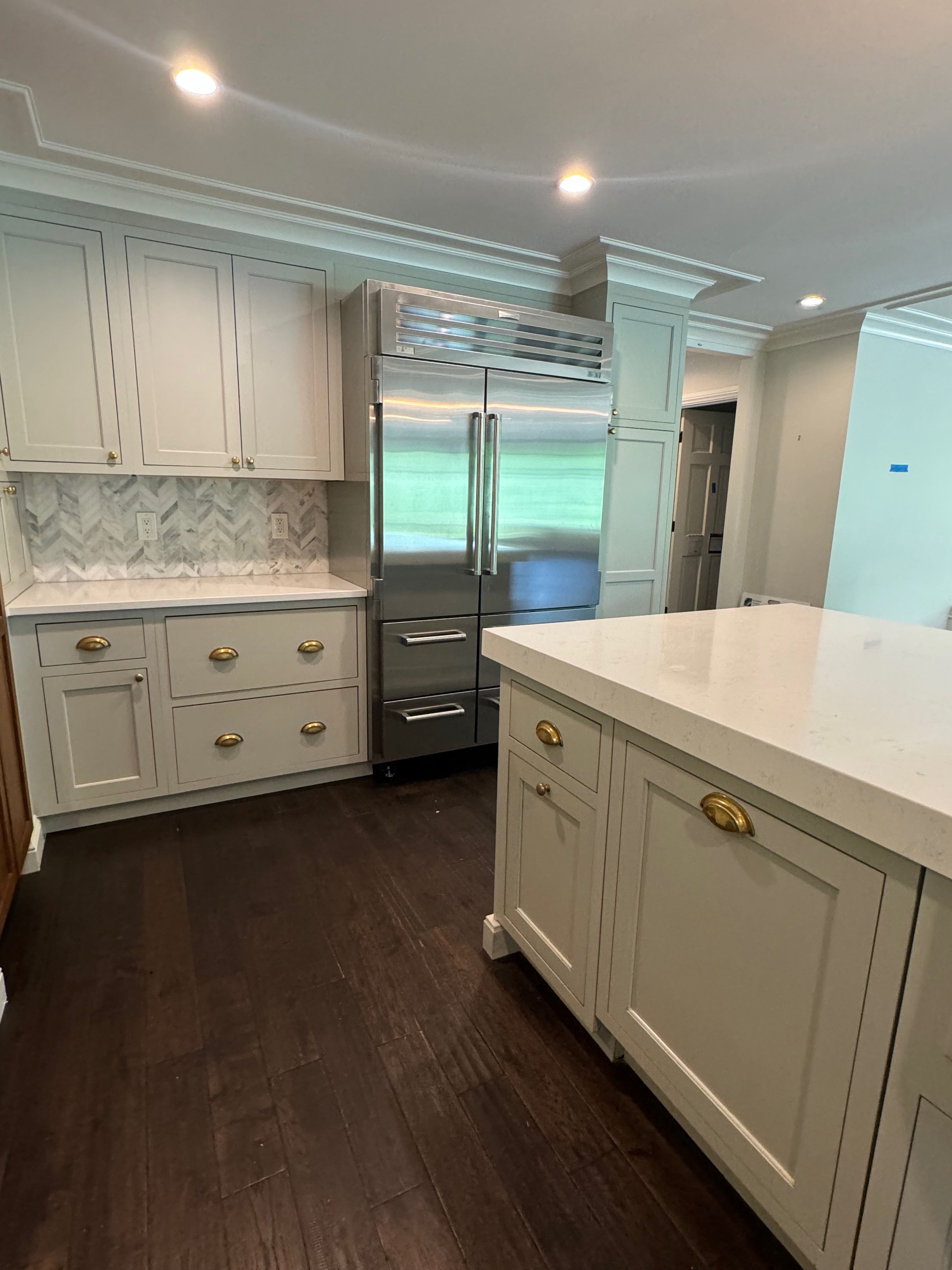 This beautiful kitchen has Shiloh Custom Kitchen Cabinetry with two island and gorgeous quartzite countertops. The cabinets are in a New Haven door style with the repose gray painted finish. The kitchen features a 43" La Cornue CornuFe 110 Range with a matching hood, plus a 48" Sub-Zero Pro refrigerator! Two stunning Alder wood pantry cabinets with pull out drawer inserts flank each side of the range. Doesn’t get much better than this all the cabinetry has upgraded plywood boxes, dovetail drawers with the soft clothes feature. The Kitchen has been professionally removed by licensed contractors and moved to storage for easy pick up. Movers available to hire. The Pricing for the Kitchen package below.