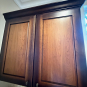 1-Two door wall cabinet holding the microwave Dim.: 30”w x 42”h cab. only/45 ½”h w/ crown x 21”d, microwave opening 30”w x 19”h