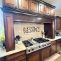 *Decorative hood Dim.: 90”w x 45 ½”h to the first crown/65”h to the top of the cabinets/69 ½”h to the top of the crown above the cabinets