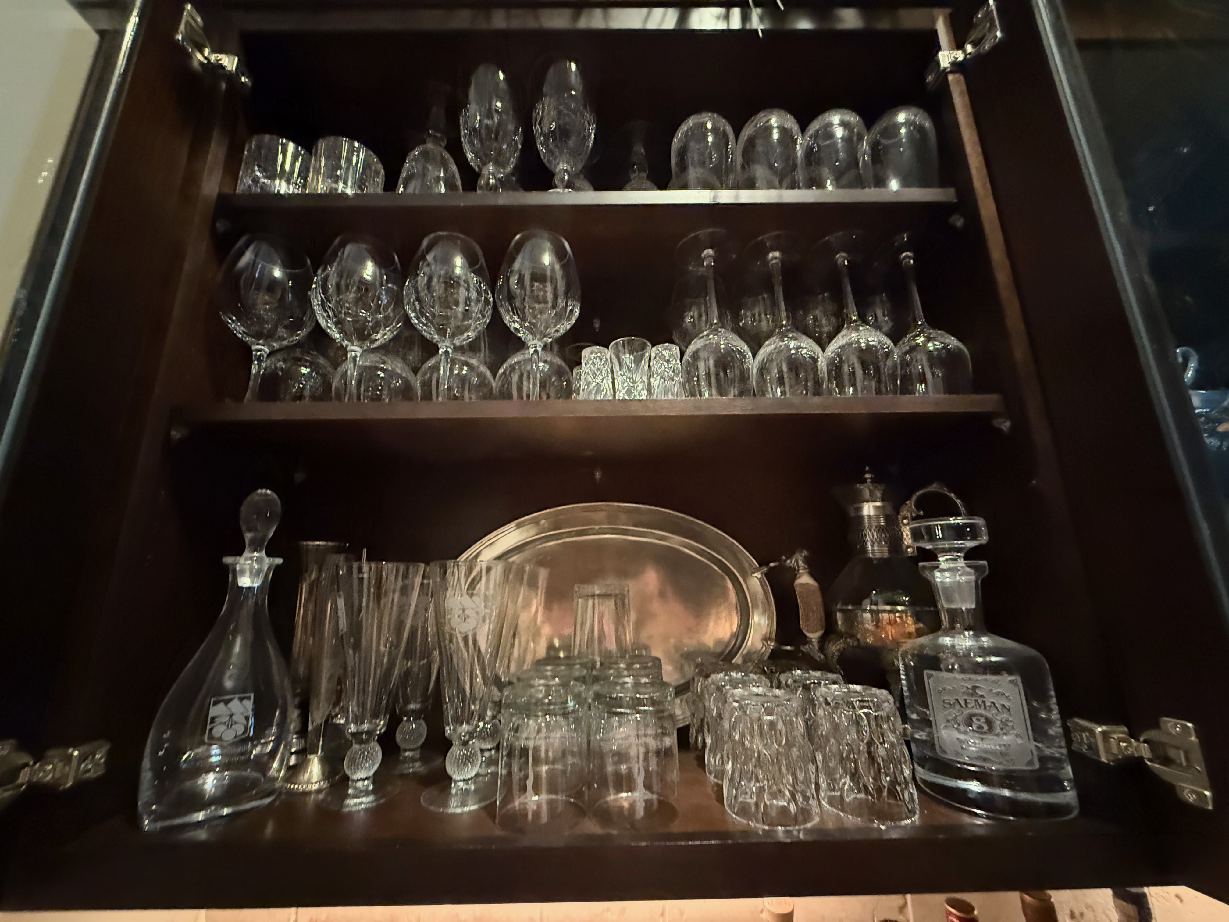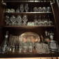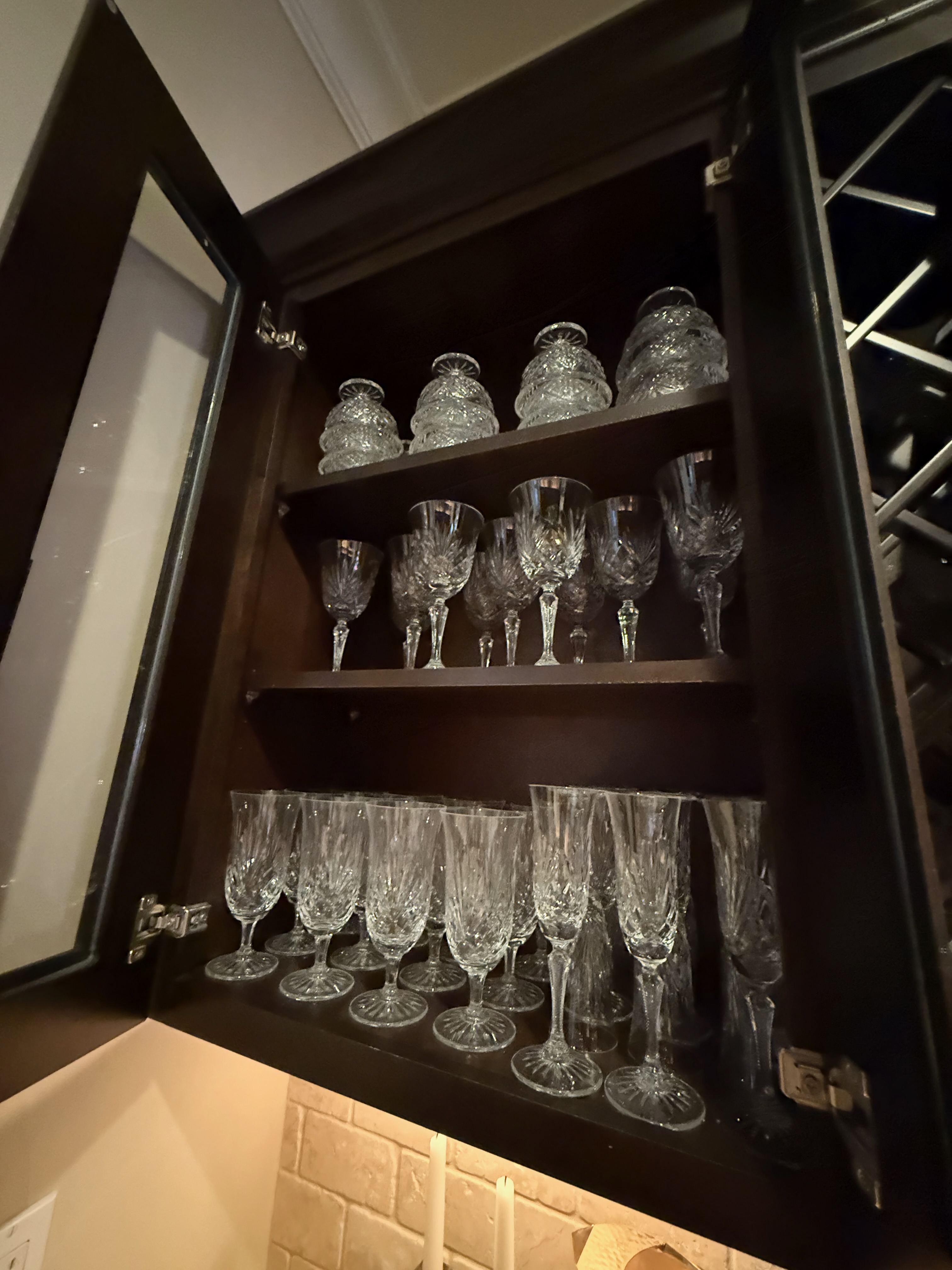 2-Two door glass front wall cabinets Dim.: 24”w x 30”h cab. only/39”h with crown x 12”d