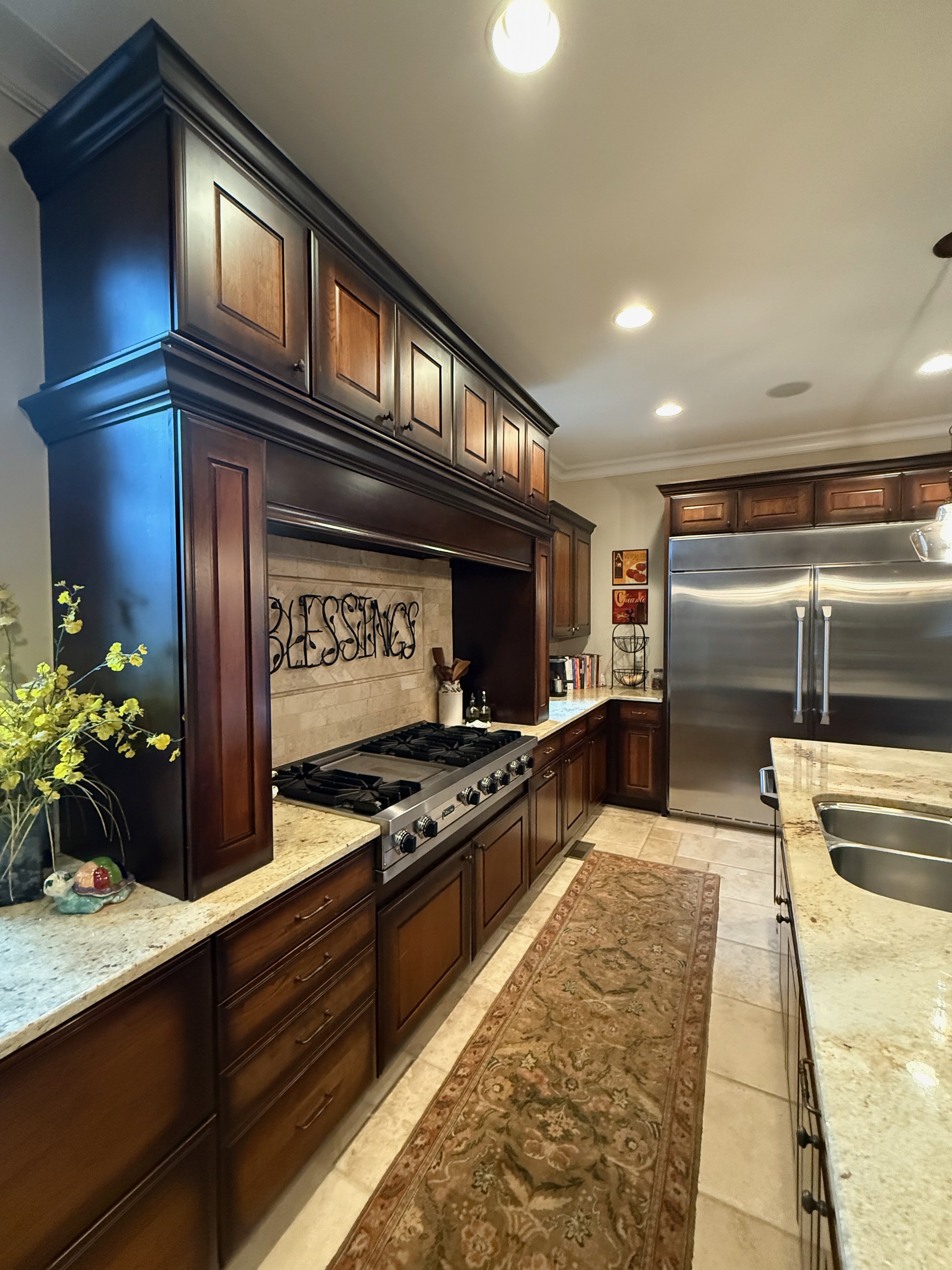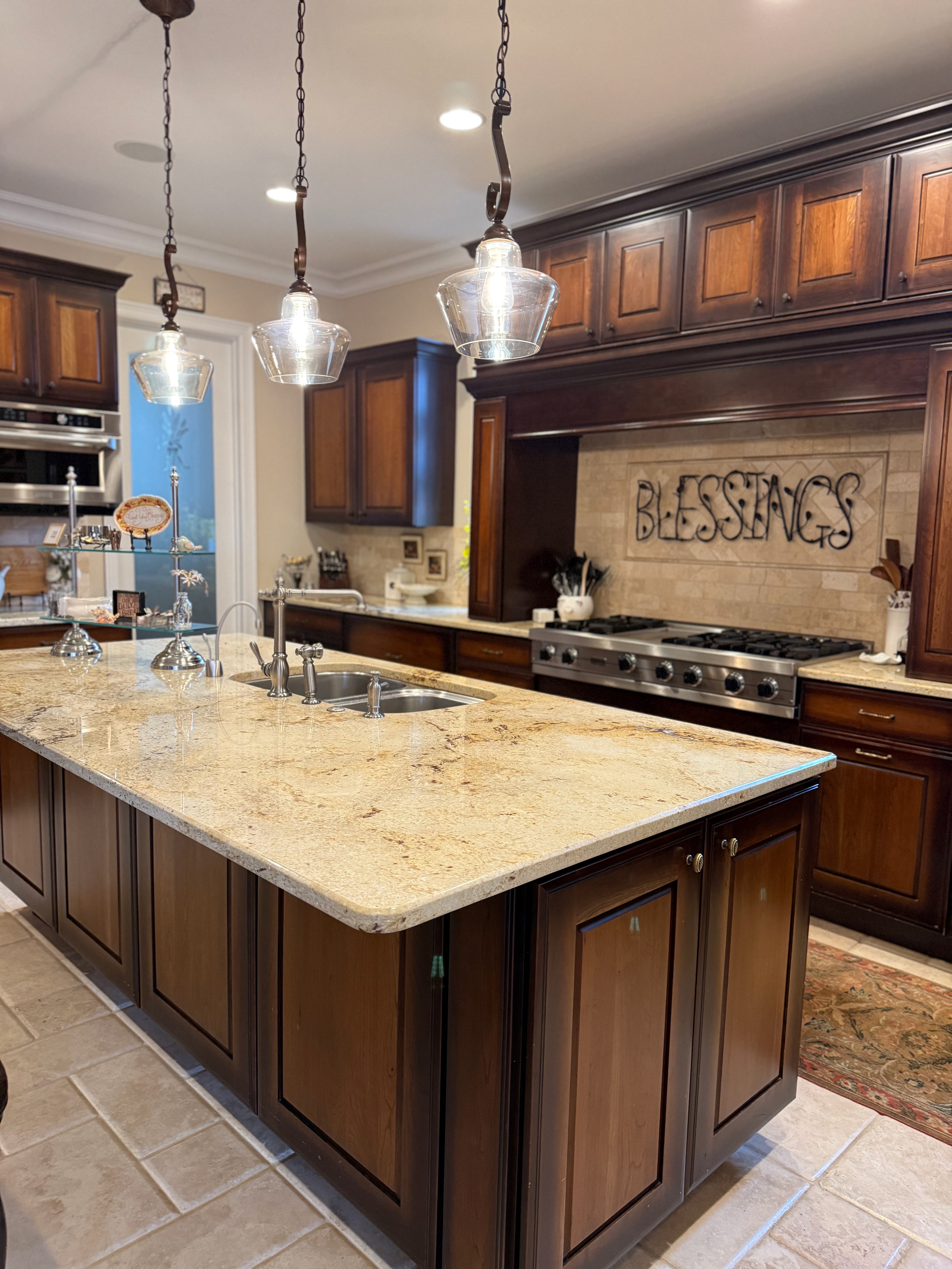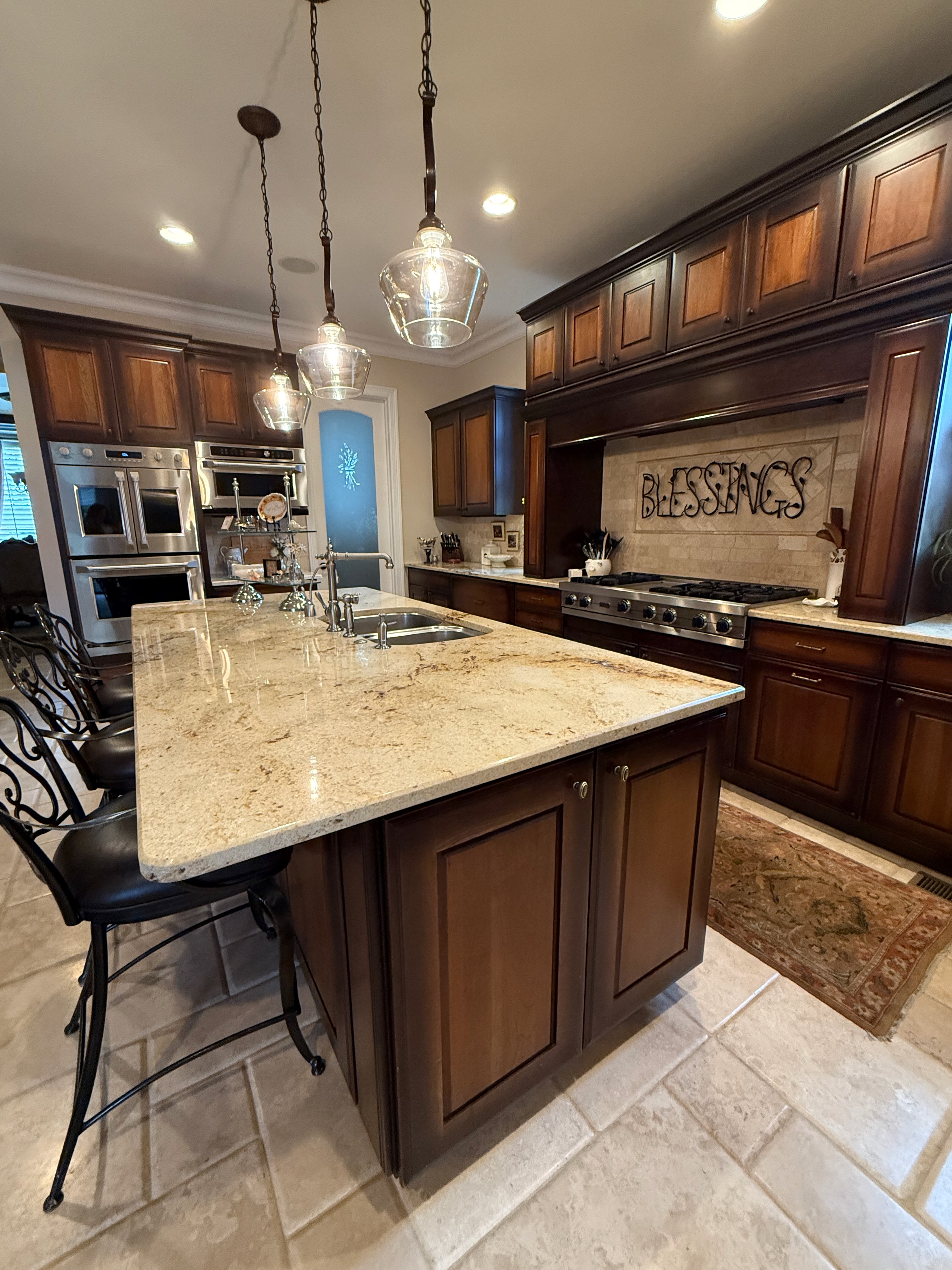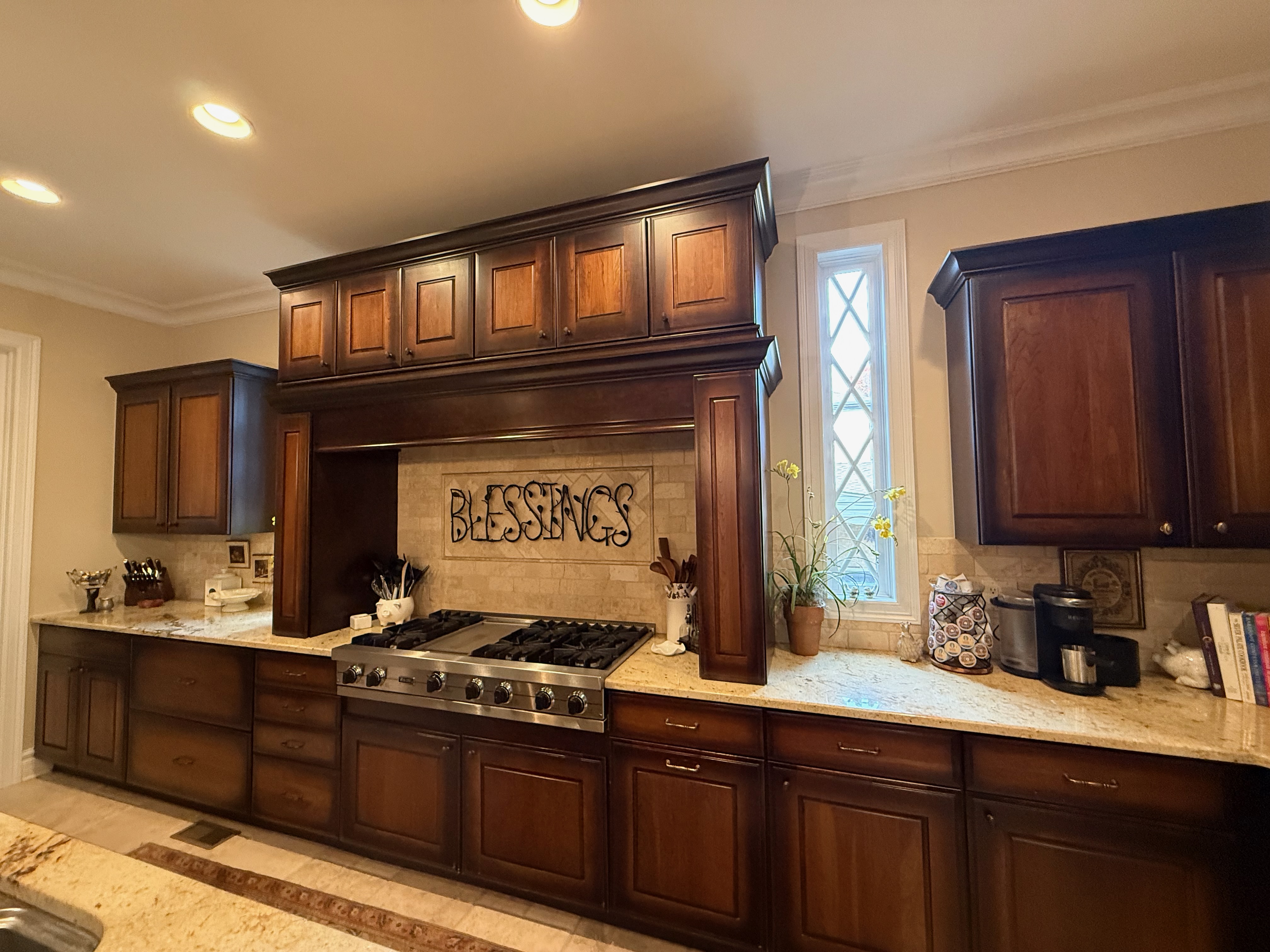 Elegant Tuscan style Decora’ Kitchen cabinetry with raised panels in a rich warm brown wood. The cabinets drawers have the dove tail joinery and soft close feature with pull-out drawers, dowel peg organizers, spice shelf pull-outs and rev-a-shelf blind corner organizers. The kitchen package includes slab granite countertops, sinks, faucet sets, under cabinet lighting and three pendant lights. The appliances are NOT included. Everything is available to be removed, tbd late-January or February 2026, by a licensed contractor or we have licensed contractors available to hire to remove the kitchen and move it to your home. Pricing below.