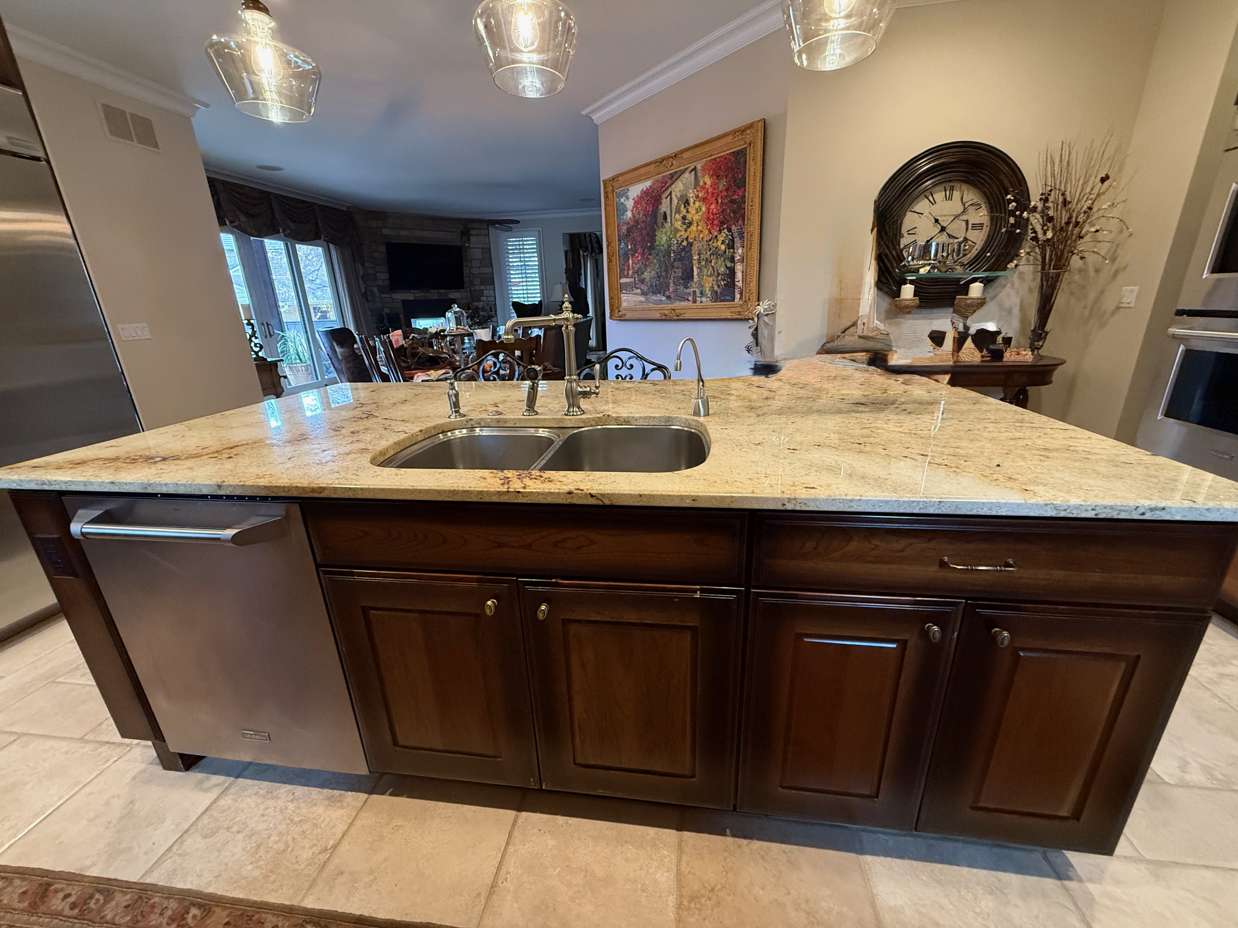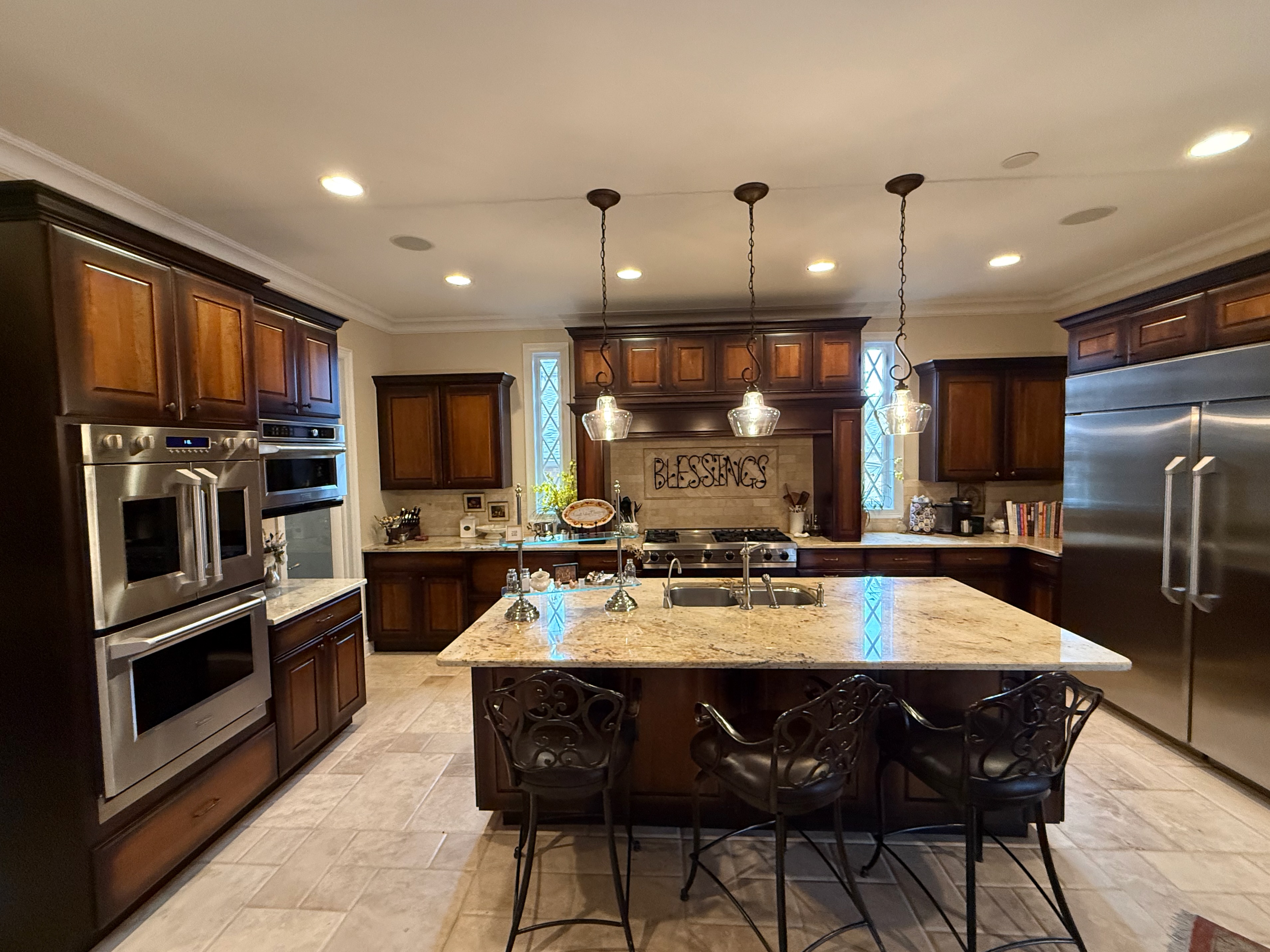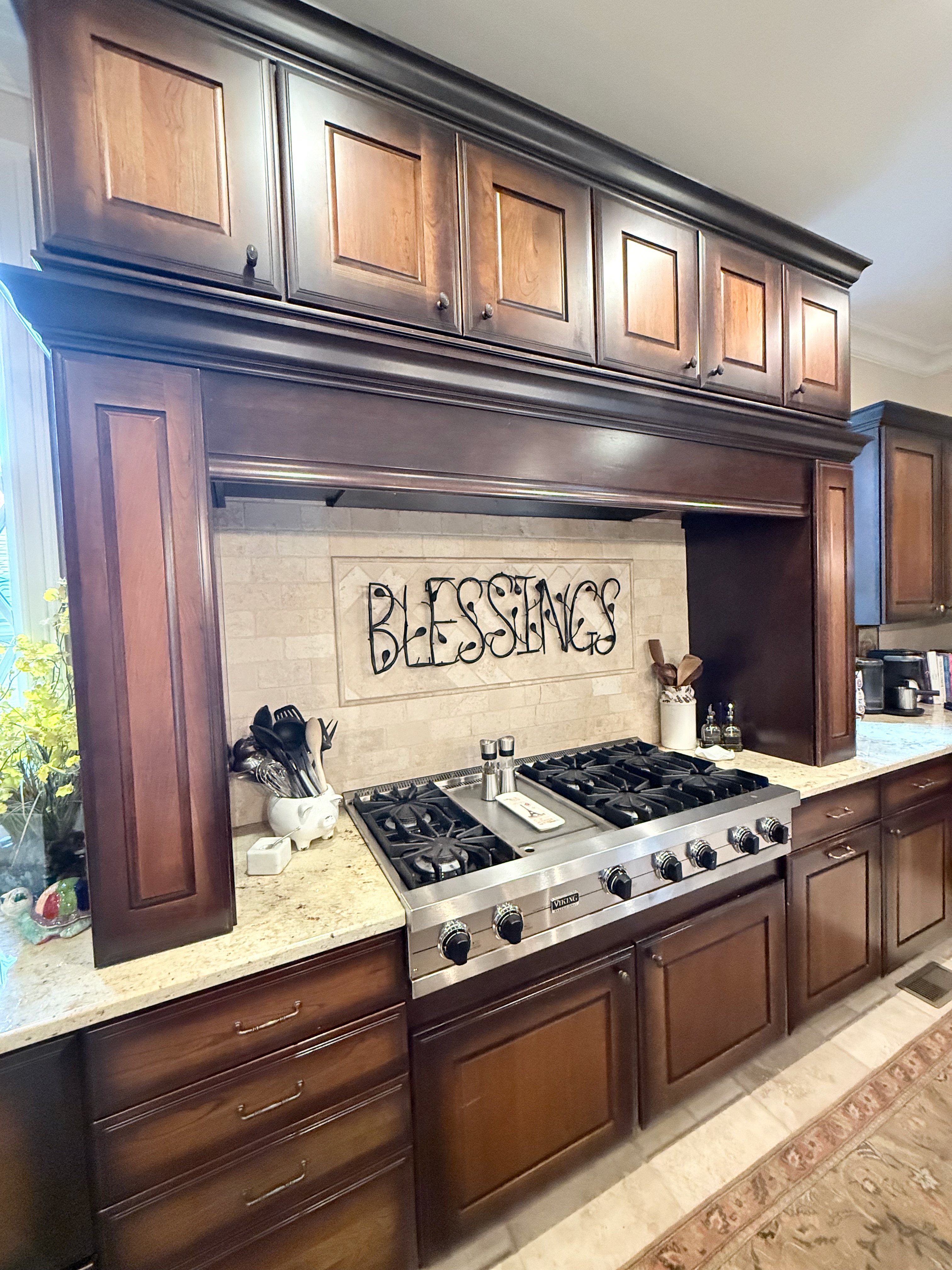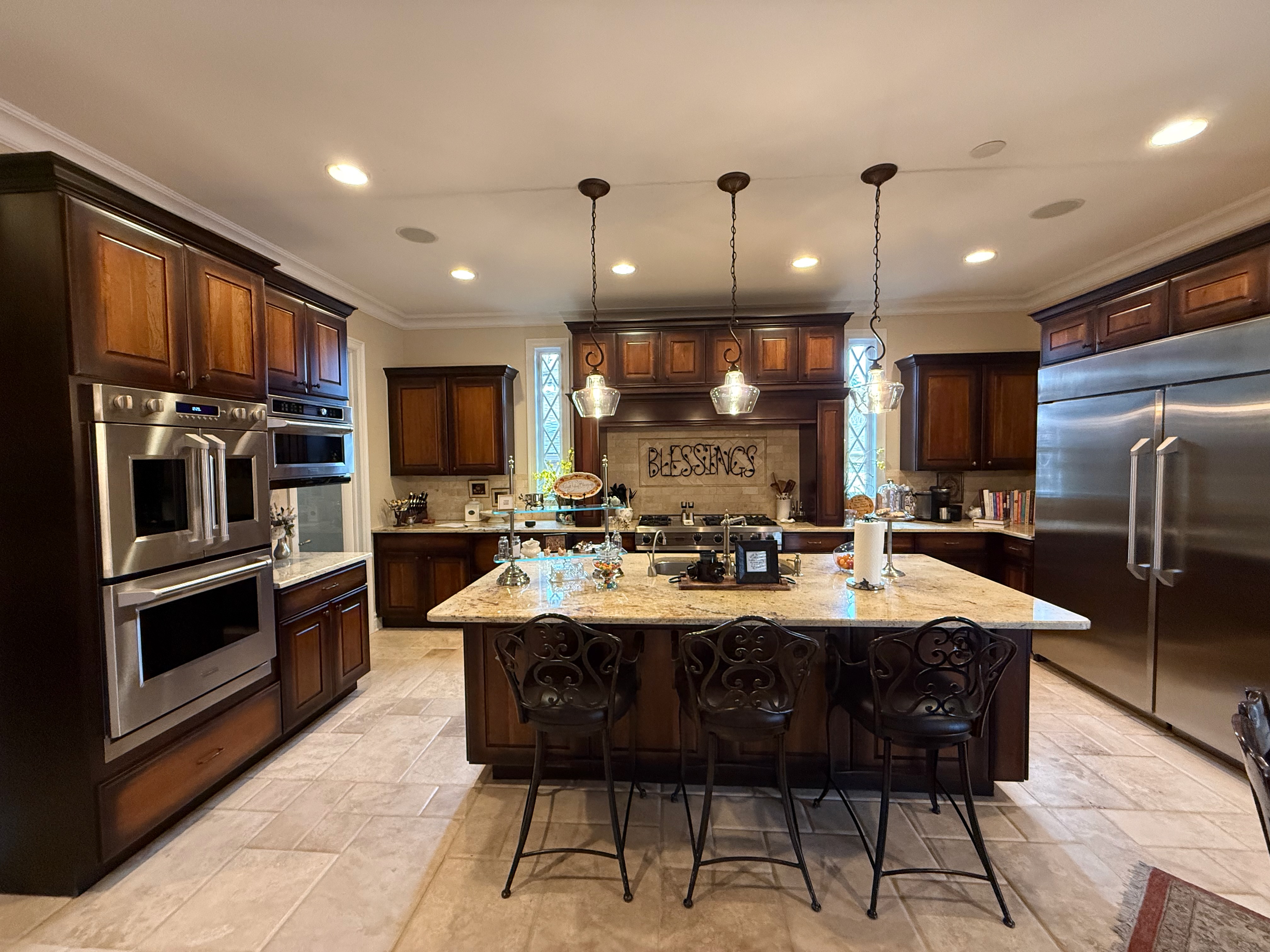 Elegant Tuscan style Decora’ Kitchen cabinetry with raised panels in a rich warm brown wood. The cabinets drawers have the dove tail joinery and soft close feature with pull-out drawers, dowel peg organizers, spice shelf pull-outs and rev-a-shelf blind corner organizers. The kitchen package includes slab granite countertops, sinks, faucet sets, under cabinet lighting and three pendant lights. The appliances are NOT included. Everything is available to be removed, tbd late-January or February 2026, by a licensed contractor or we have licensed contractors available to hire to remove the kitchen and move it to your home. Pricing below.