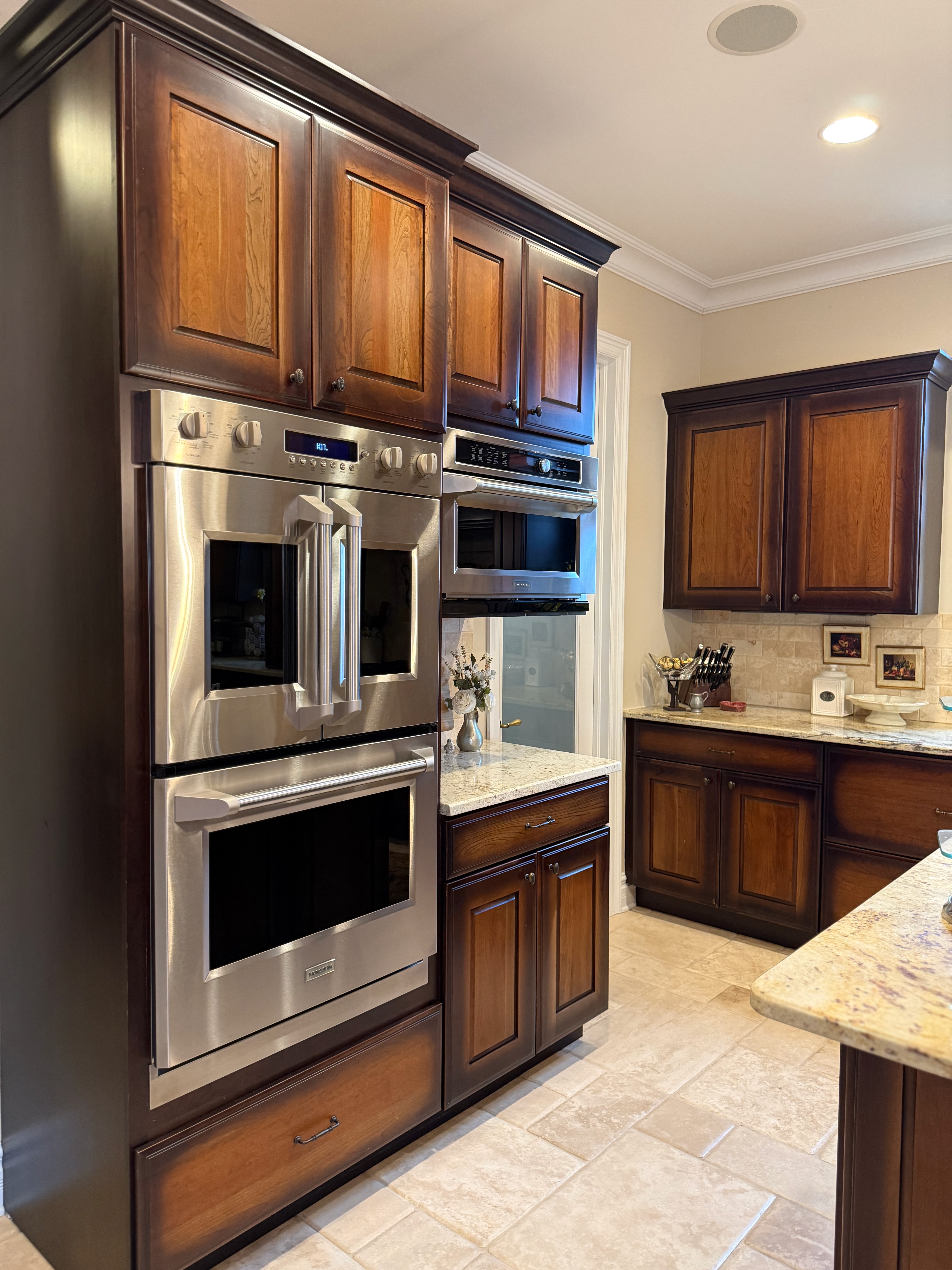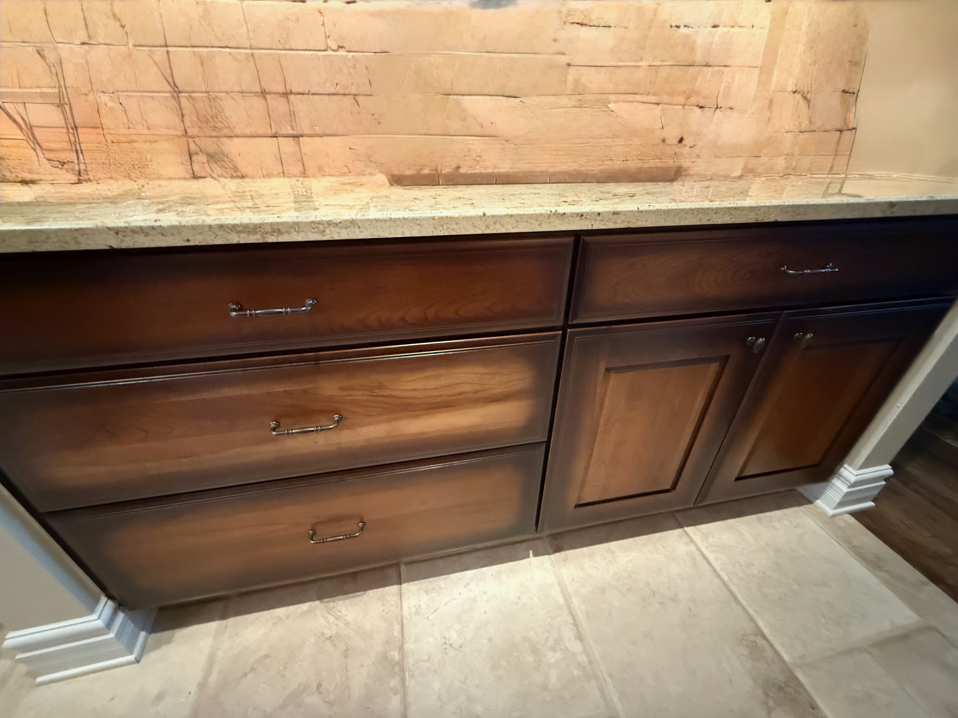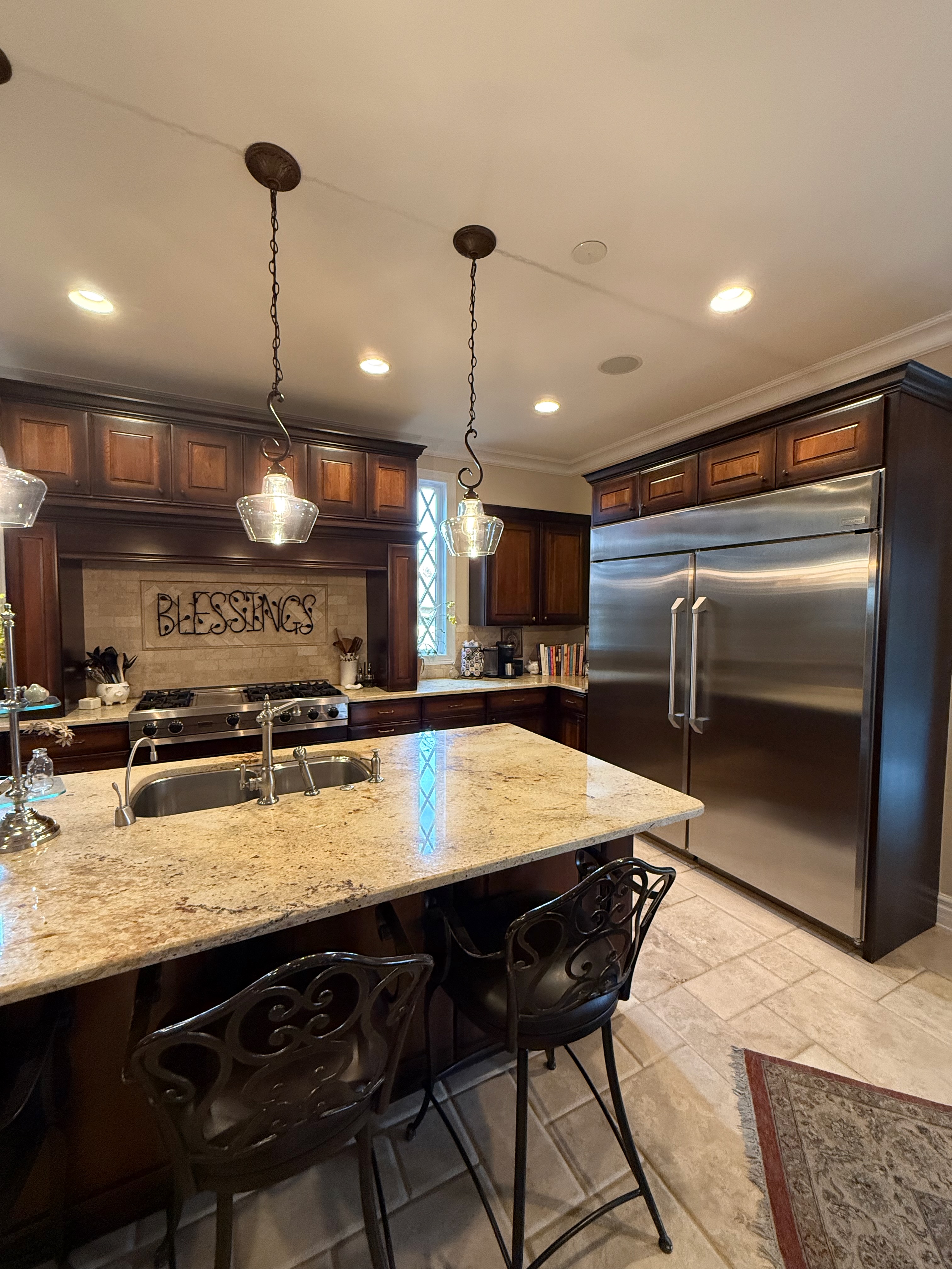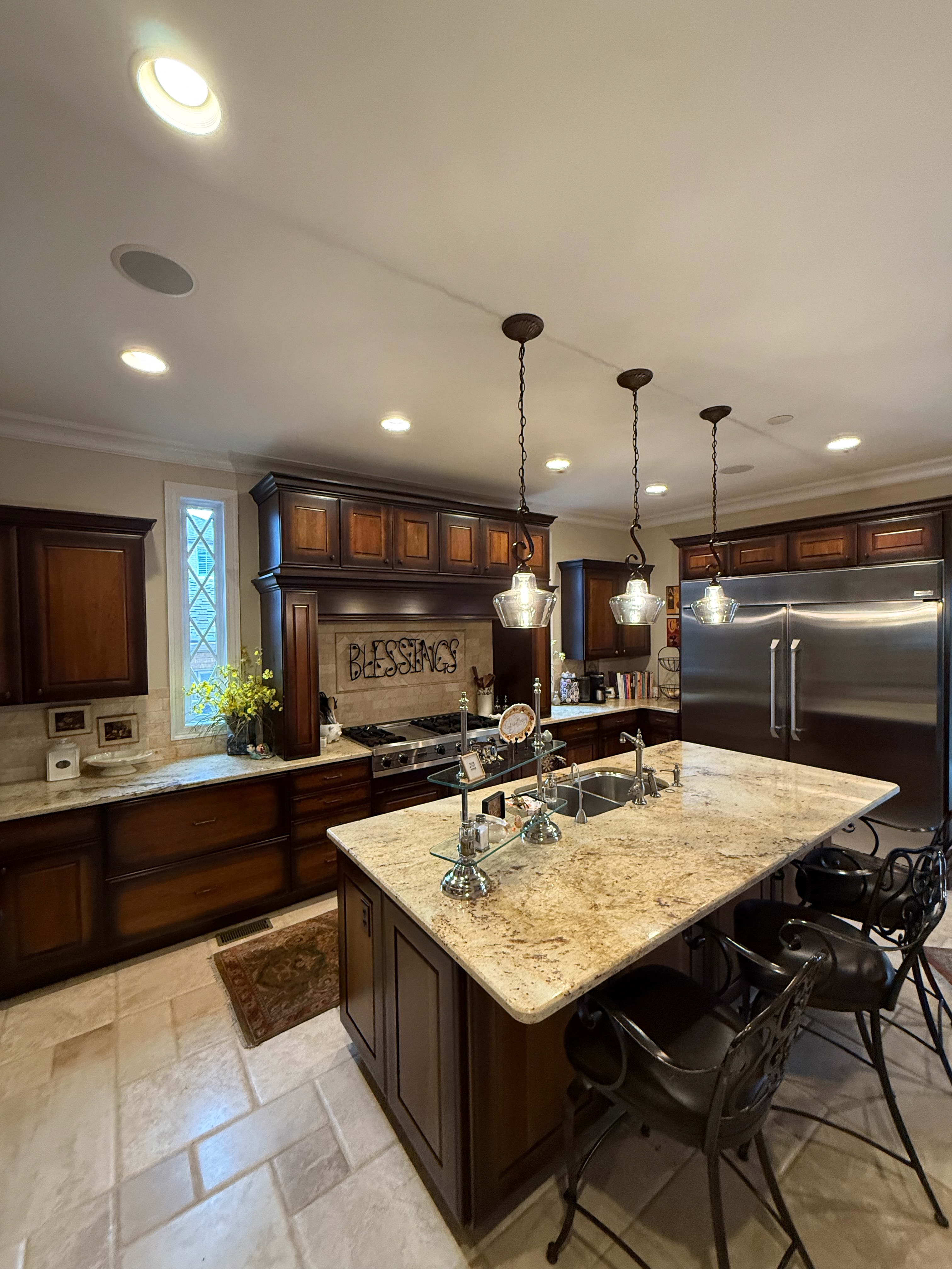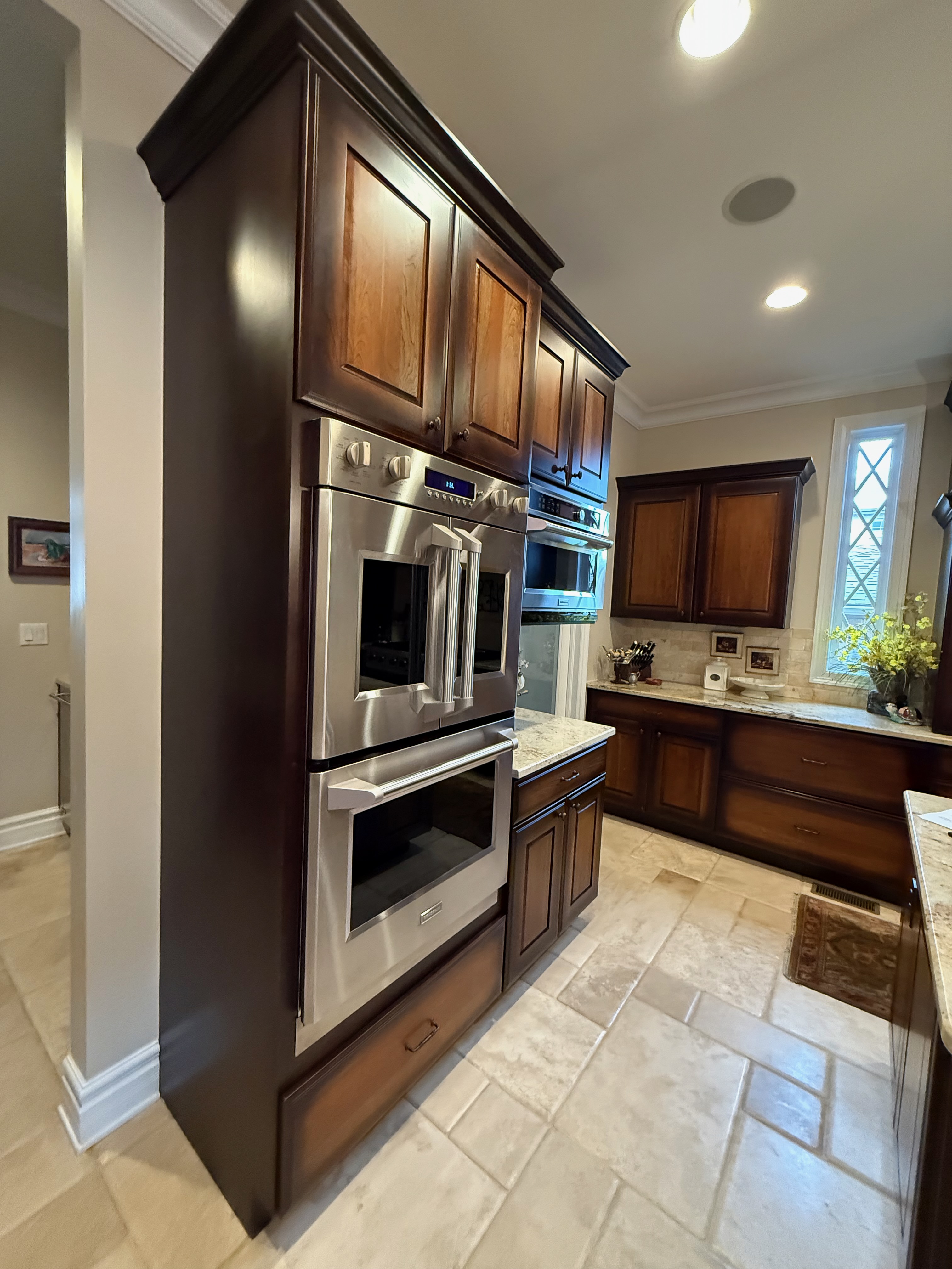 Elegant Tuscan style Decora’ Kitchen cabinetry with raised panels in a rich warm brown wood. The cabinets drawers have the dove tail joinery and soft close feature with pull-out drawers, dowel peg organizers, spice shelf pull-outs and rev-a-shelf blind corner organizers. The kitchen package includes slab granite countertops, sinks, faucet sets, under cabinet lighting and three pendant lights. The appliances are NOT included. Everything is available to be removed, tbd late-January or February 2026, by a licensed contractor or we have licensed contractors available to hire to remove the kitchen and move it to your home. Pricing below.