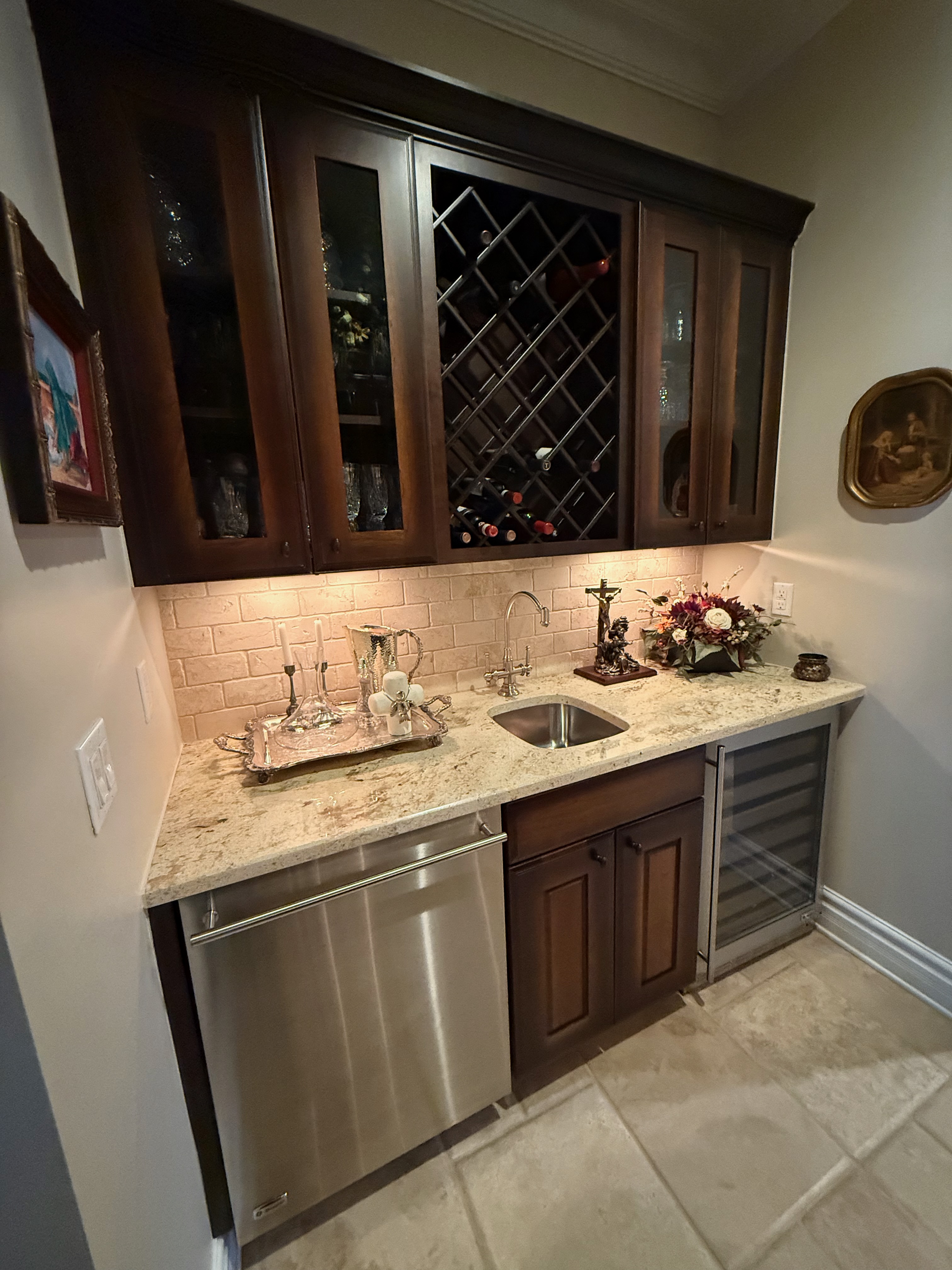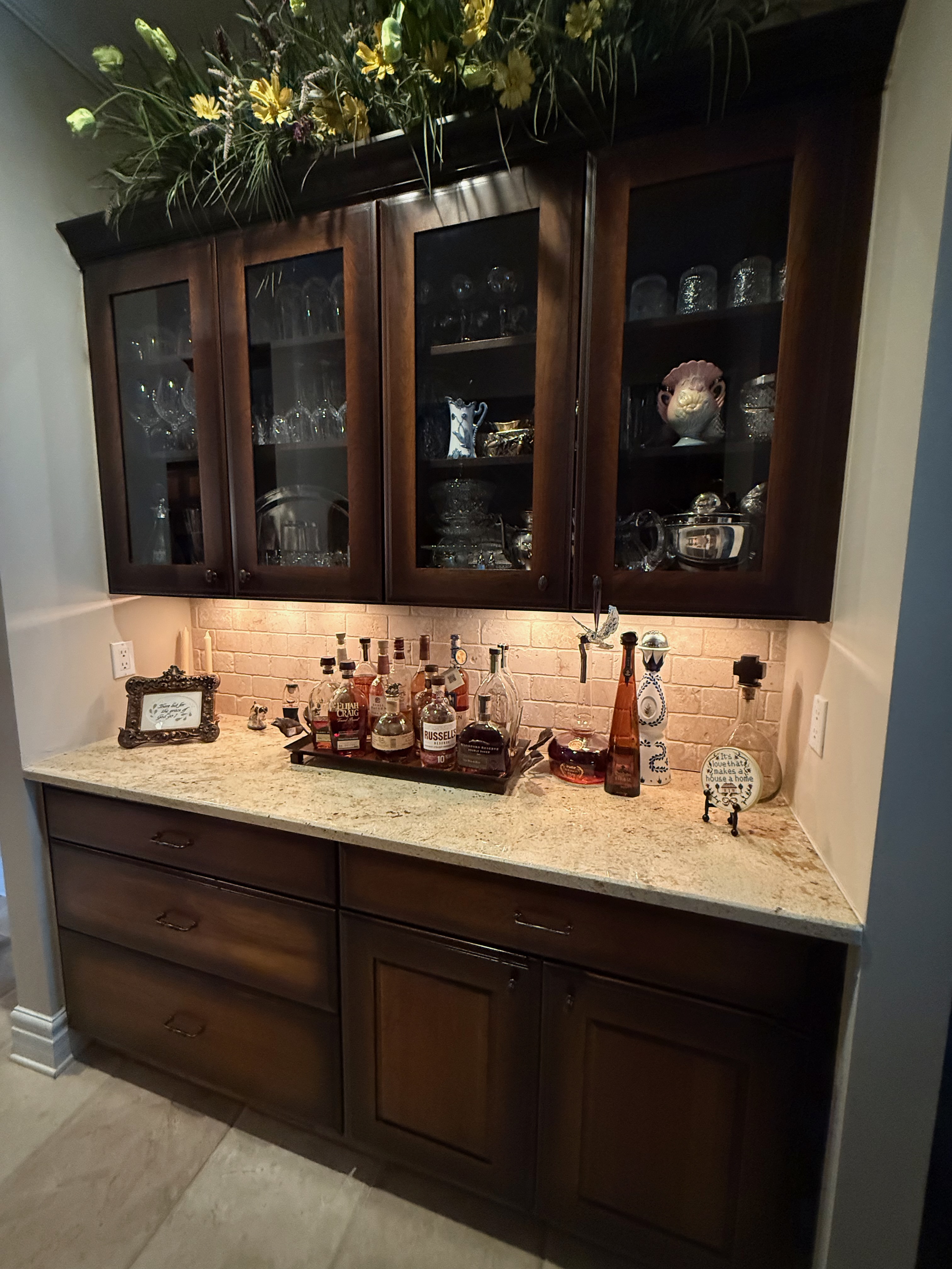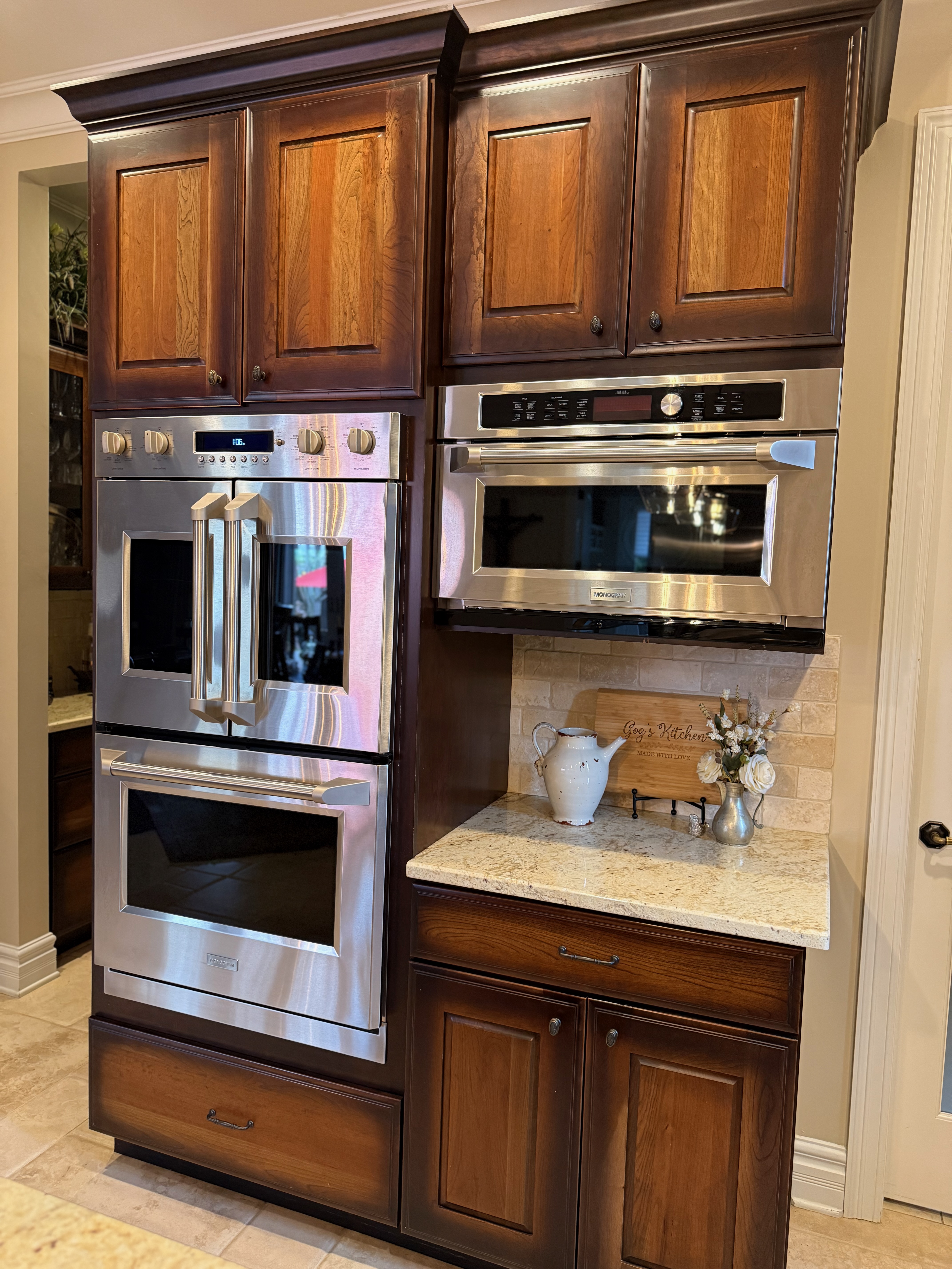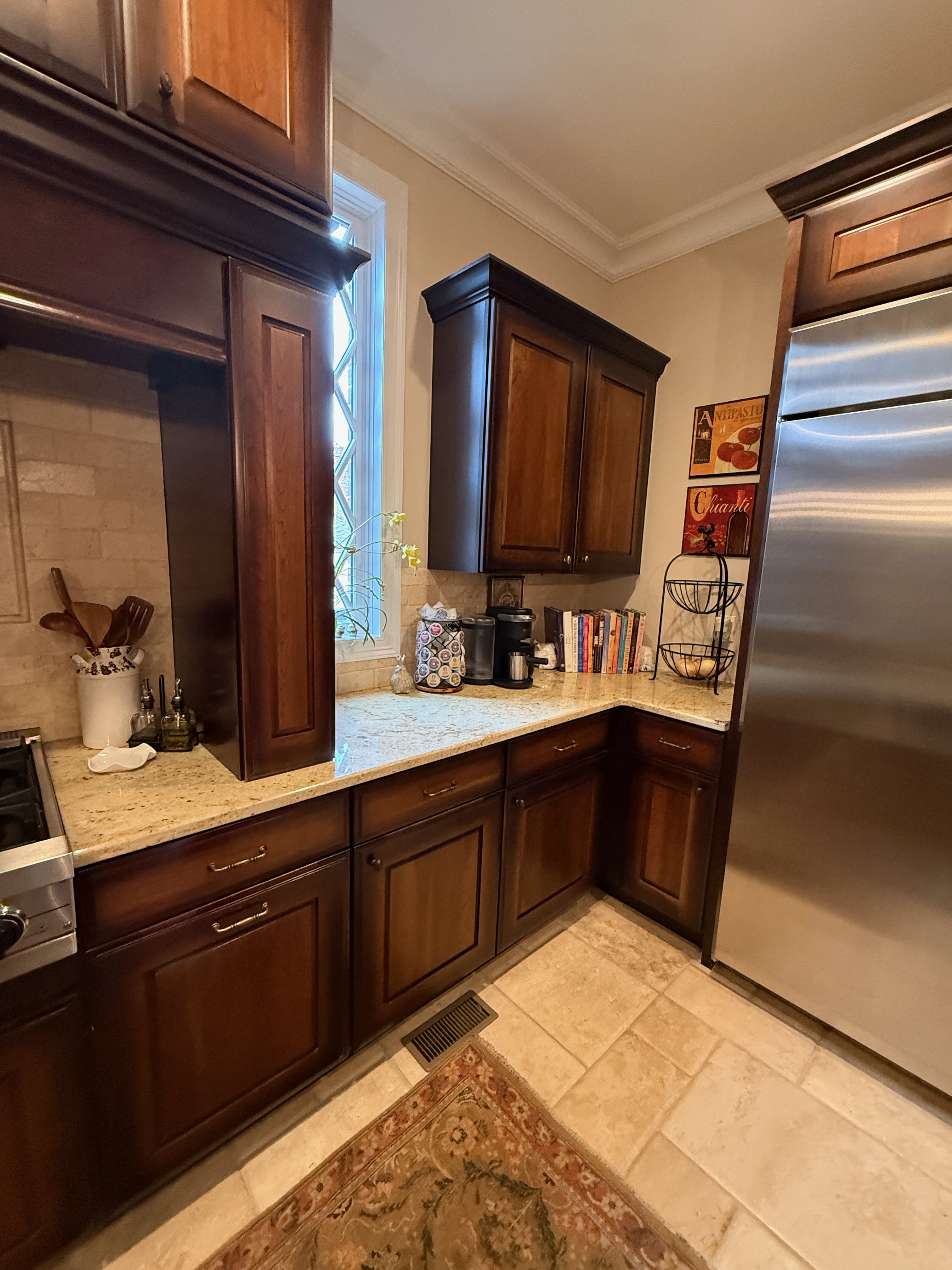 Elegant Tuscan style Decora’ Kitchen cabinetry with raised panels in a rich warm brown wood. The cabinets drawers have the dove tail joinery and soft close feature with pull-out drawers, dowel peg organizers, spice shelf pull-outs and rev-a-shelf blind corner organizers. The kitchen package includes slab granite countertops, sinks, faucet sets, under cabinet lighting and three pendant lights. The appliances are NOT included. Everything is available to be removed, tbd late-January or February 2026, by a licensed contractor or we have licensed contractors available to hire to remove the kitchen and move it to your home. Pricing below.