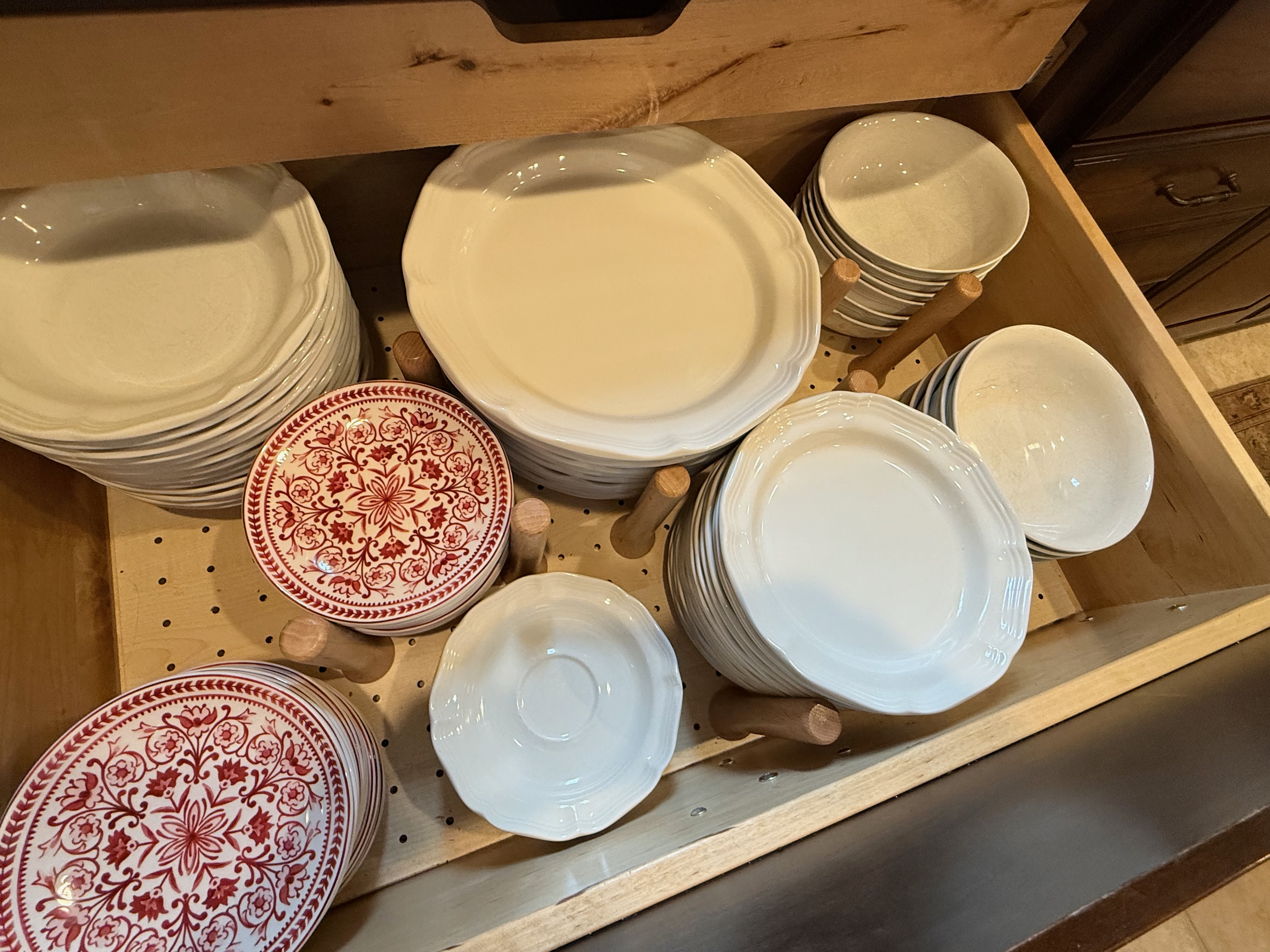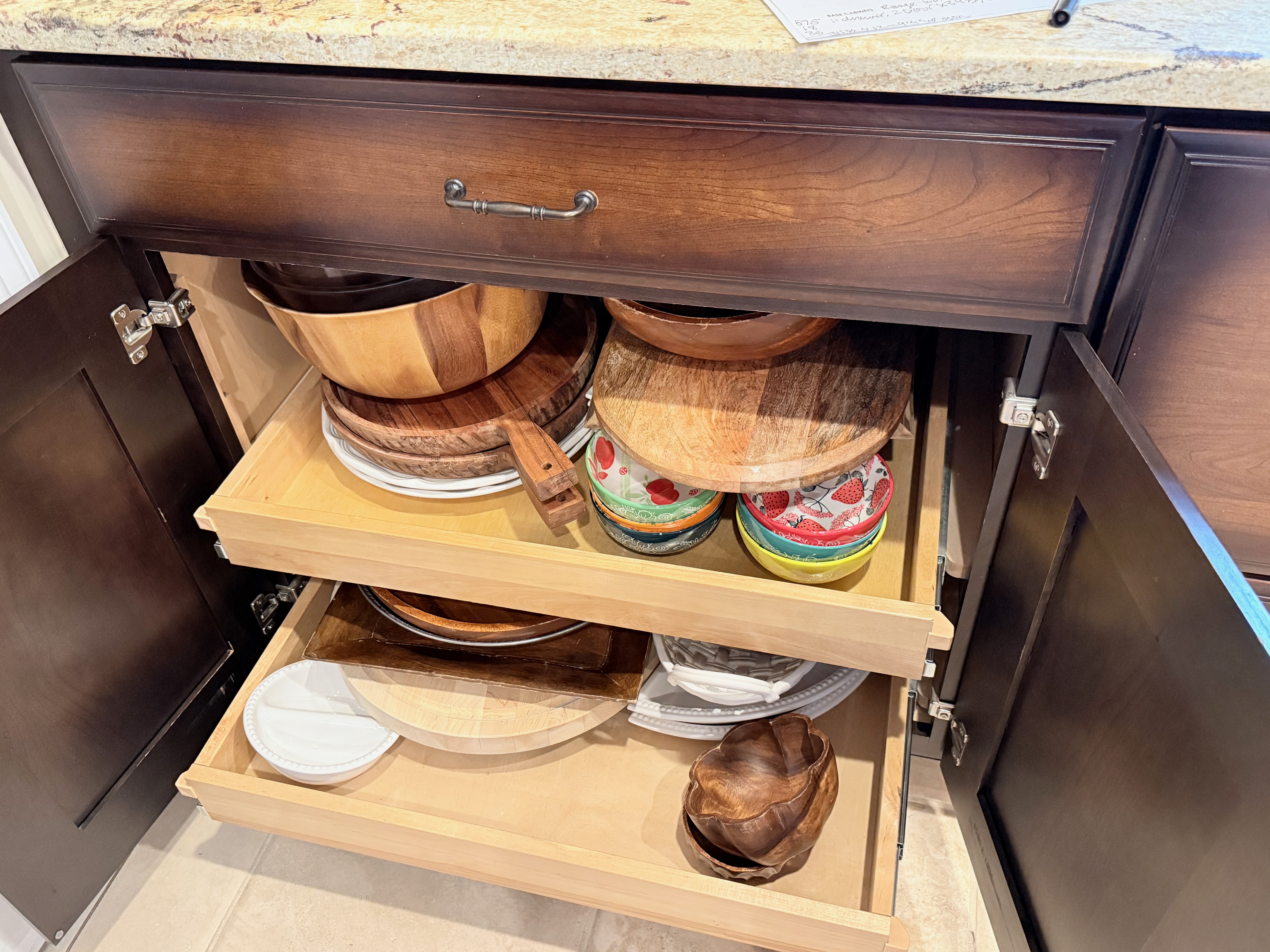 1-Two drawer base cabinet with dowel peg organizers Dim.: 36” w x 36”h x 24” d